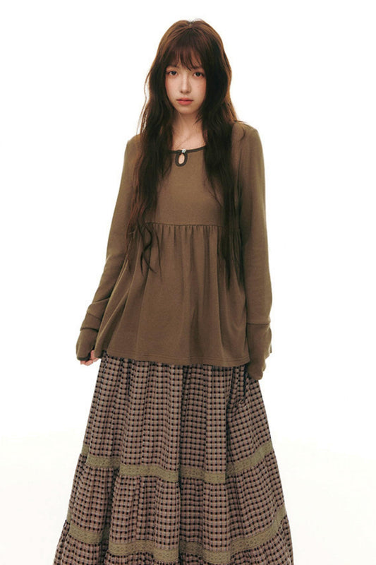Plaid Lace-Up Top + Skirt