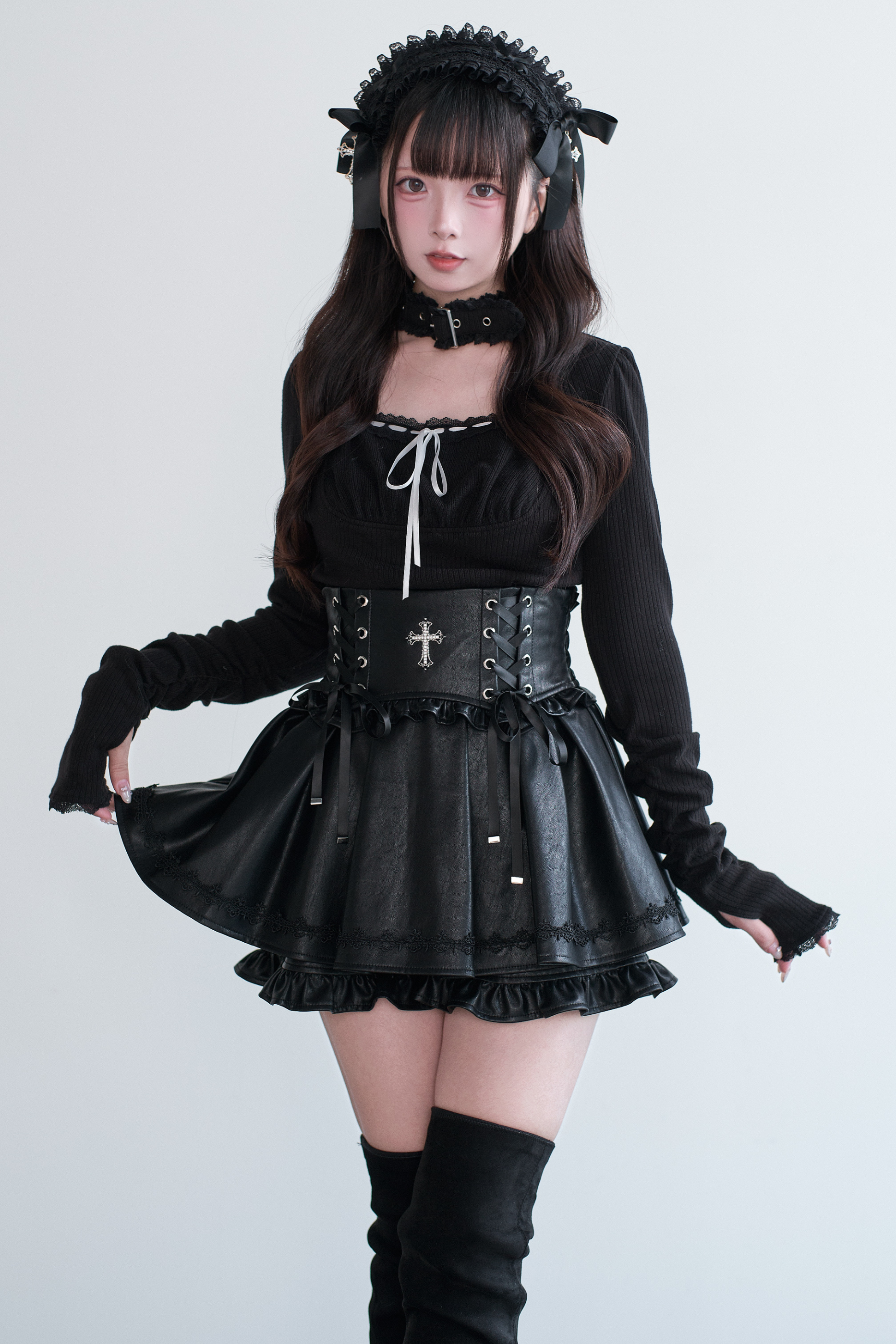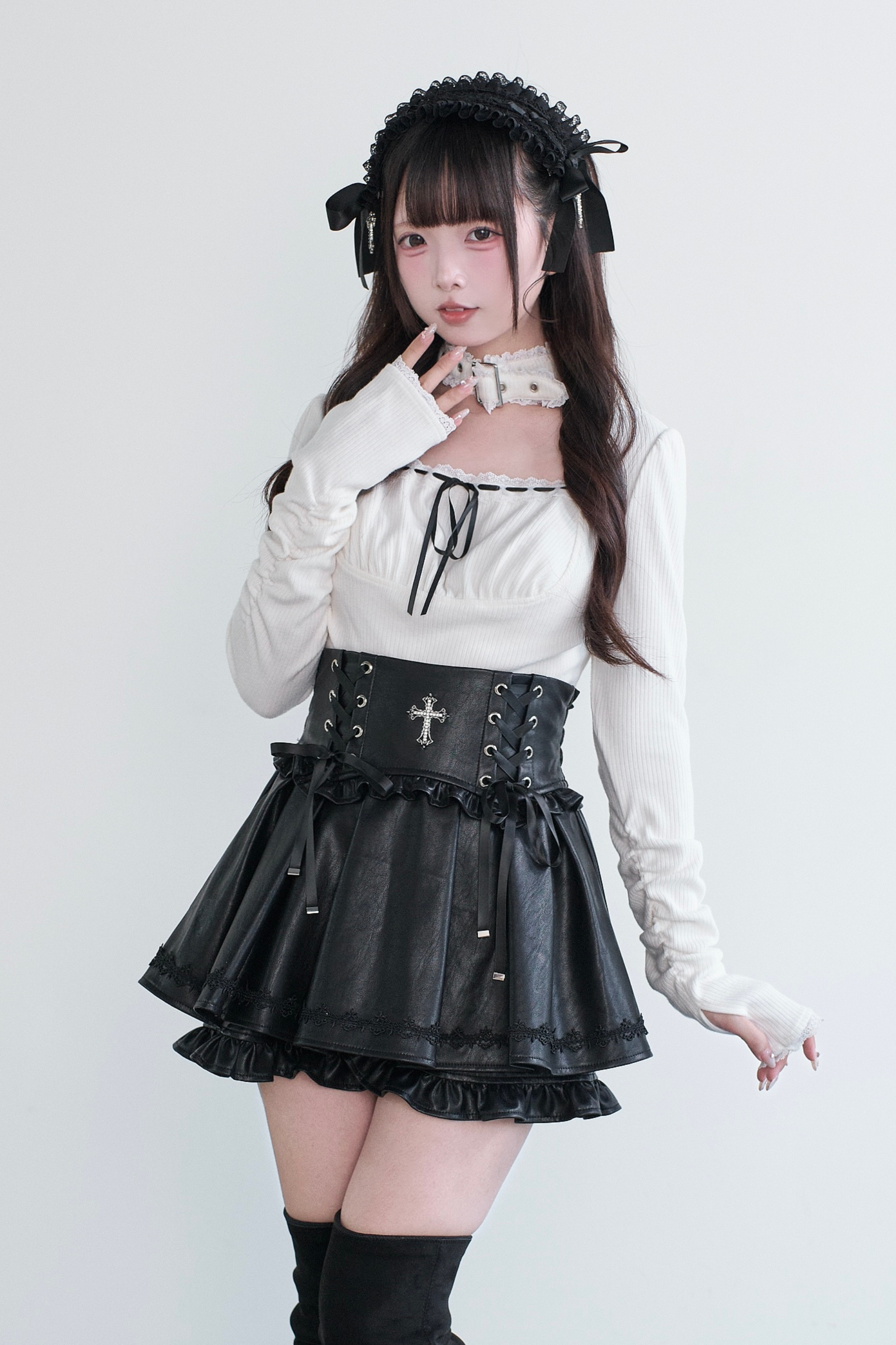 チョッカーレーストップス+スカート