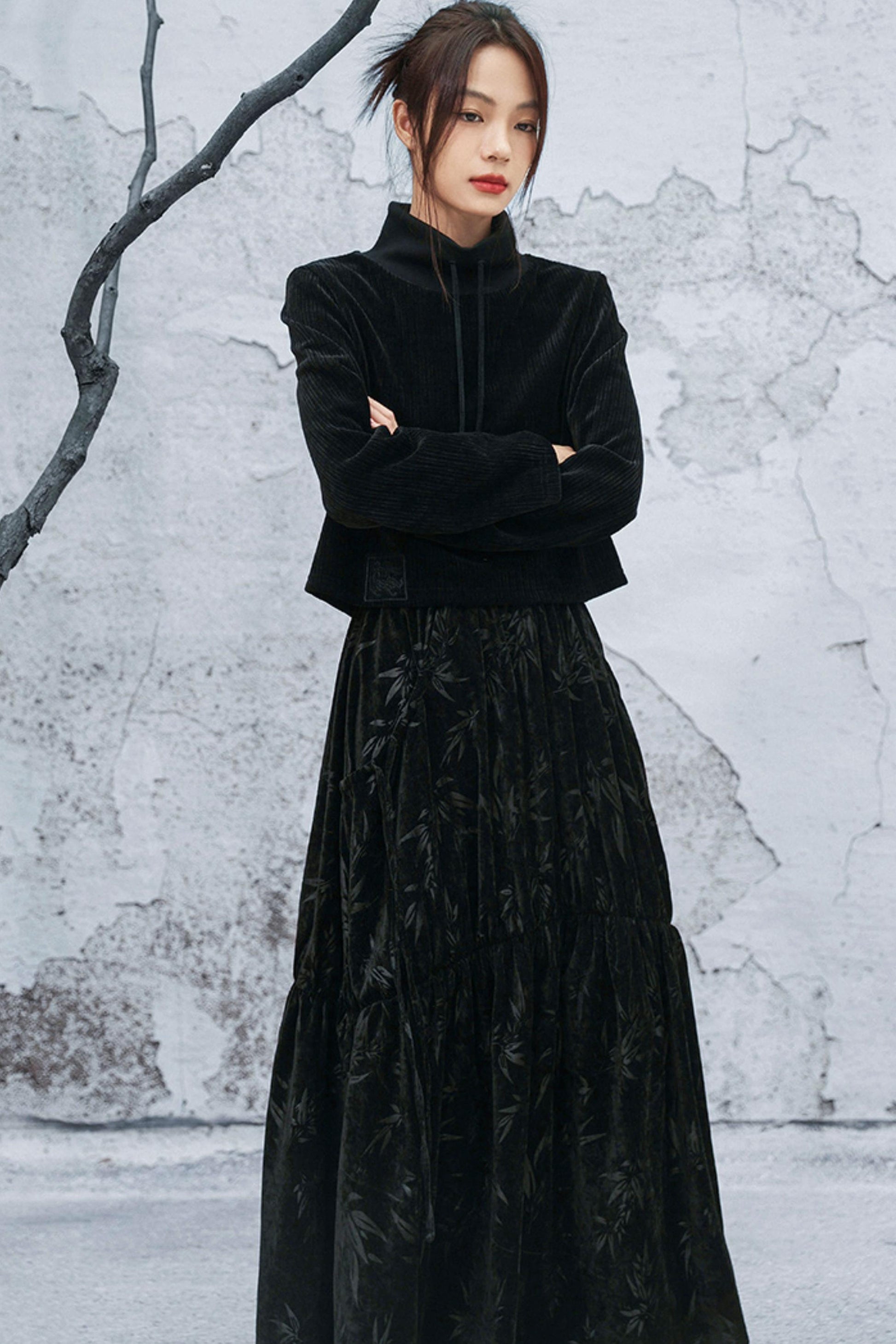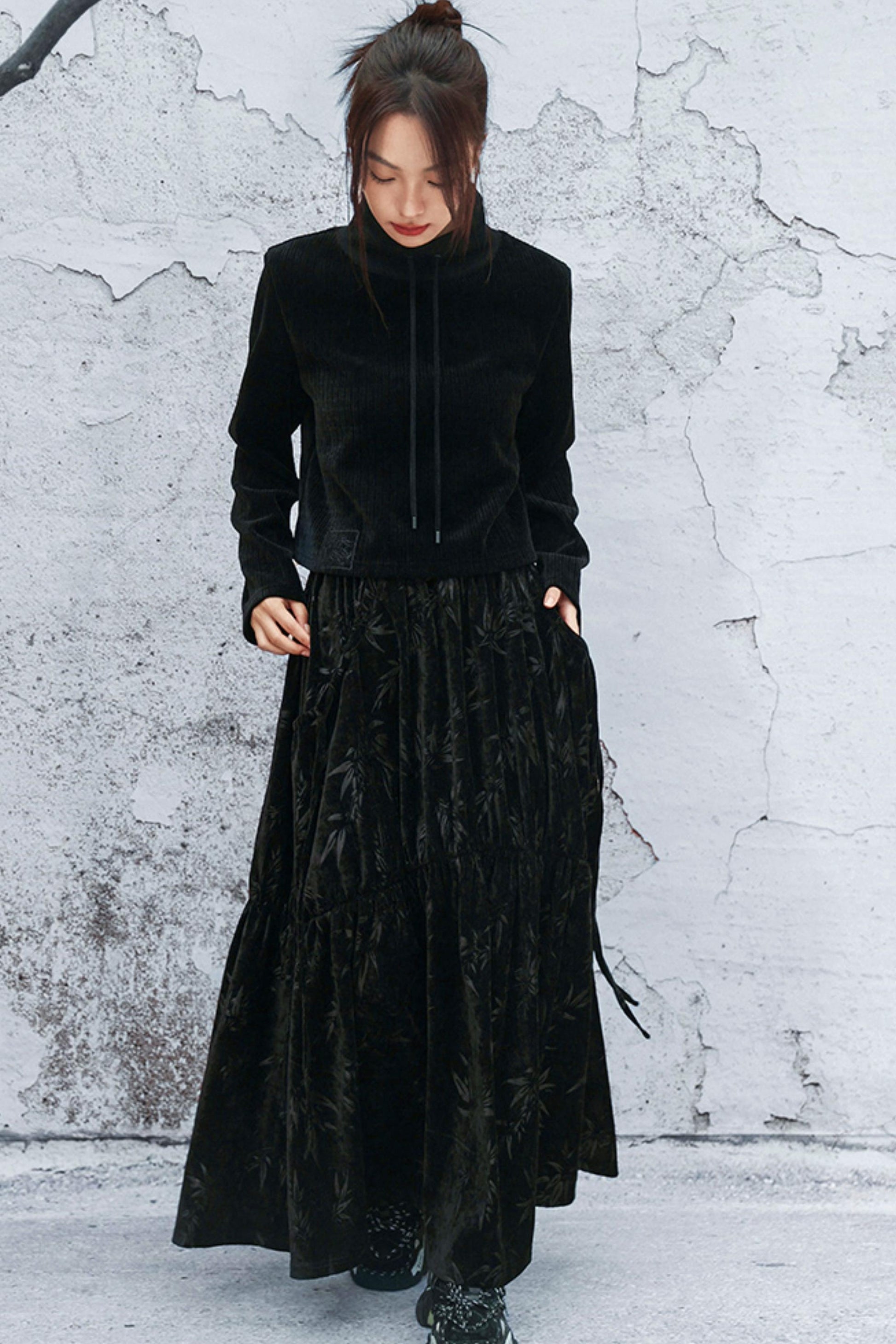 ダークバンブーリーフスカート
