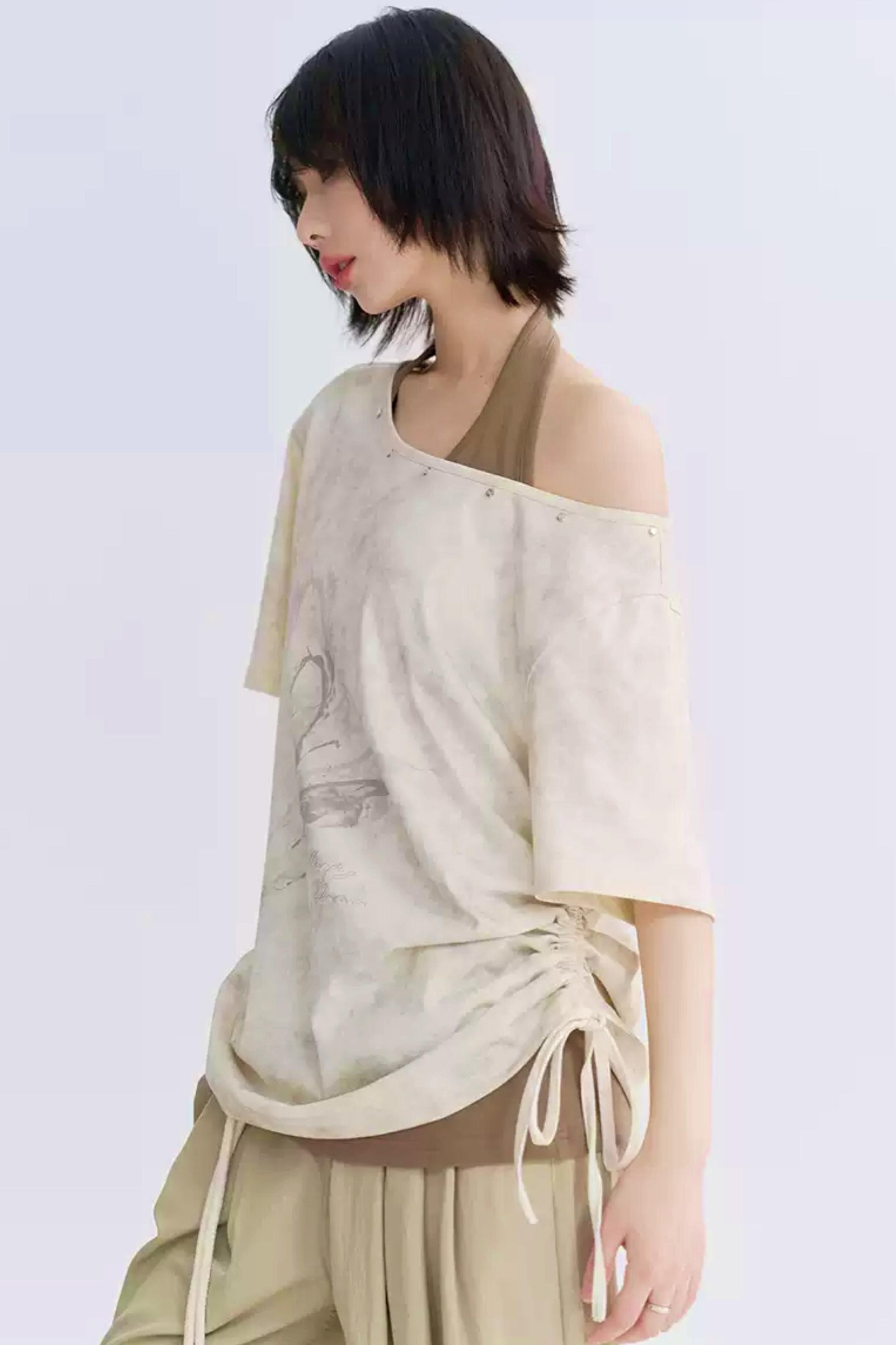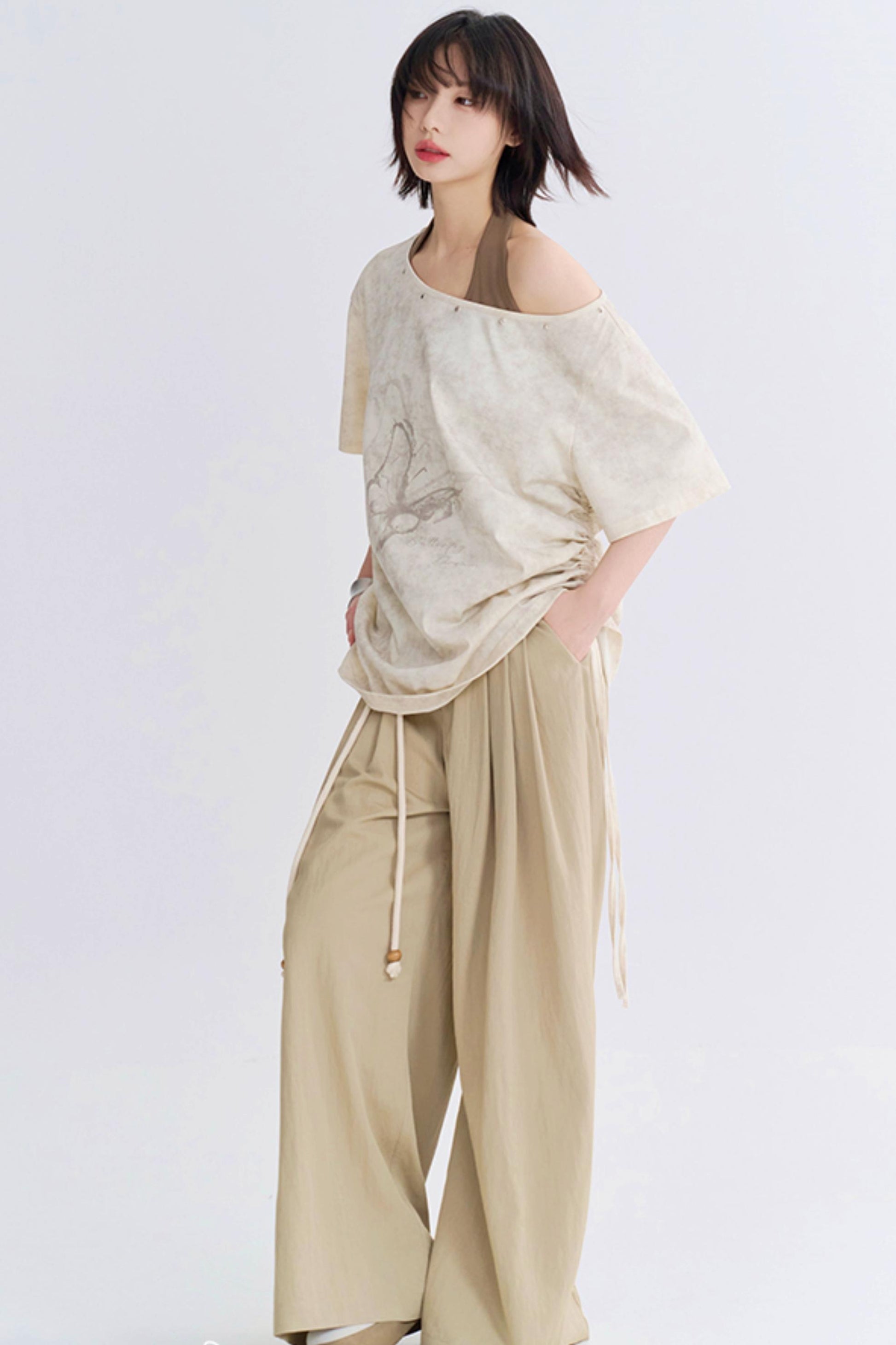 ❤Wide Neck Butterfly Print Tee Shirt❤