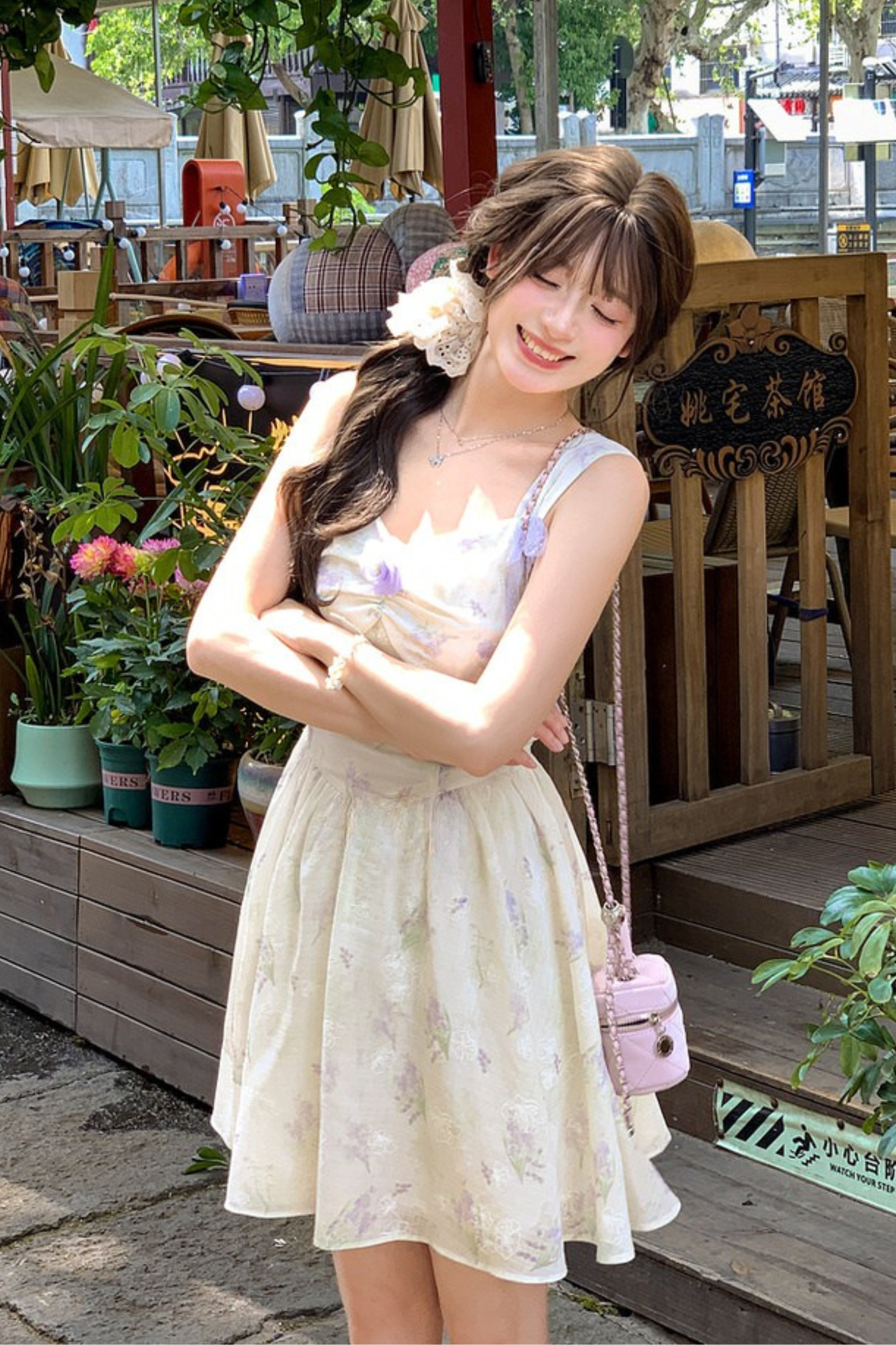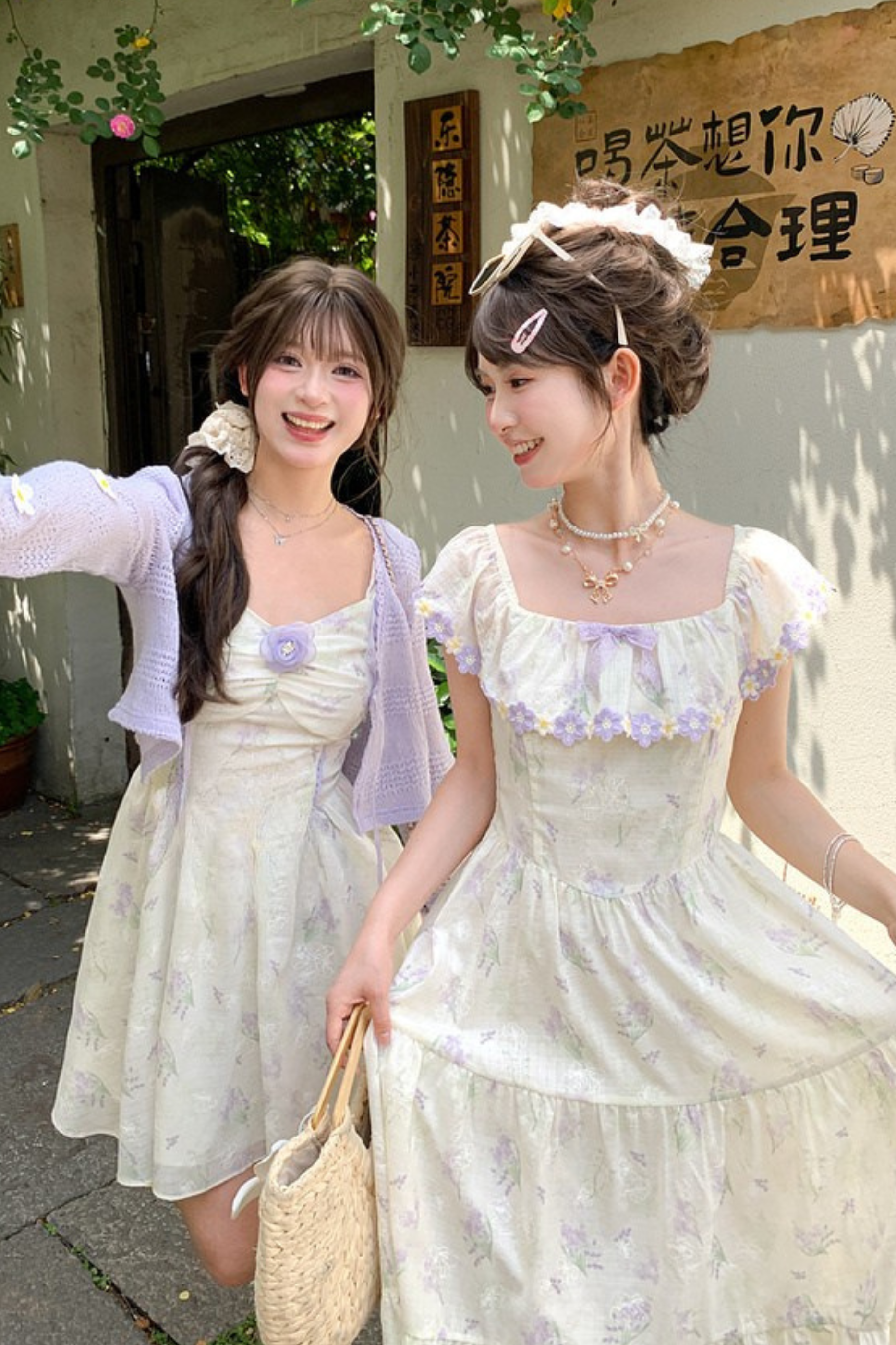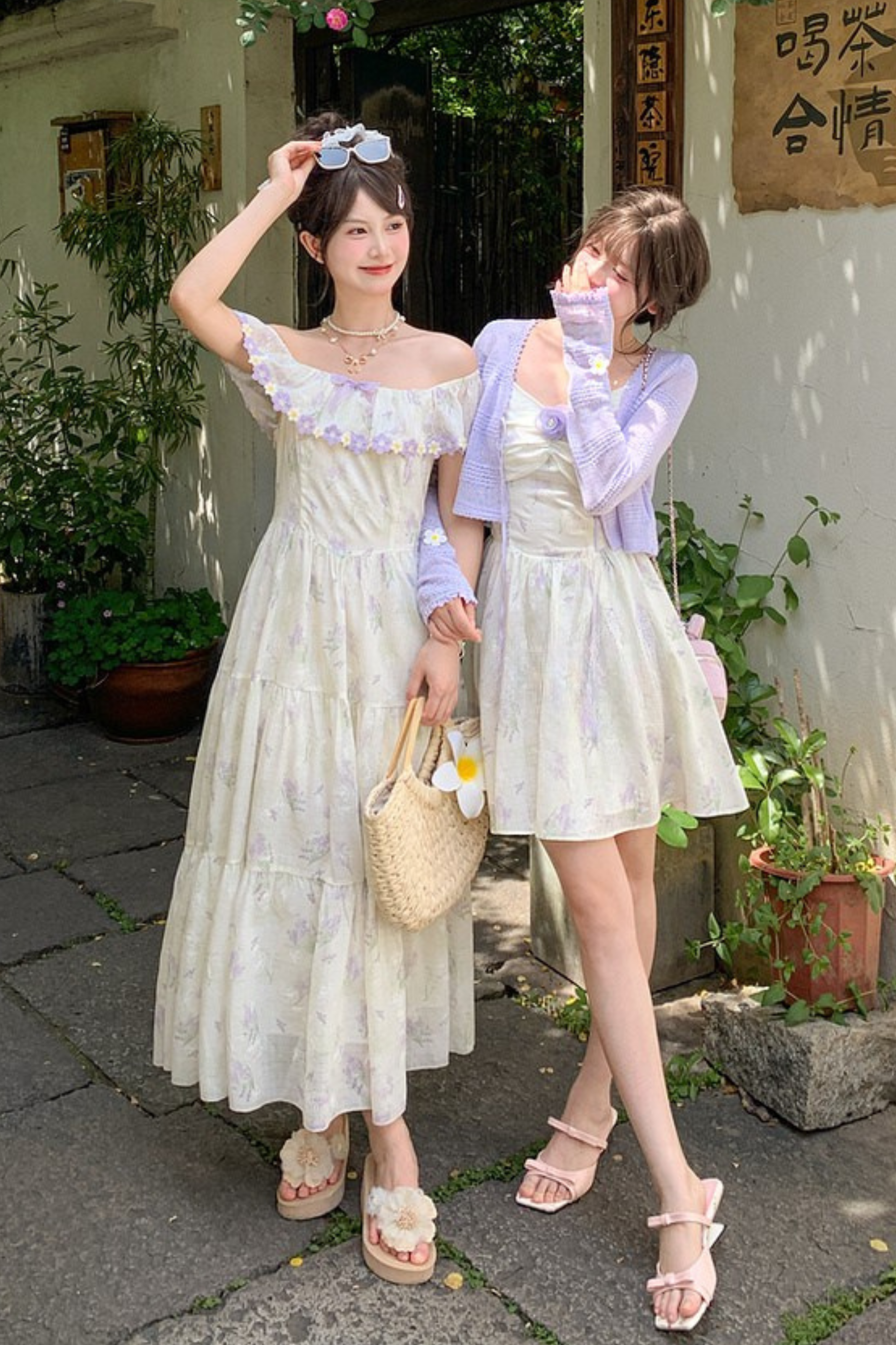 ❤French Flower Off-the-shoulder Dress + Cardigan❤