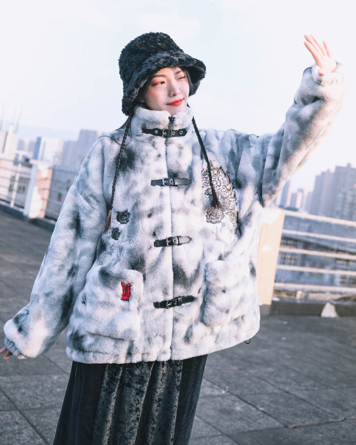 Odd house rabbit fur warm hat women's winter cold protection ear protection plush cotton hat retro thickened bucket hat shows small face