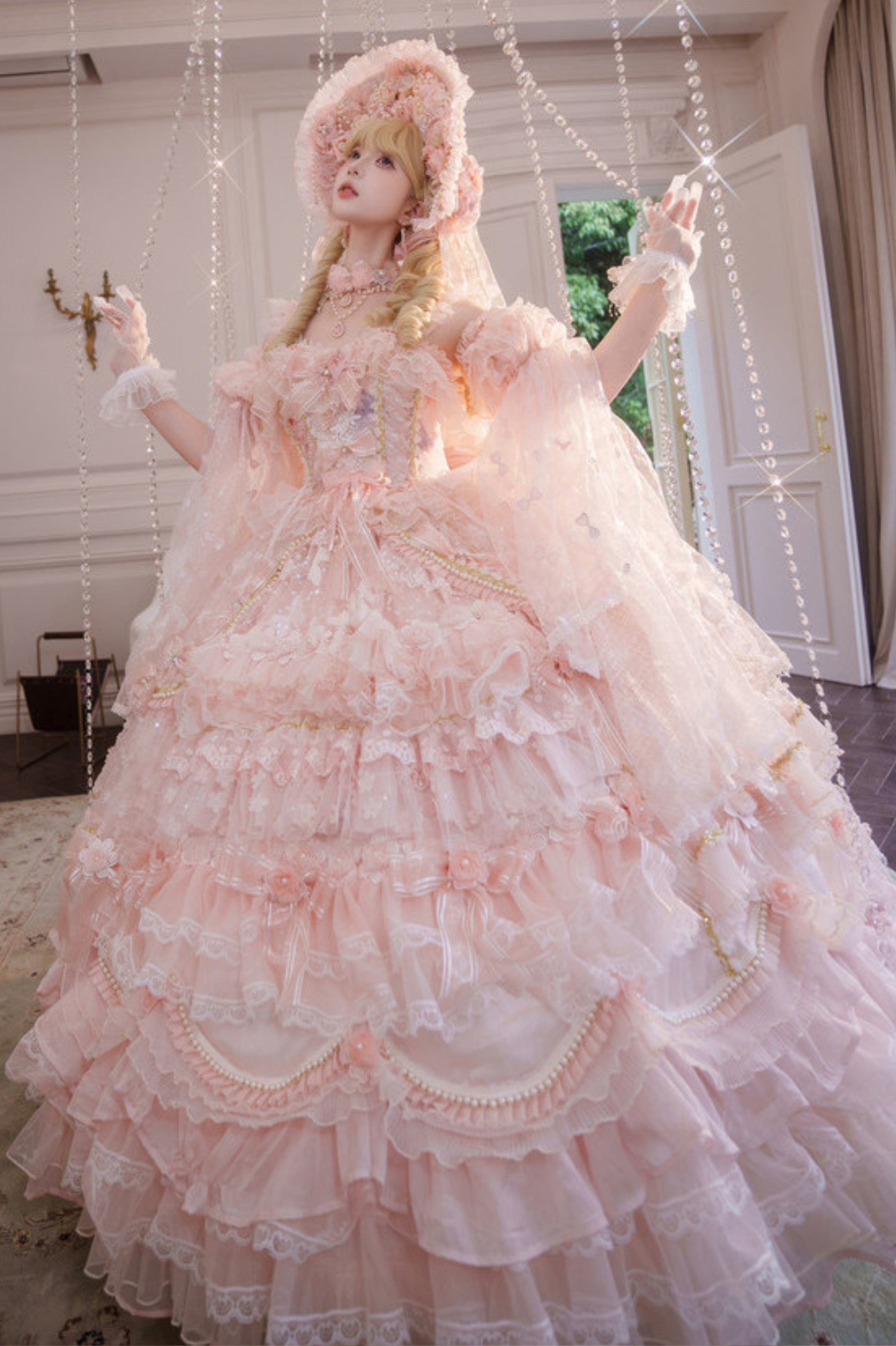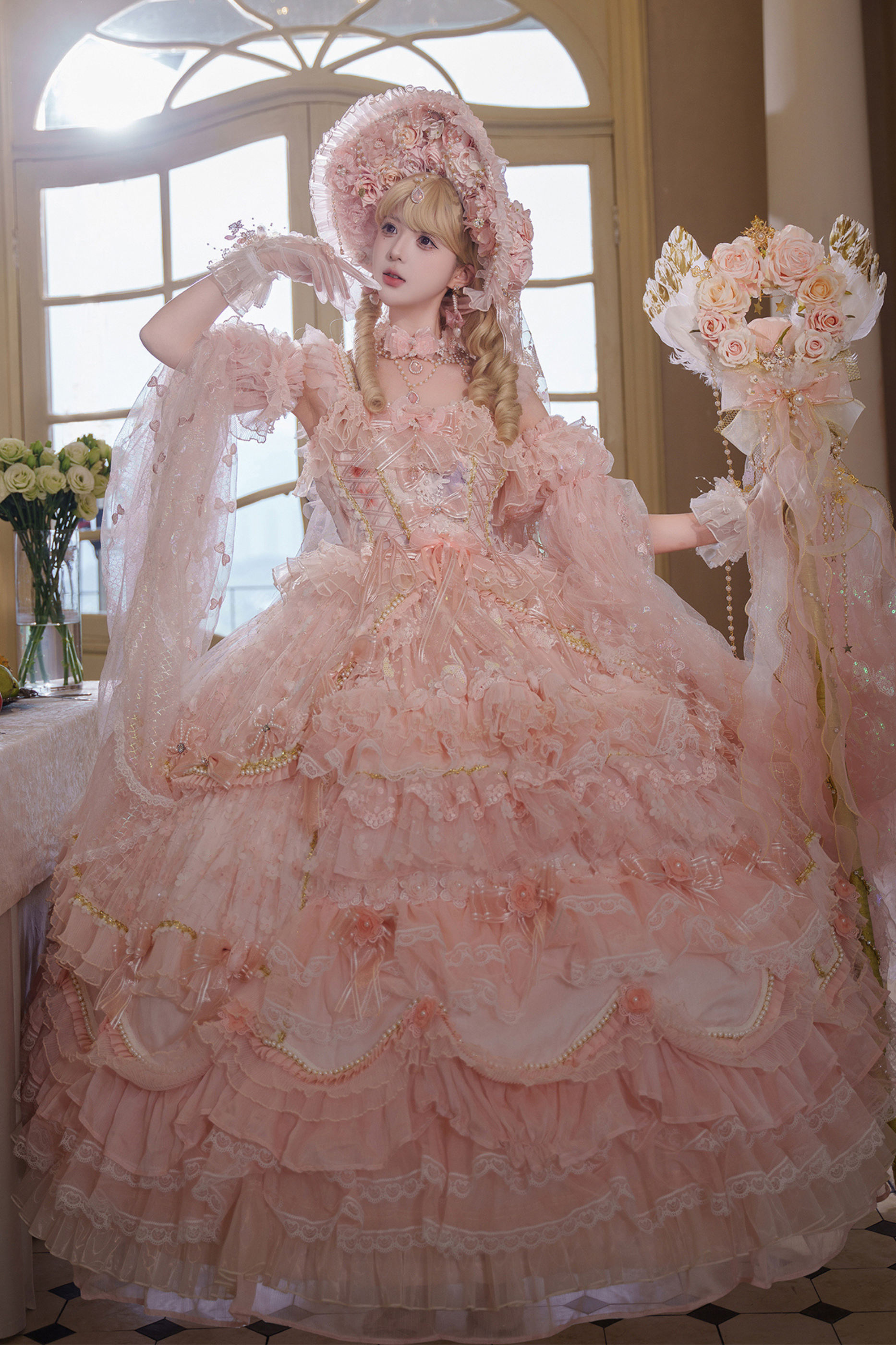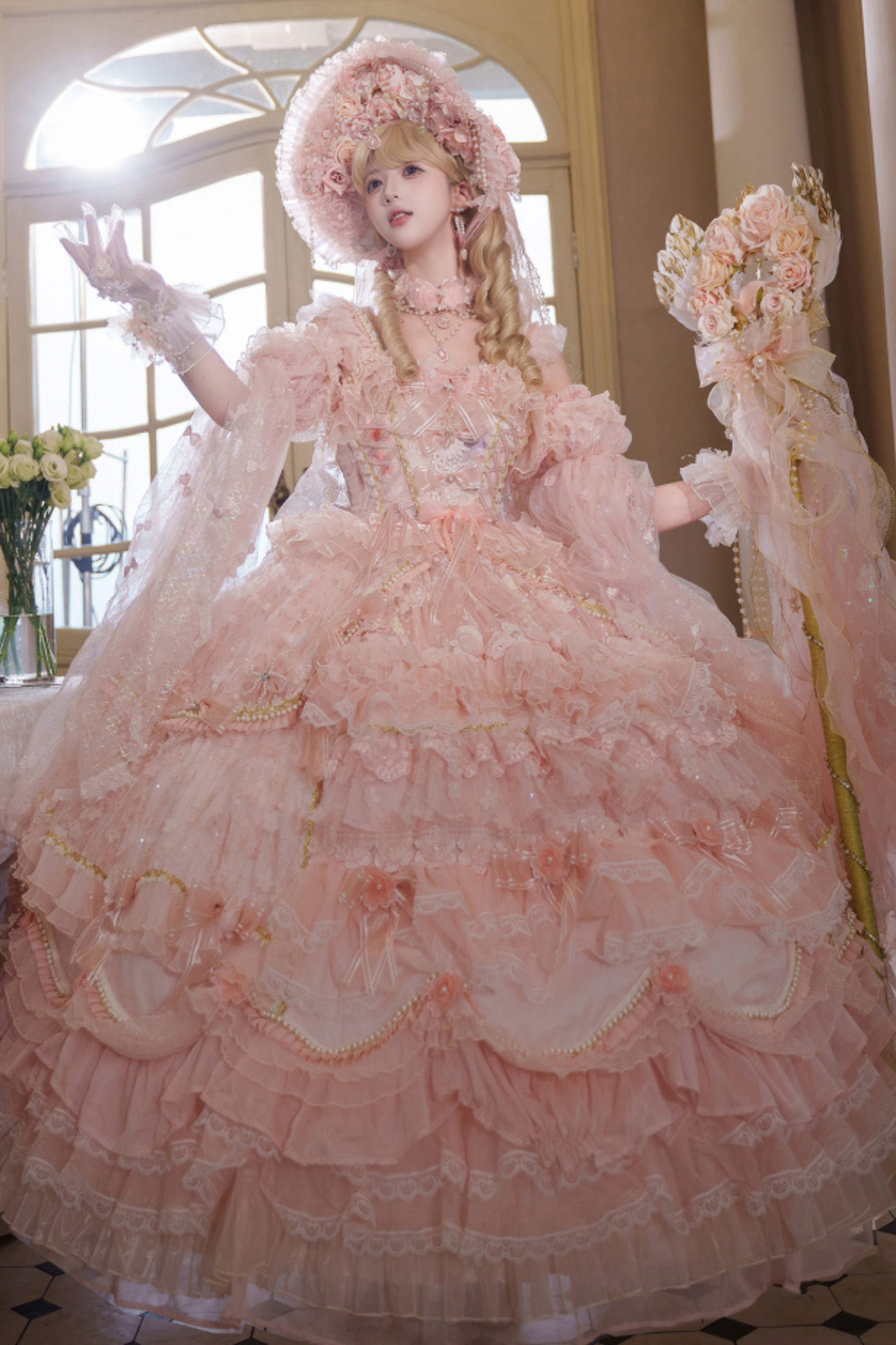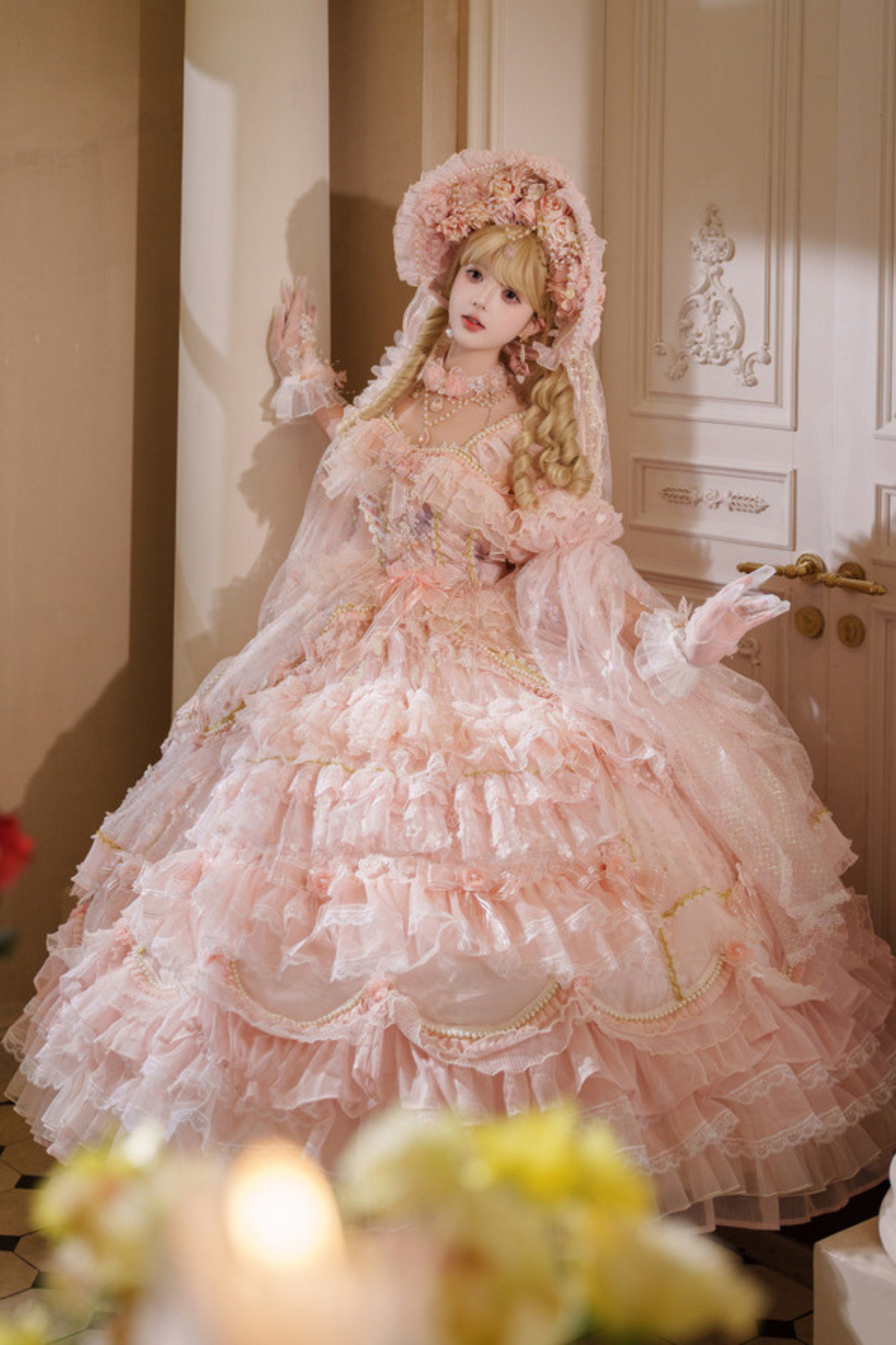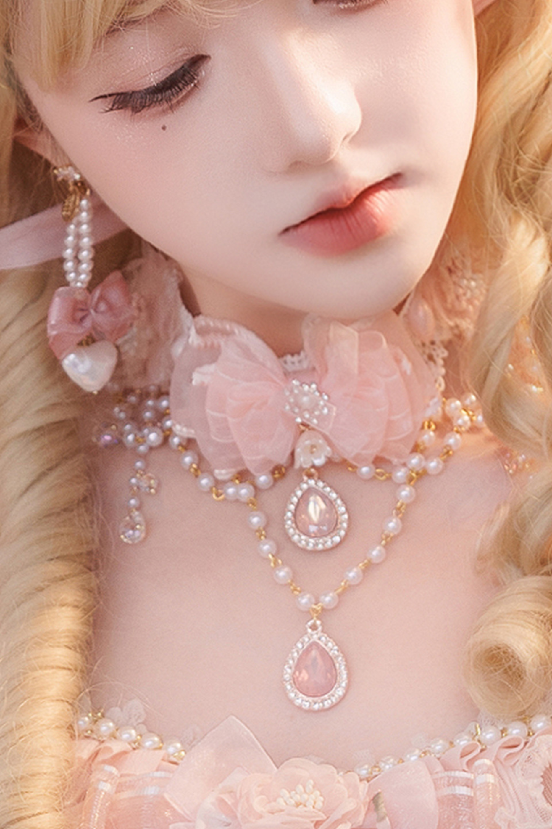 スイートフラワーゴージャスティーパーティーロリータアクセサリーハット+ベール+ネックレス+グローブ+セプター