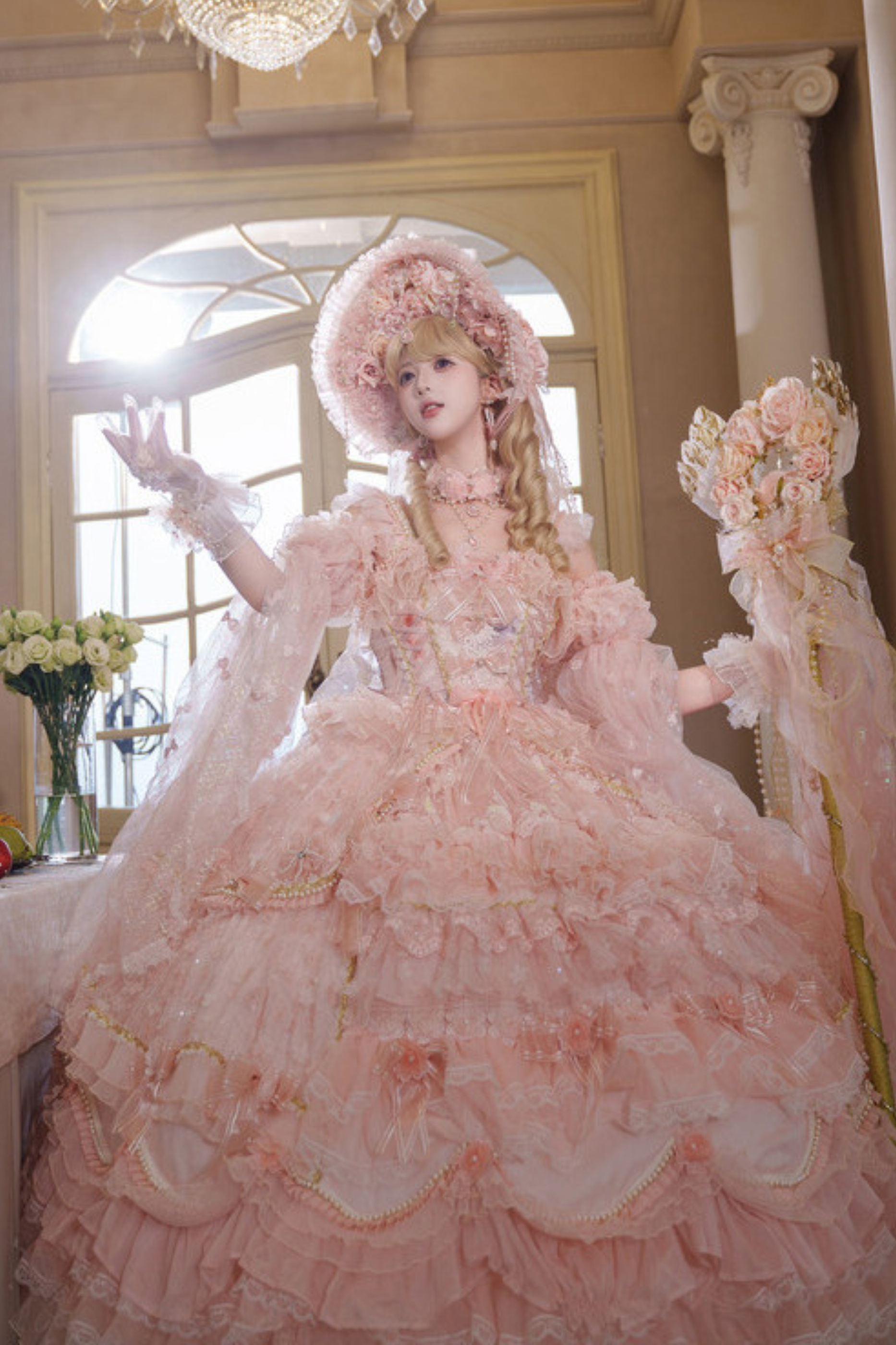 ❤スイートフラワーゴージャスティーパーティーロリータアクセサリーハット+ベール+ネックレス+グローブ+セプター❤