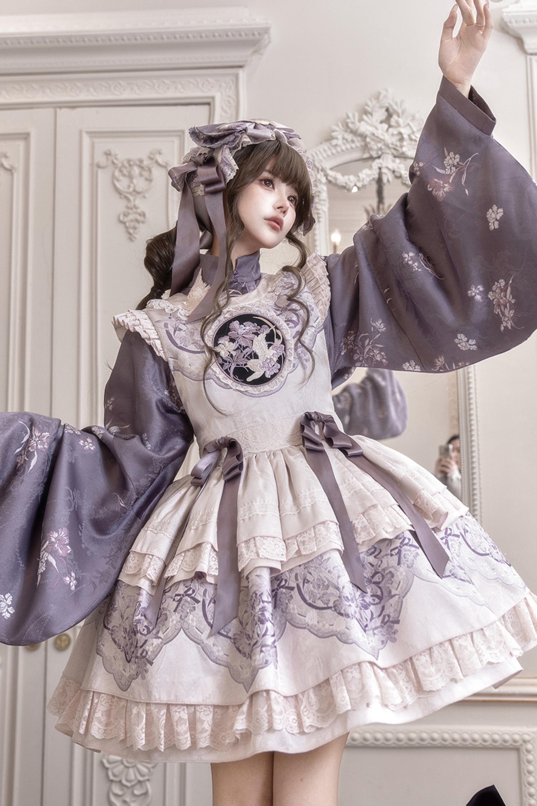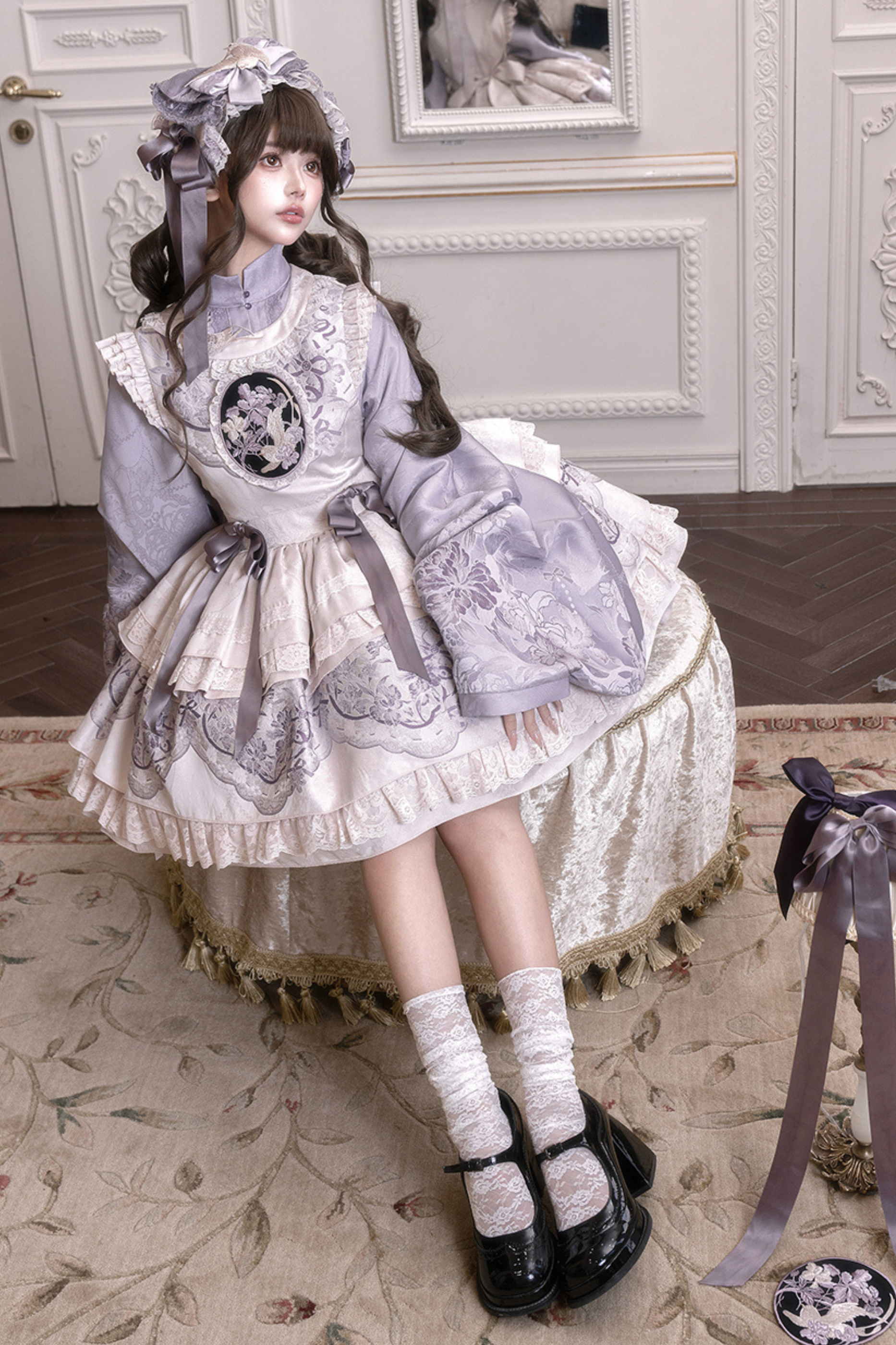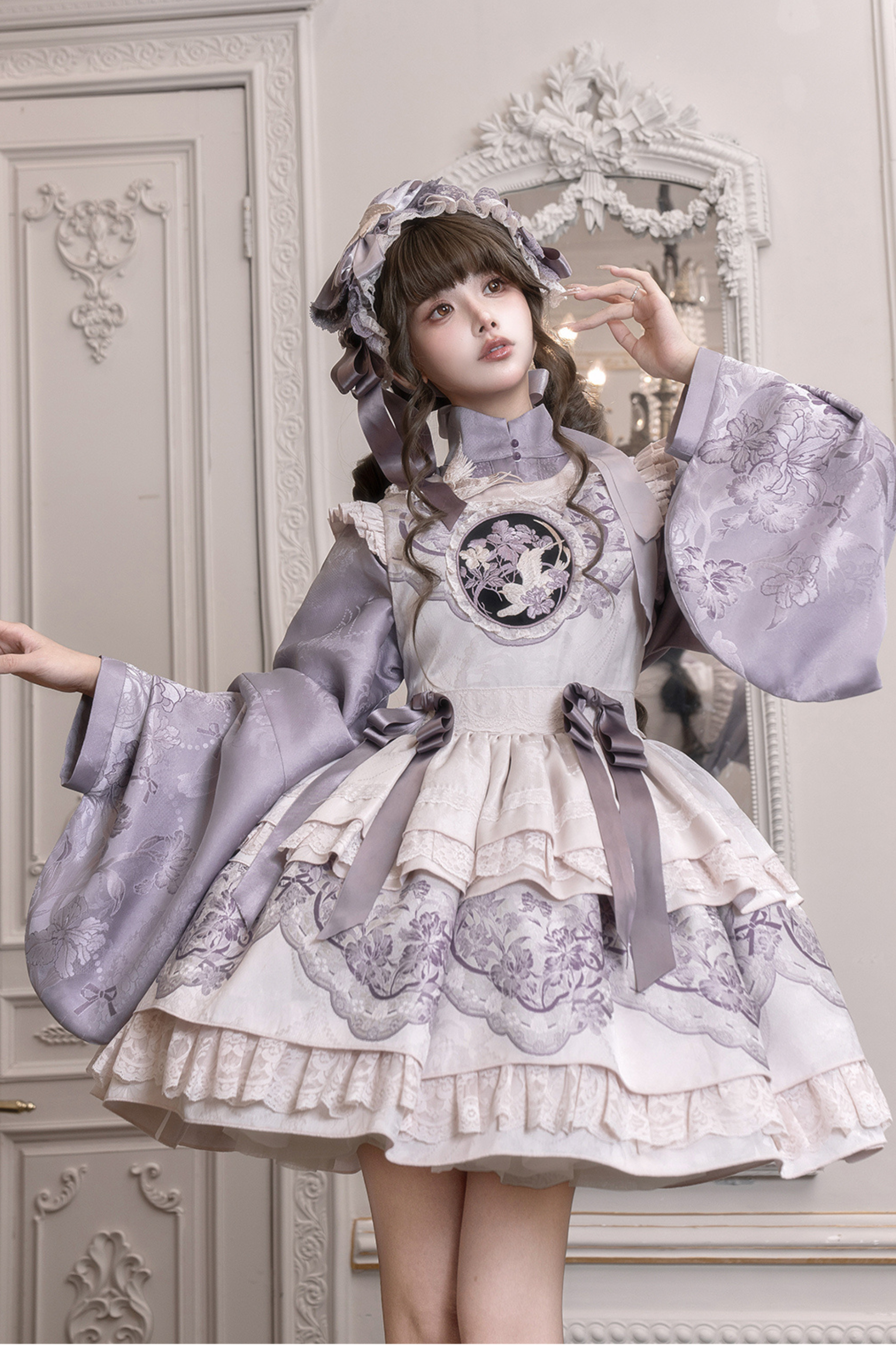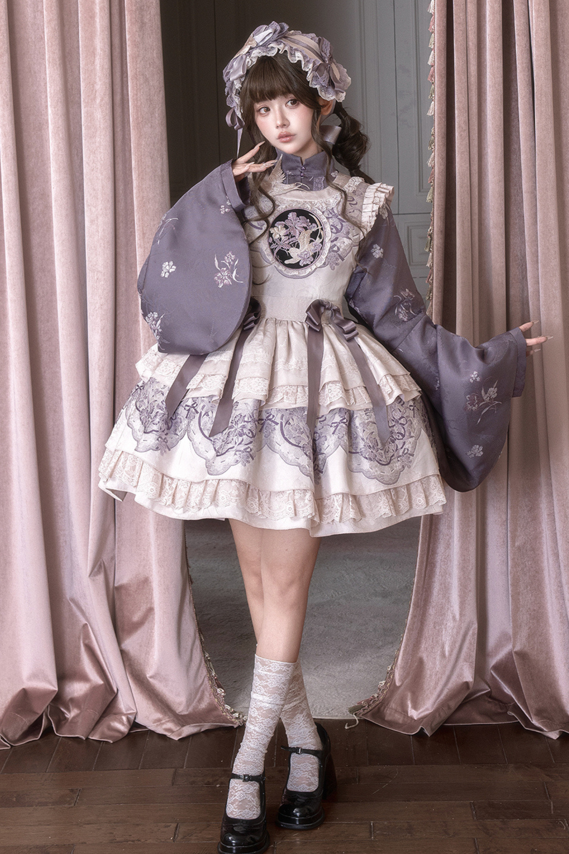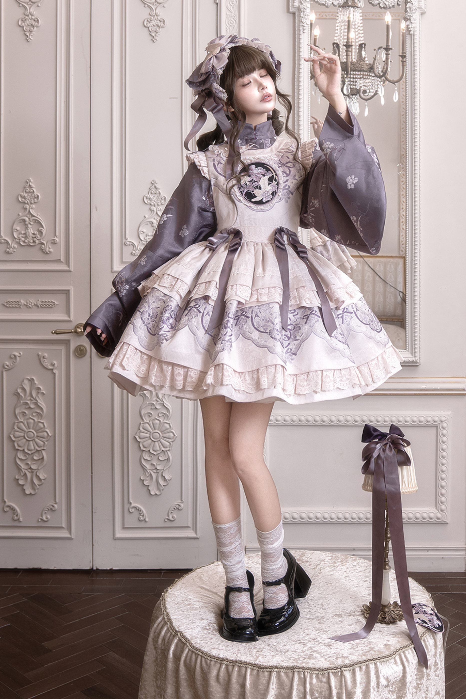 チャイナスタンドカラージャケット+サスペンダードレス+ヘアバンド