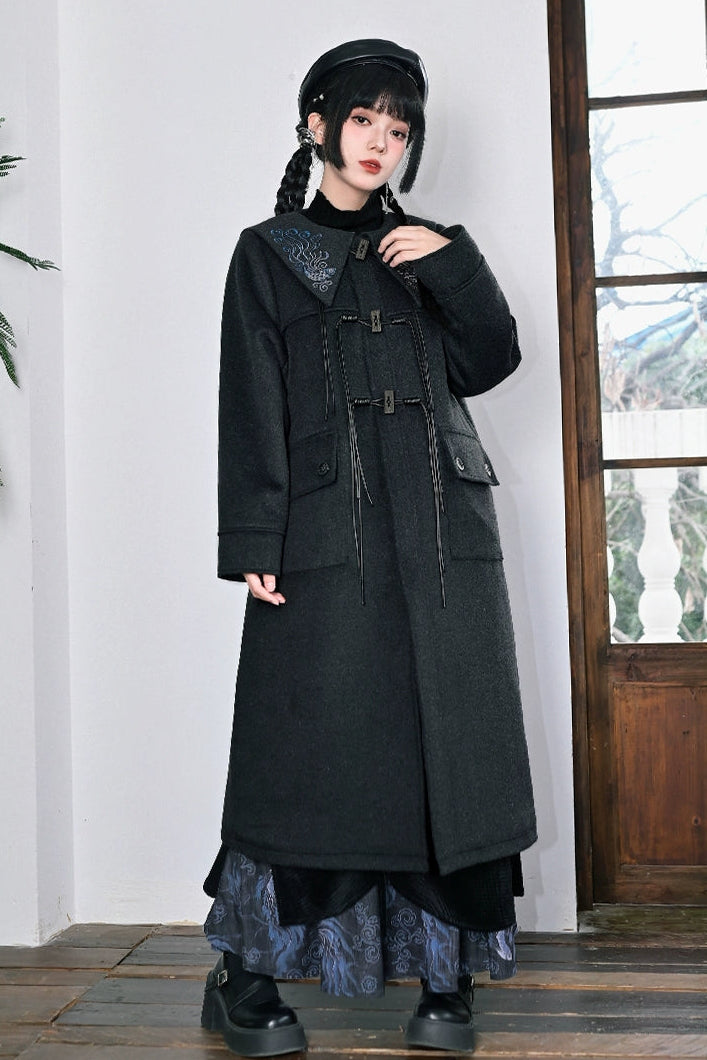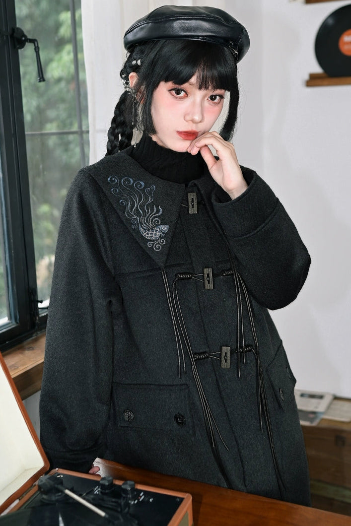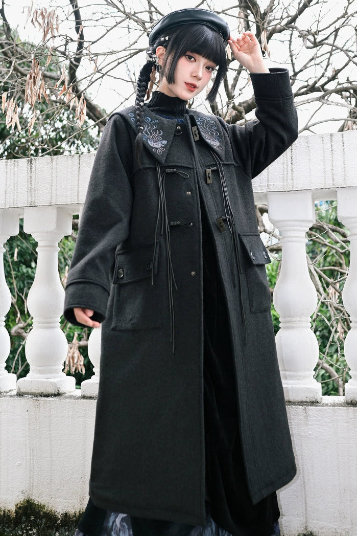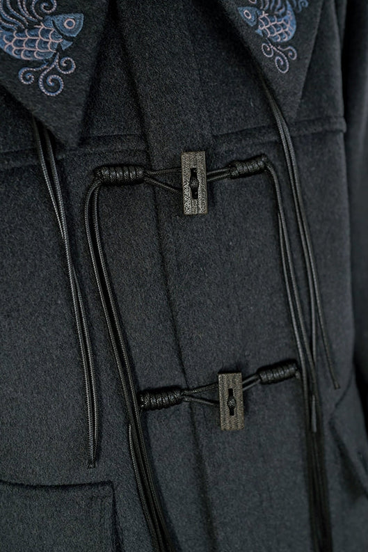 ダークフィンエンブロイダードウールコート