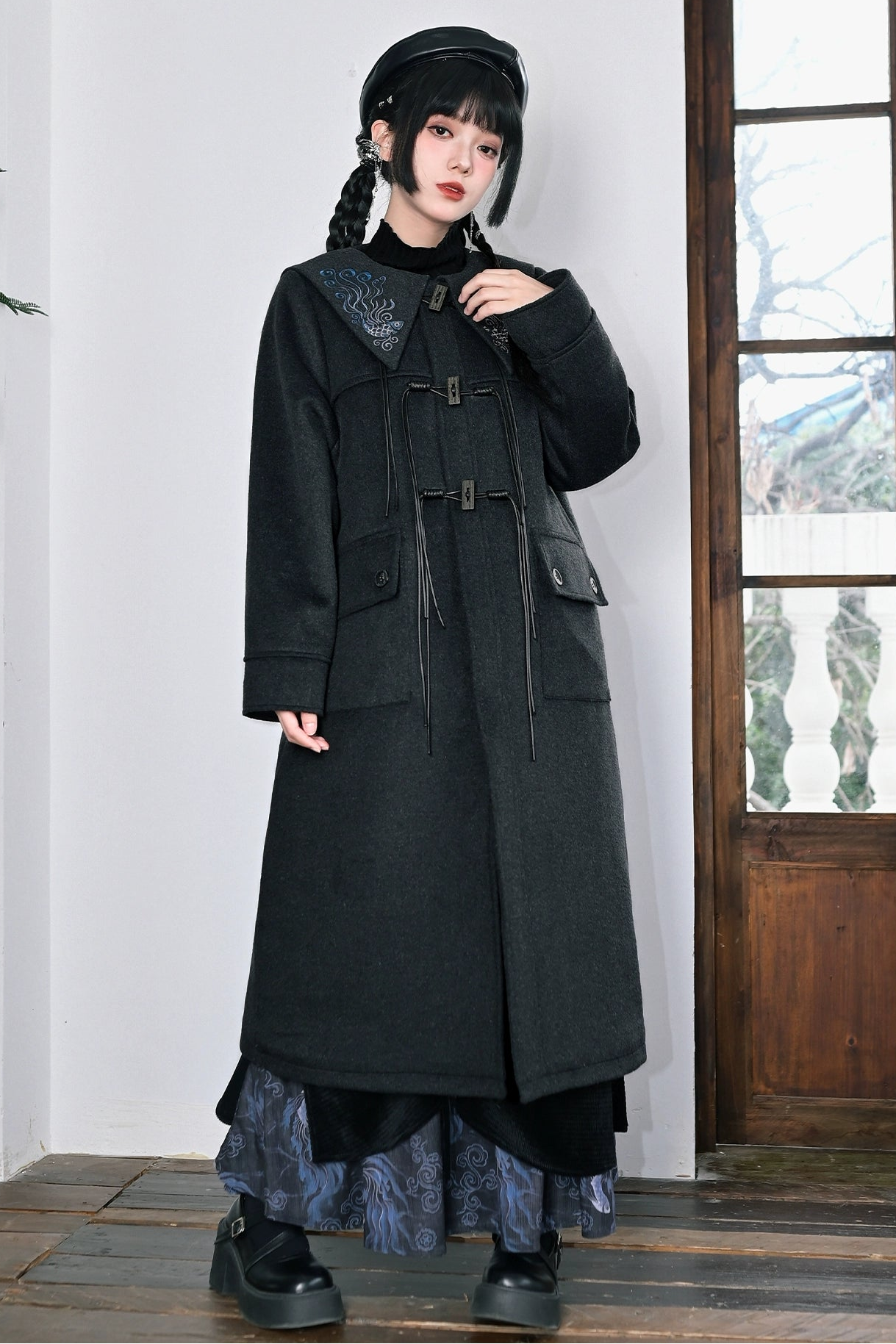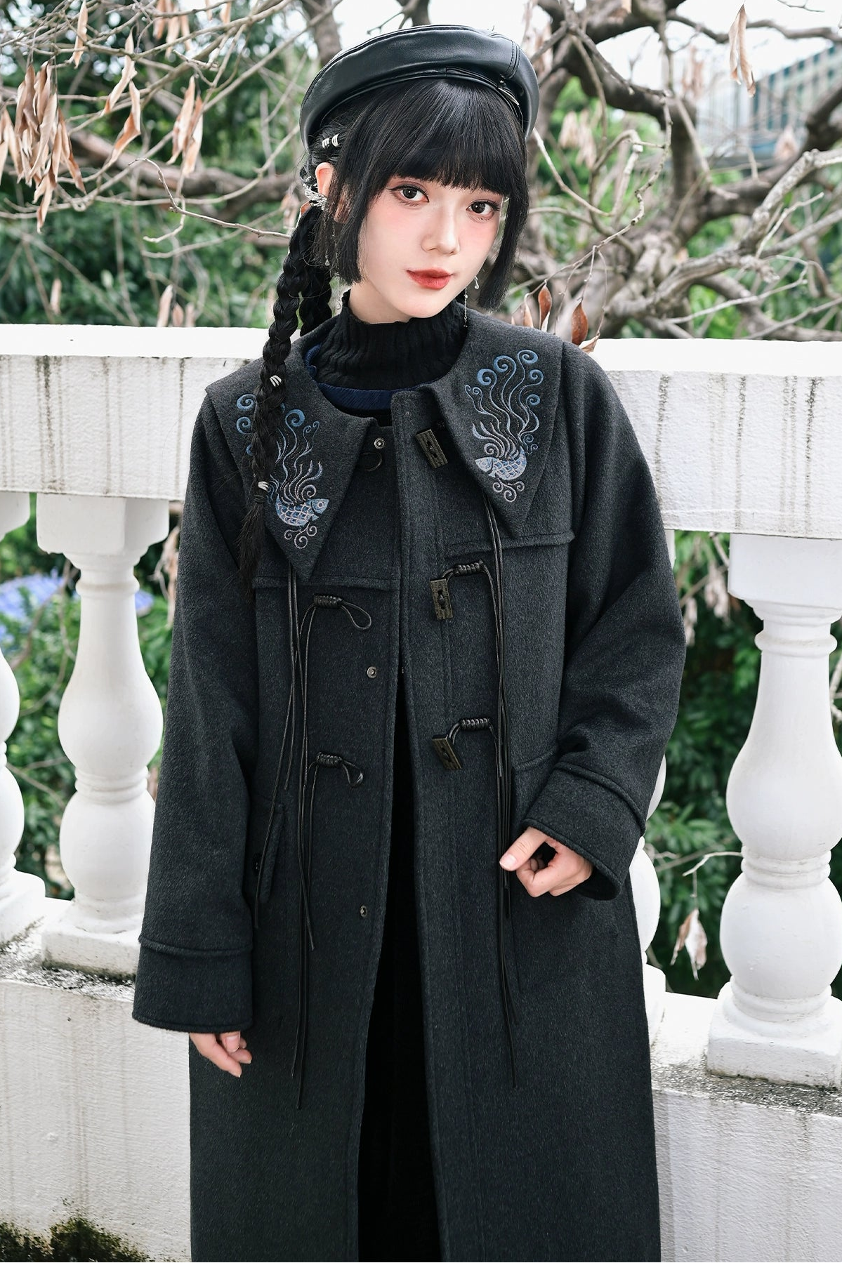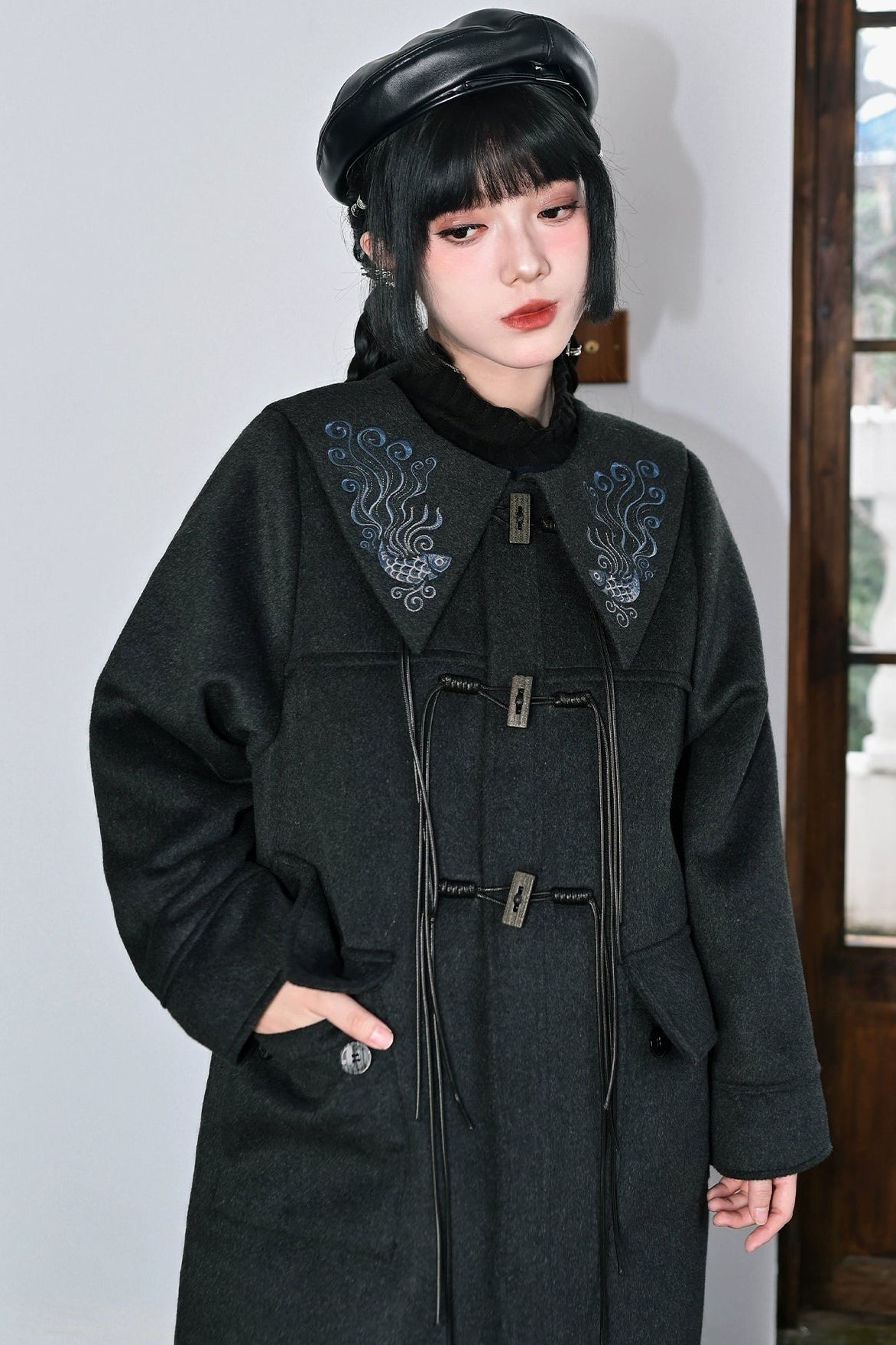 ダークフィンエンブロイダードウールコート