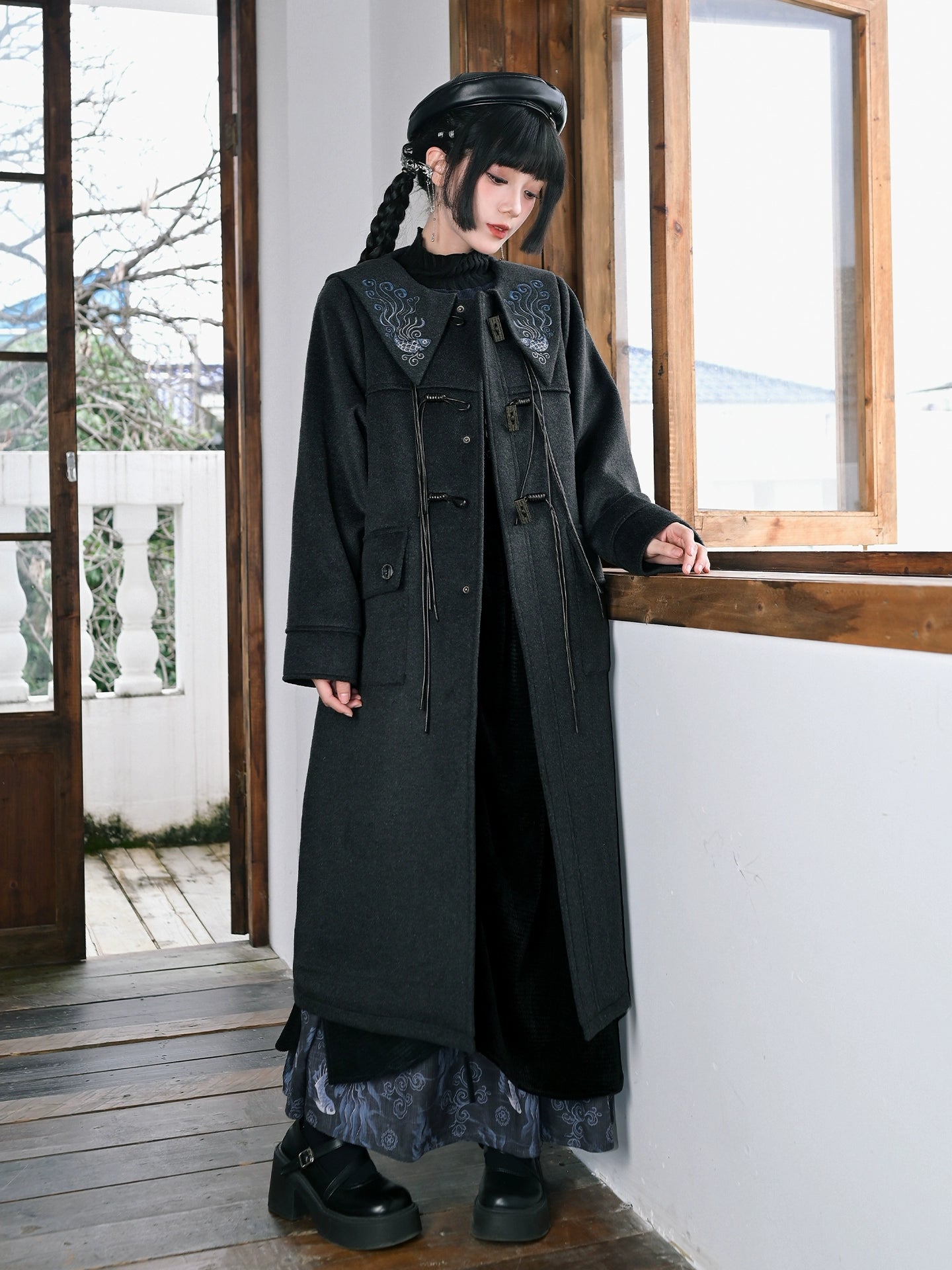 ❤ダークフィンエンブロイダードウールコート❤