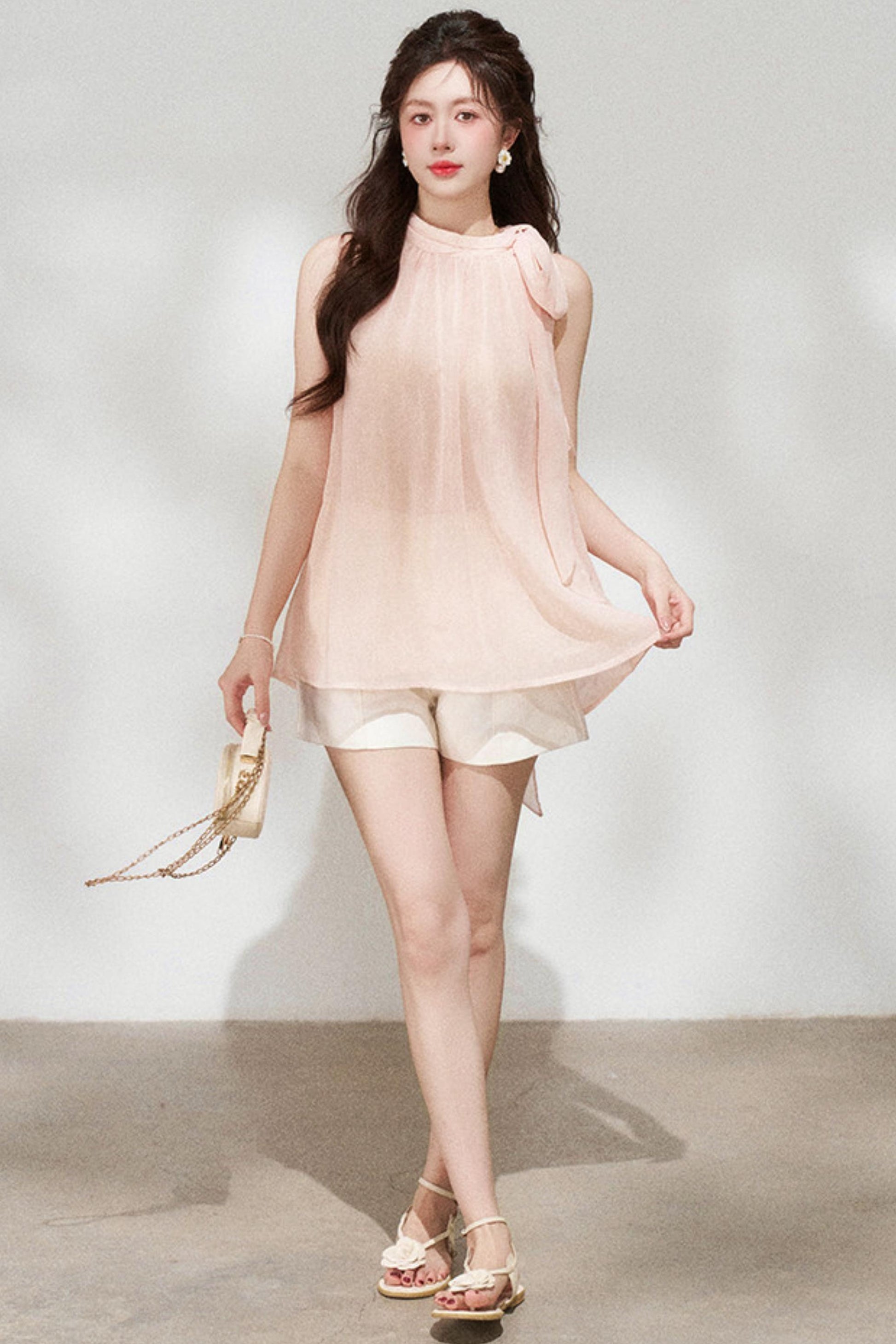 Pink Chiffon Halter Sleeveless Shirt