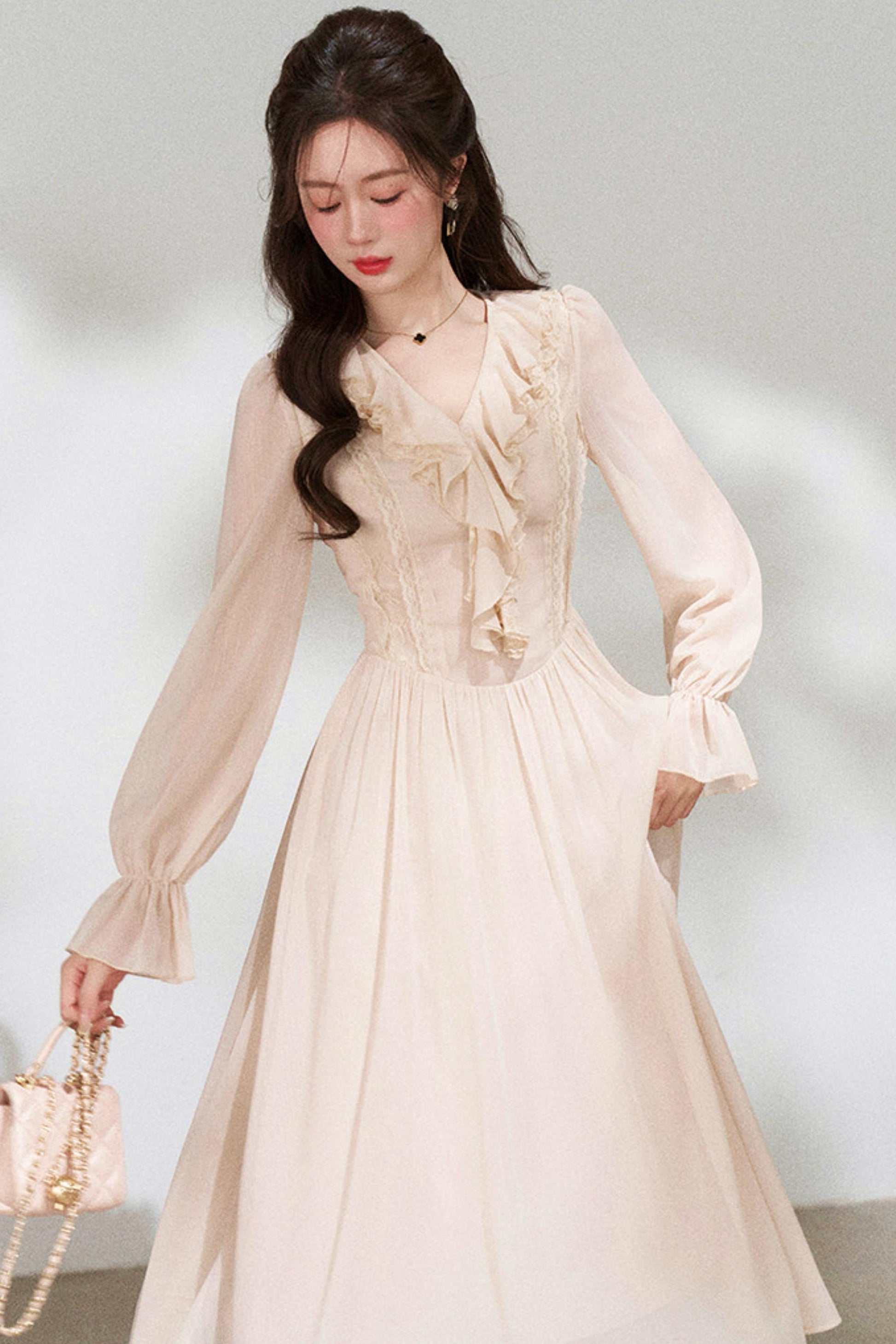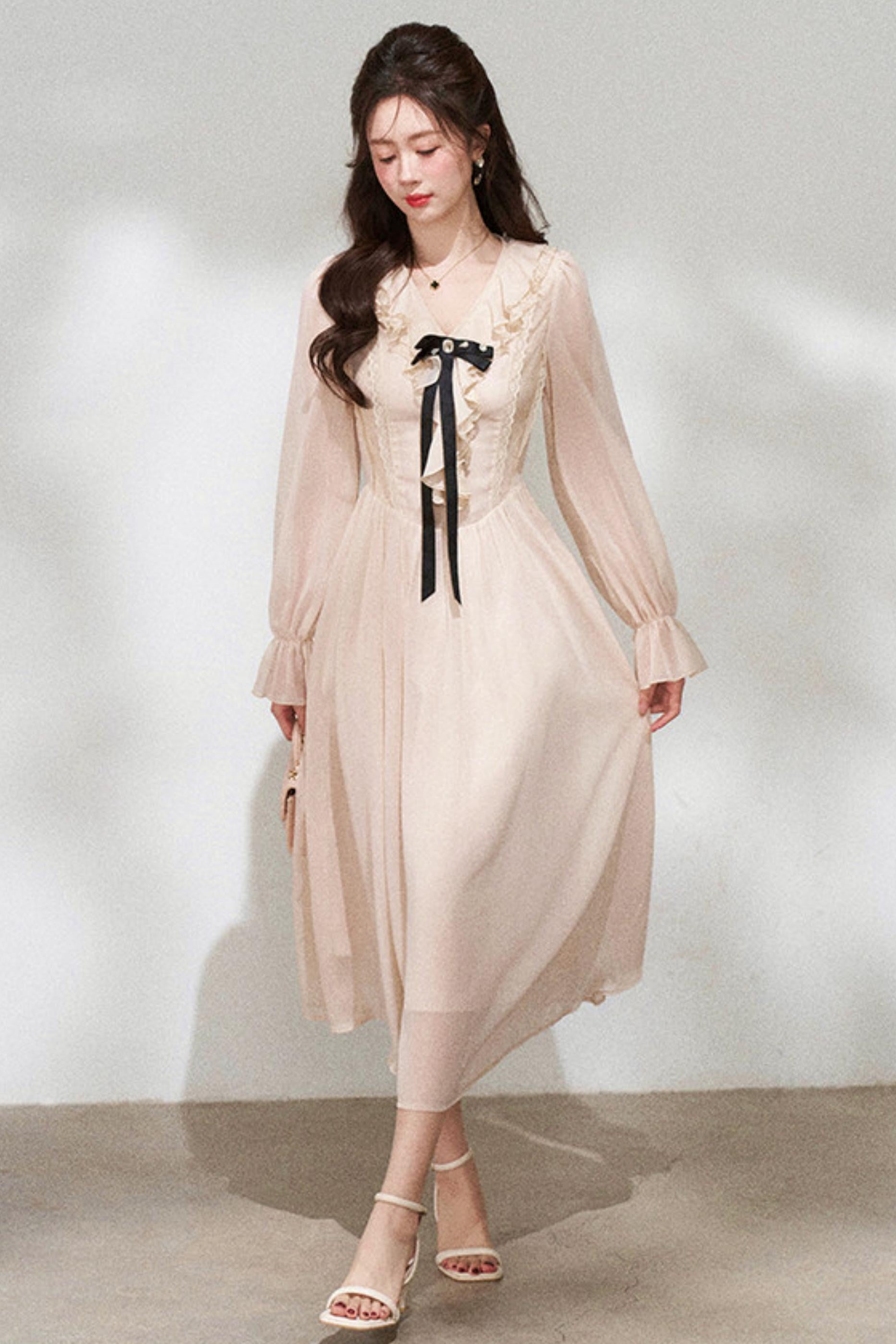 Ruffled V-Neck Holiday Dress