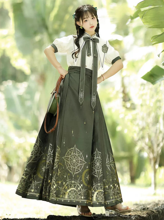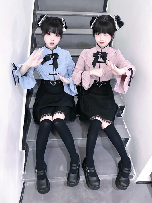 Magic Time and Space China Pointed Collar Ribbon Shirt + Long Skirt