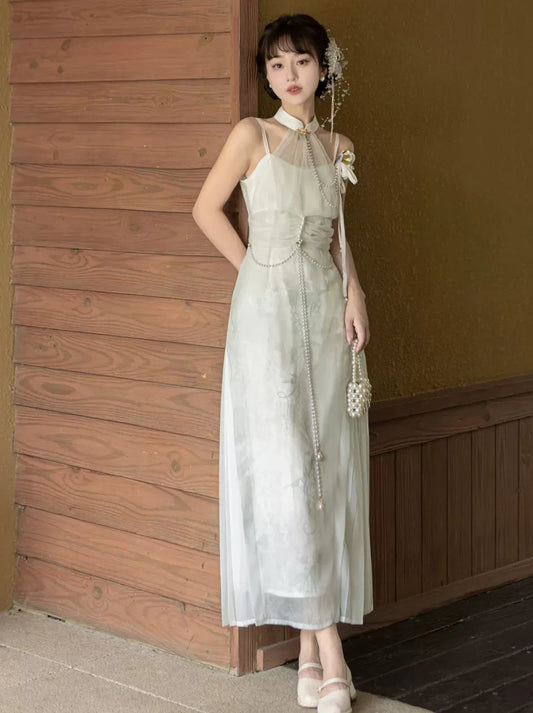 Endless Summer New China Dark Color Suspender Top Skirt Sheer Jacket