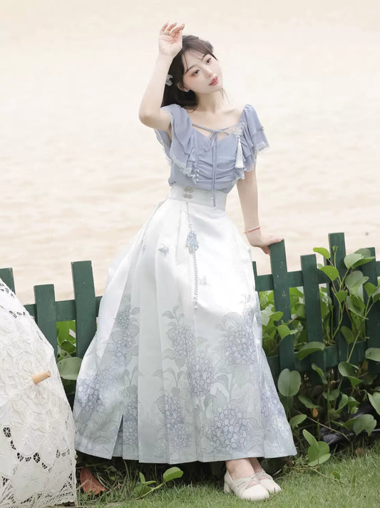 Hydrangea Letter Sweet China Ruffle Ruffle Ribbon Top Skirt Suit