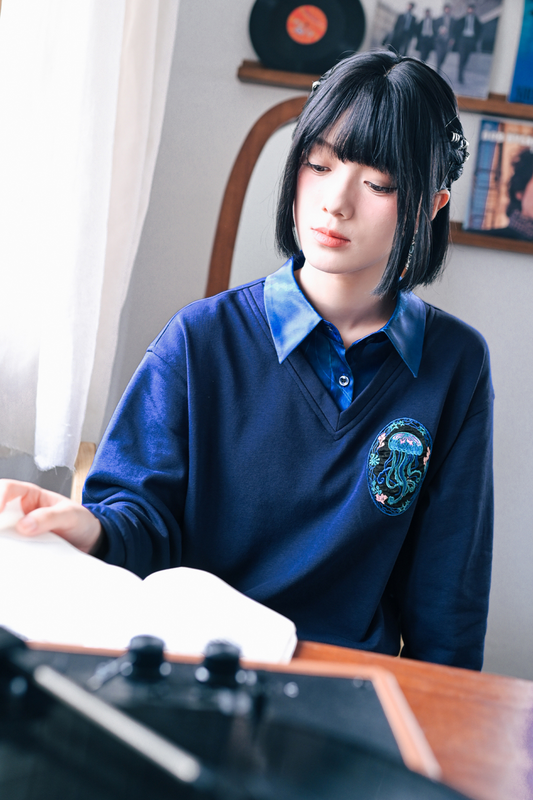 Faux Two-piece College Tops