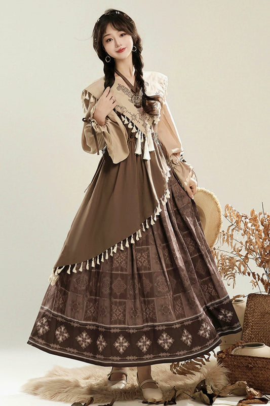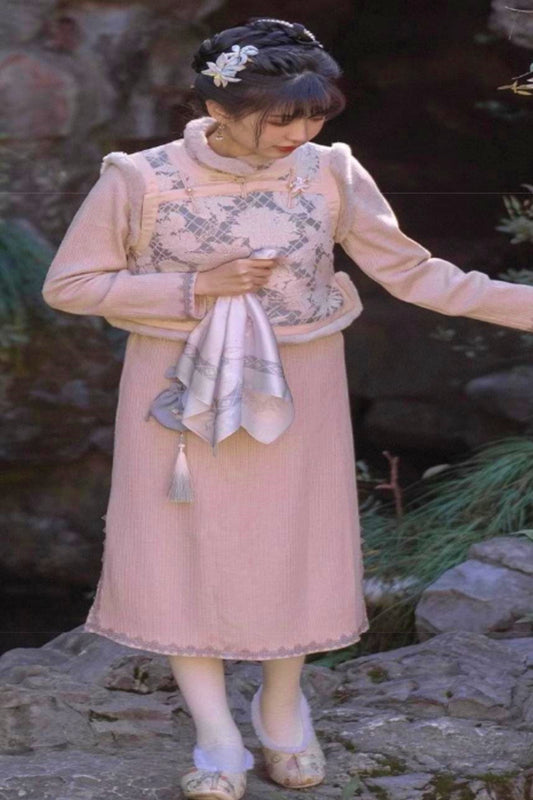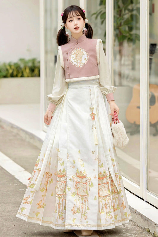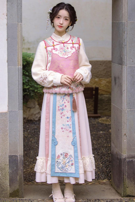 Sweet Chinese Tops+Vest+Horse Skirt