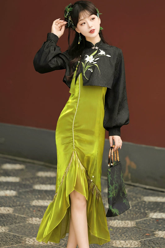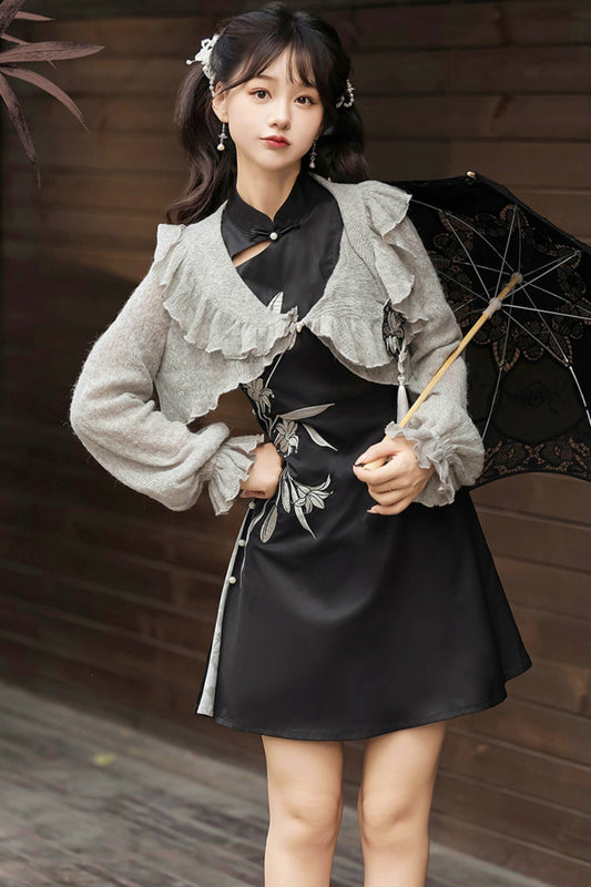 Retro Flower Chinese Dress + Cloak