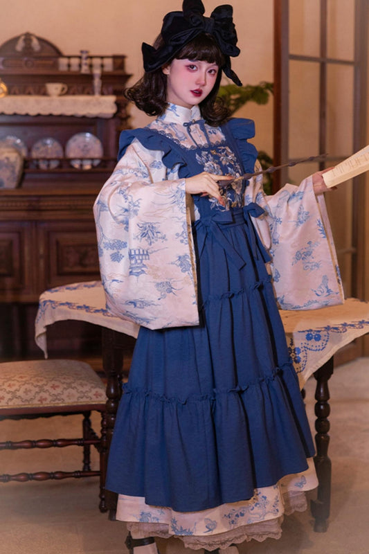 [Pre-order item] Blue and White Stand-up Collar China Set-up