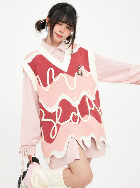 Colorful Striped Design V-Neck Knit Sweater Vest