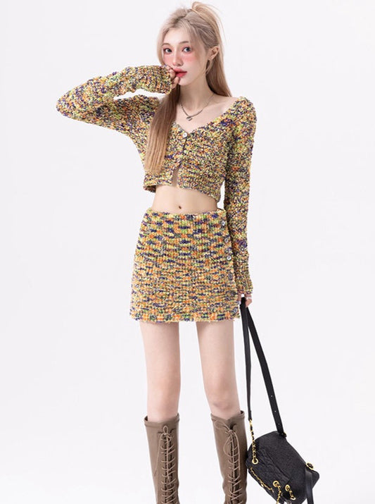 Rainbow Gradation Color Knit Cardigan + Rainbow Camisole