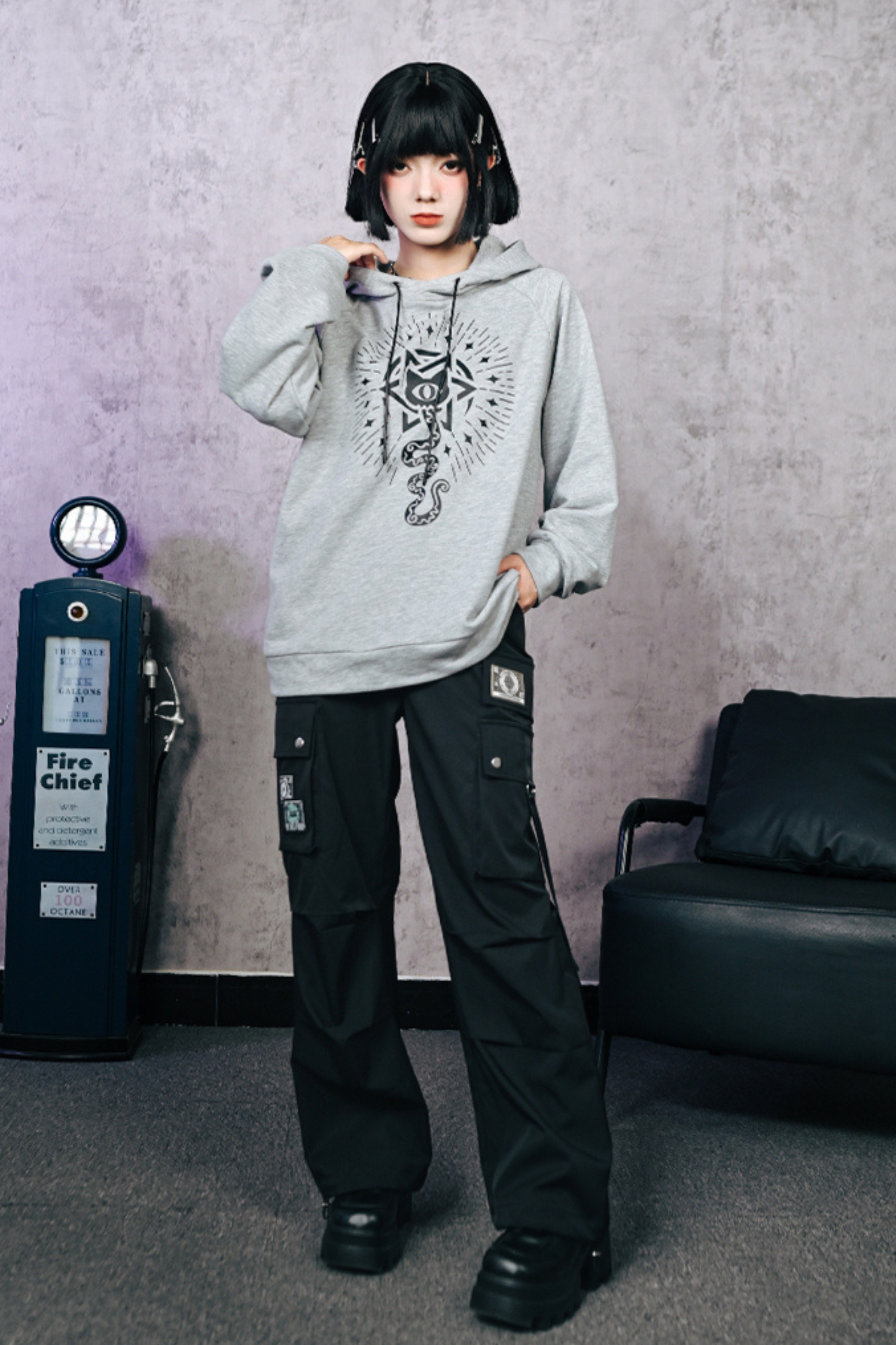 Gray Hooded Trendy Style Casual Top
