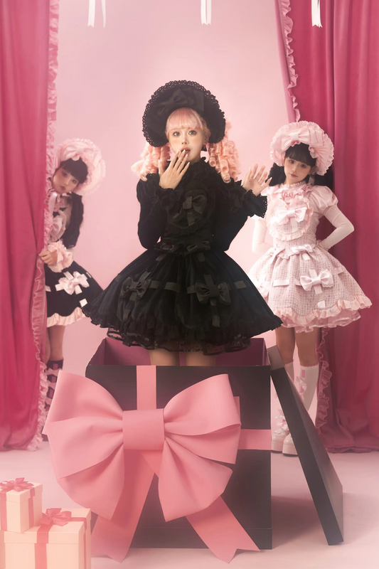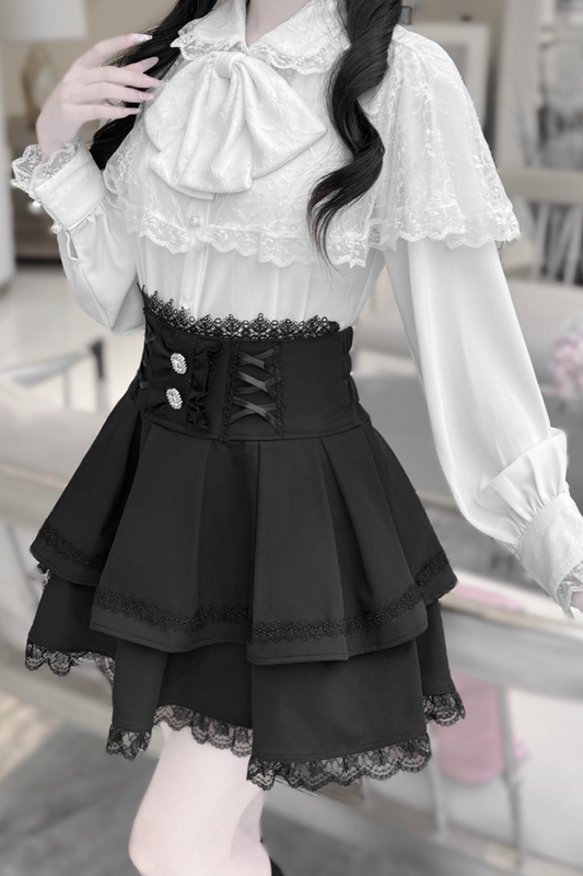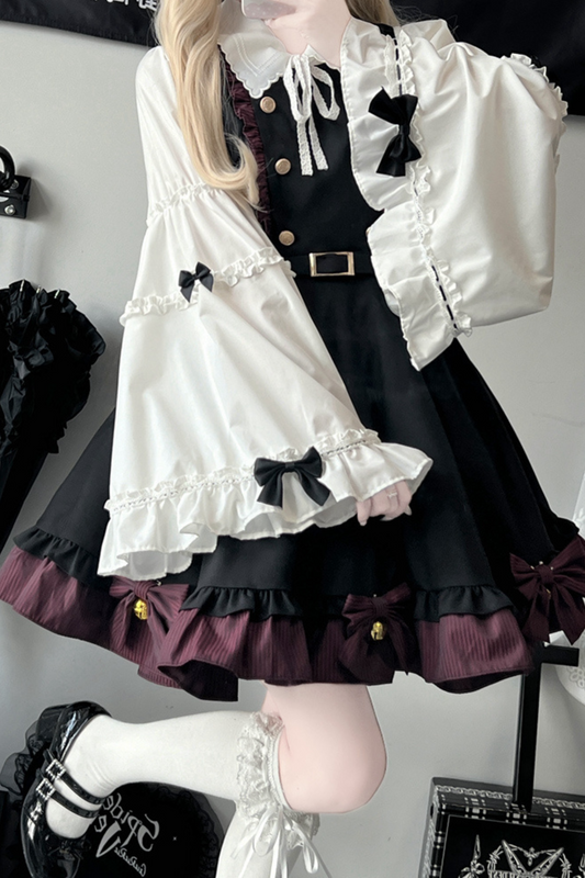 Sweetheart Lolita Suspender Skirt + Ruffle Neck Blouse + Pannier