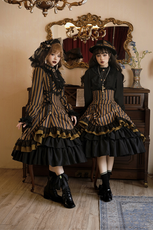 Retro Striped Elegant Gothic Lolita Dress