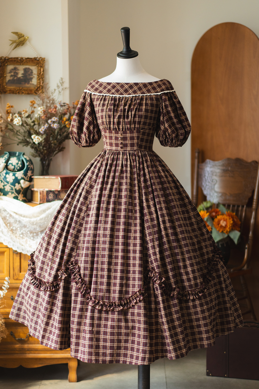 Forest Word Retro Check Lolita Dress + Petticoat