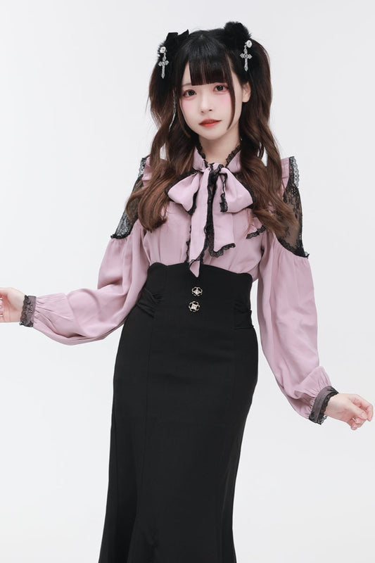 Shoulder Lace Ribbon Blouse