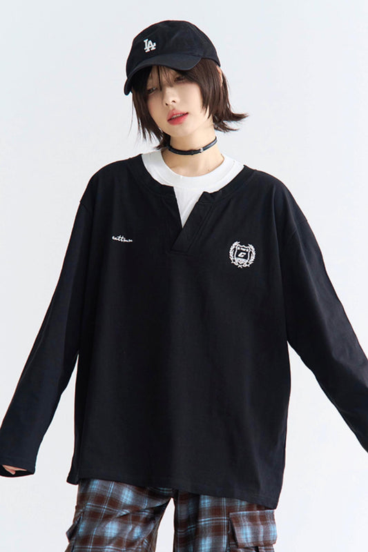 Color block collar long sleeve shirt
