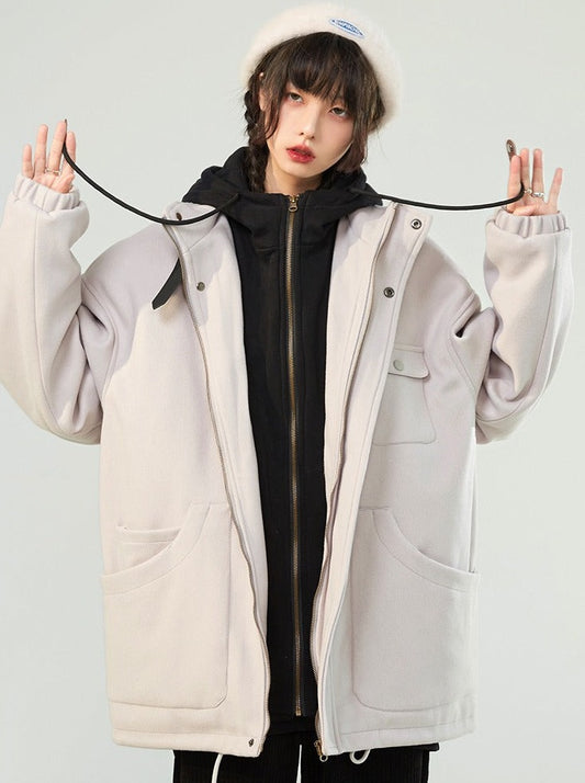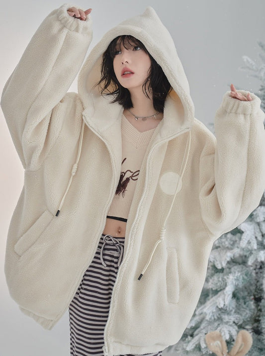 Lamb Wool Hooded Zip-Up Boa Hooded Parka