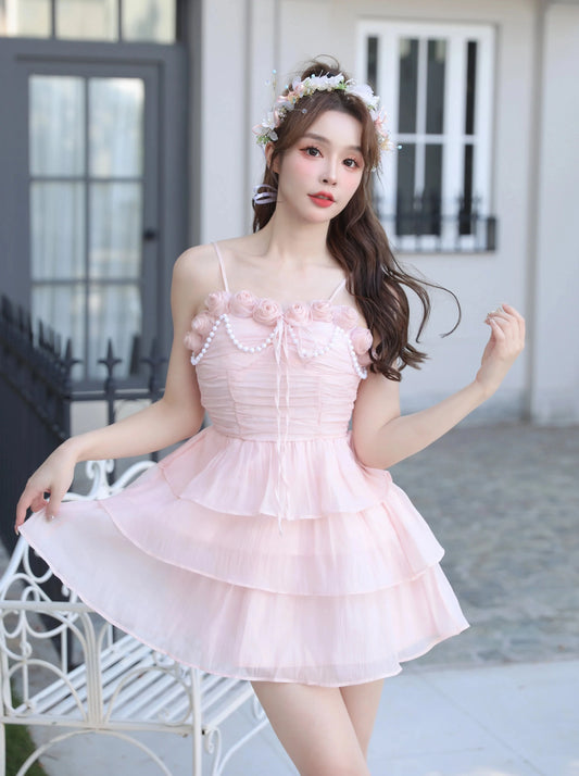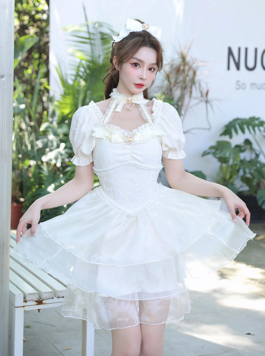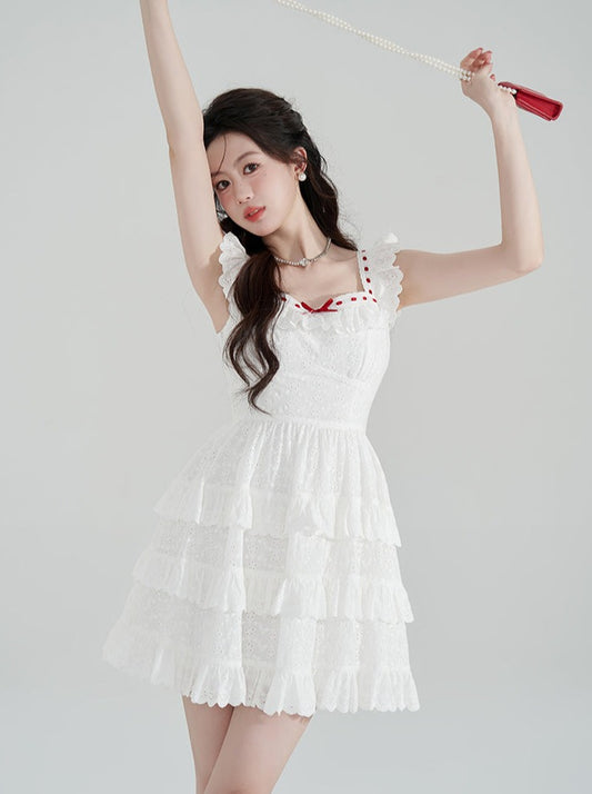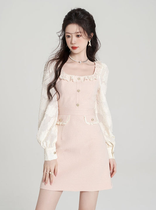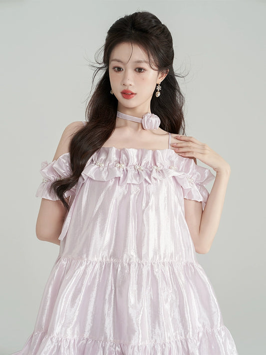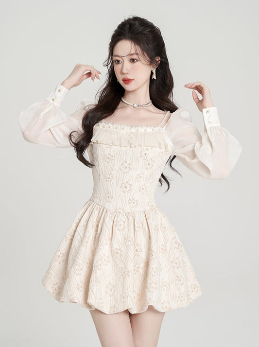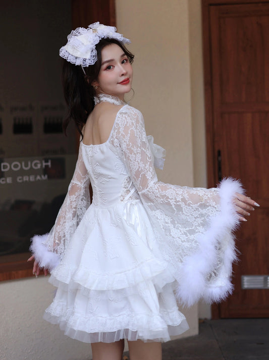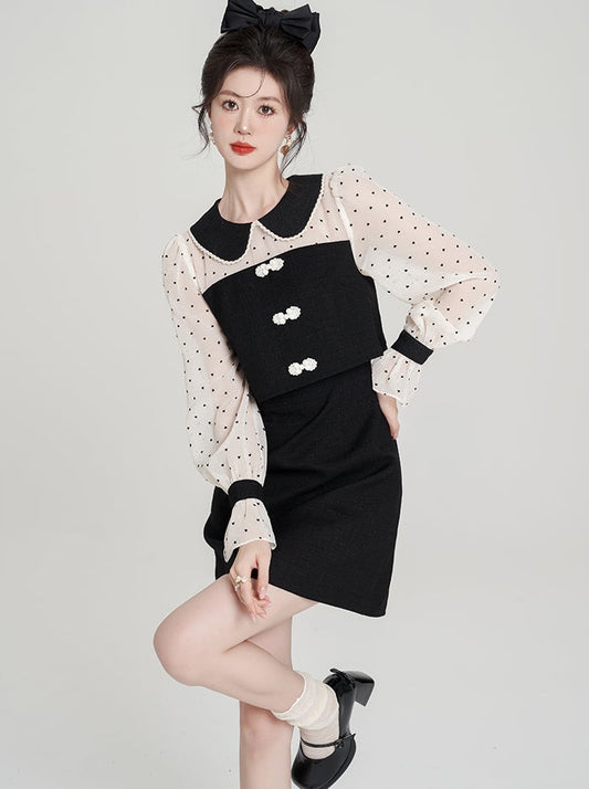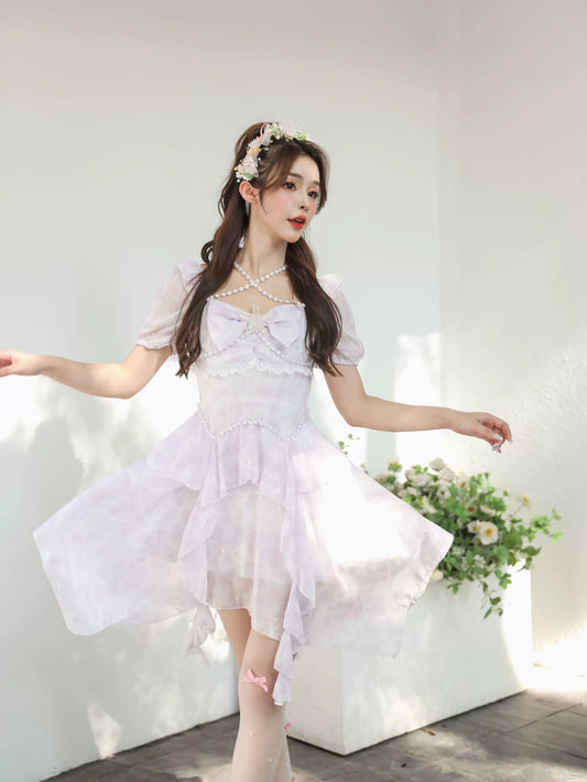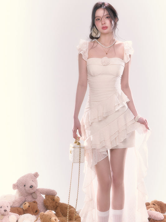 Sheer Dot Asymmetrical Flying Sleeves Flower Point Dress