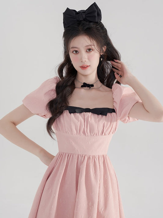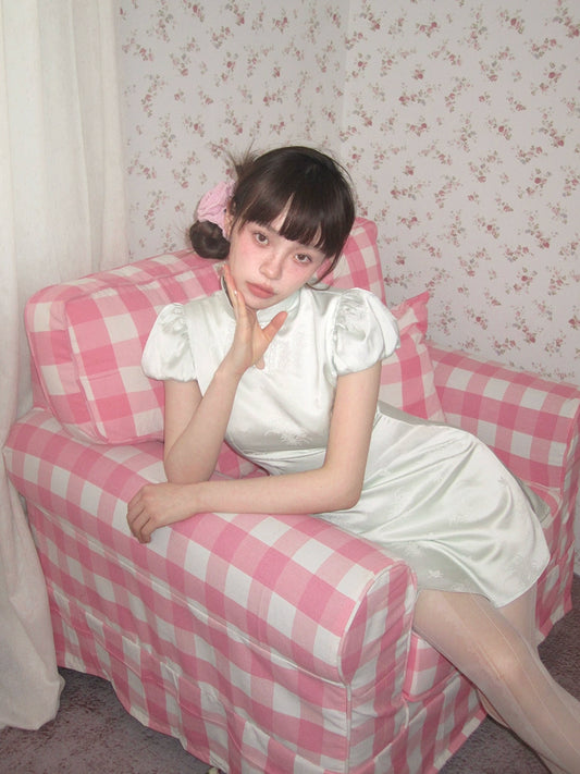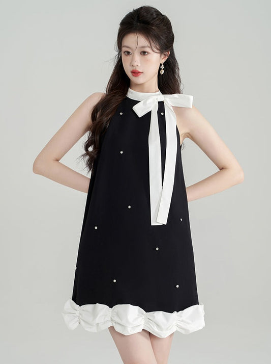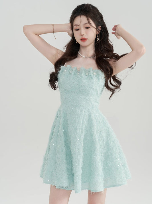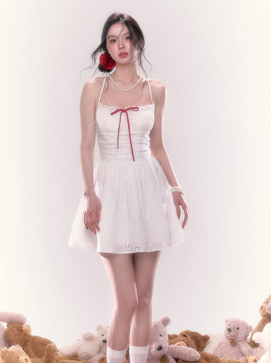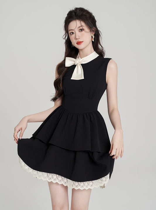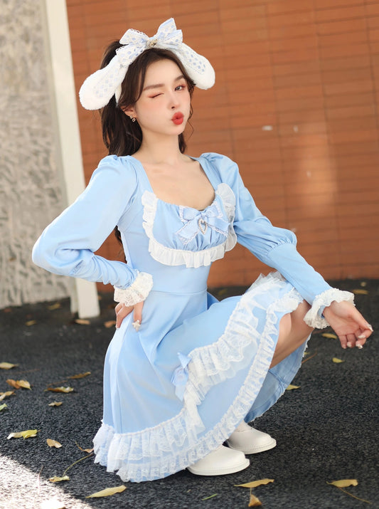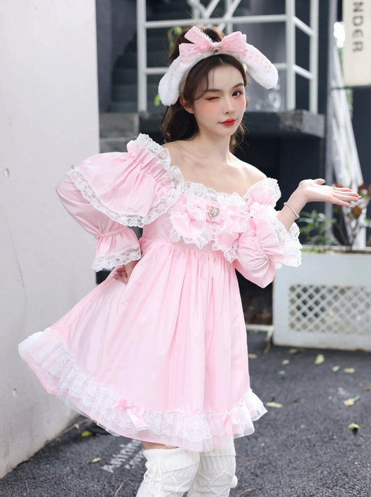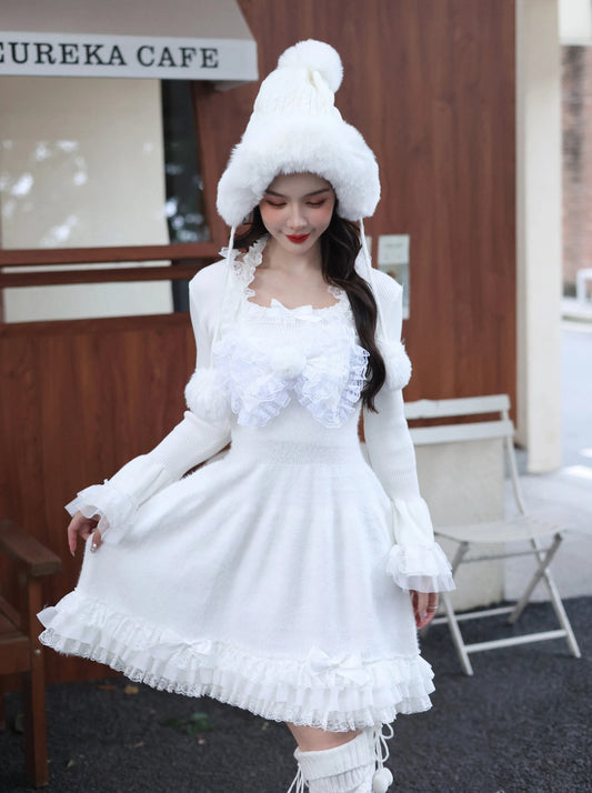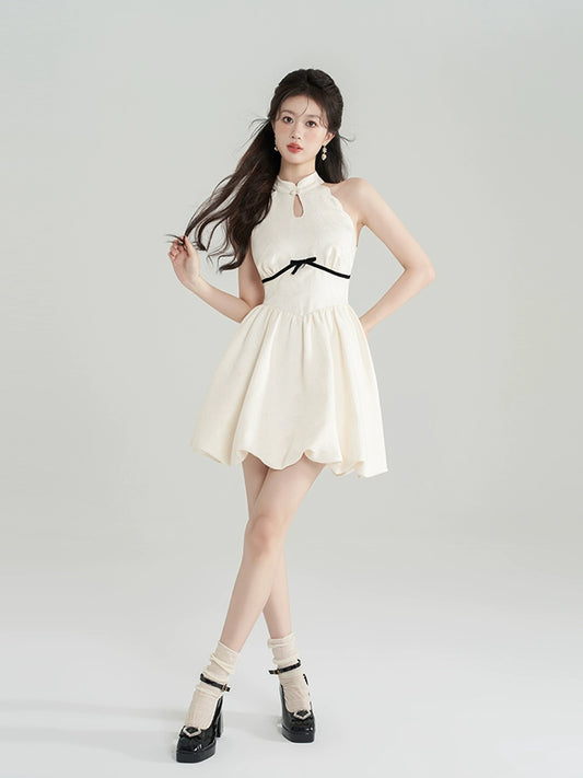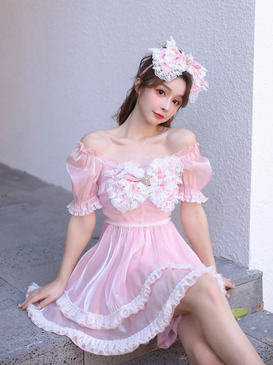 Sheer Dot Asymmetrical Flying Sleeves Flower Point Dress