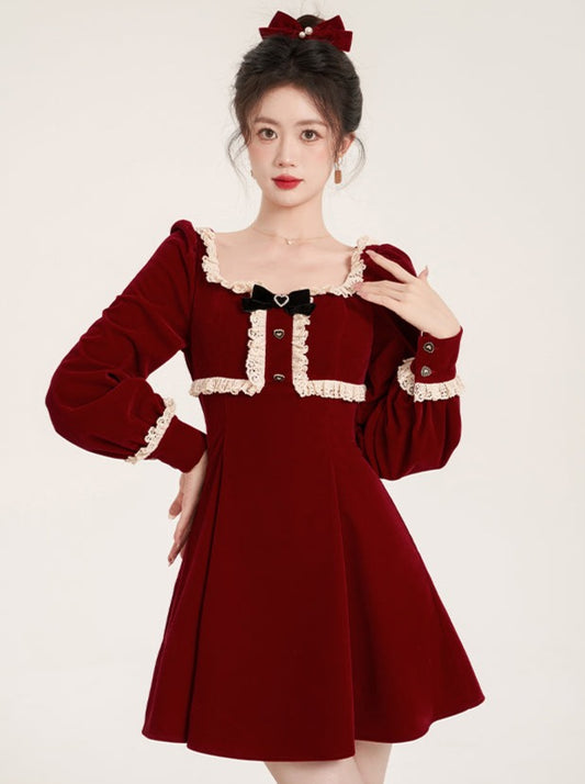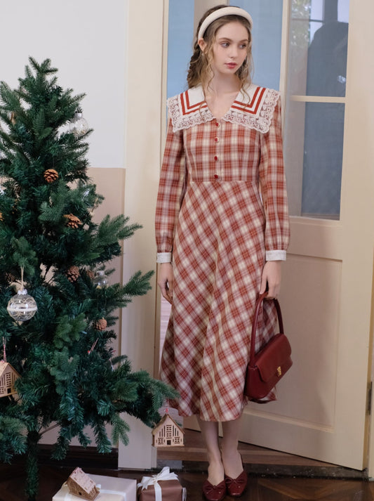 Queen Maillard French Retro Faux Retro Faux Two Piece Wool Check Dress