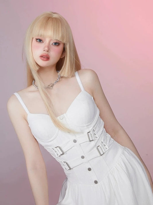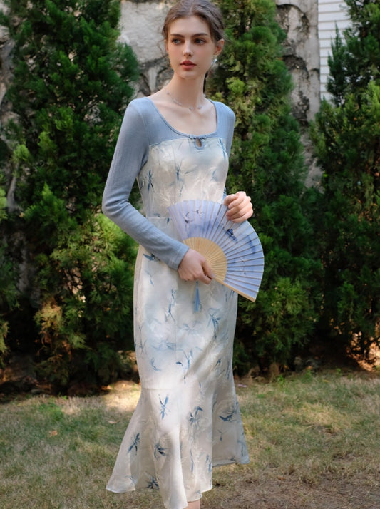 Smocking Slim Fit Hip Splicing Faux Two Piece Dress