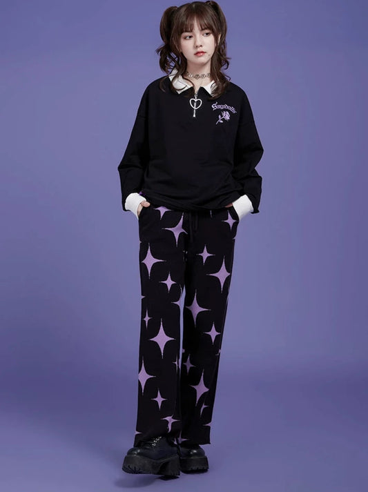 Black Purple Sweet Cool Knit Warm Pants
