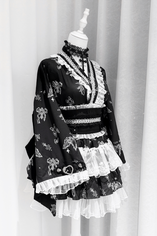 Gothic Modern Cross Rose Yukata 5-Piece Set