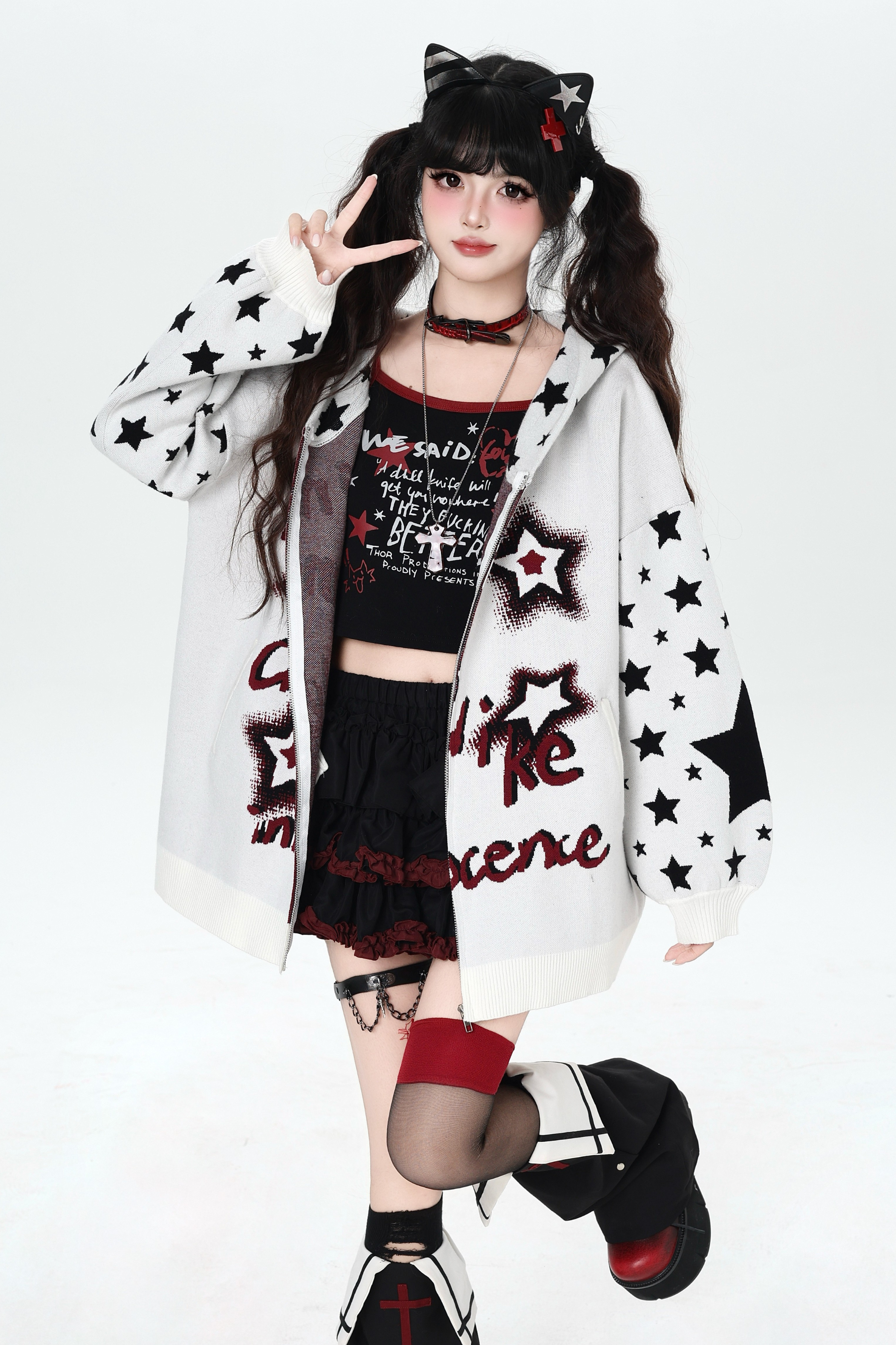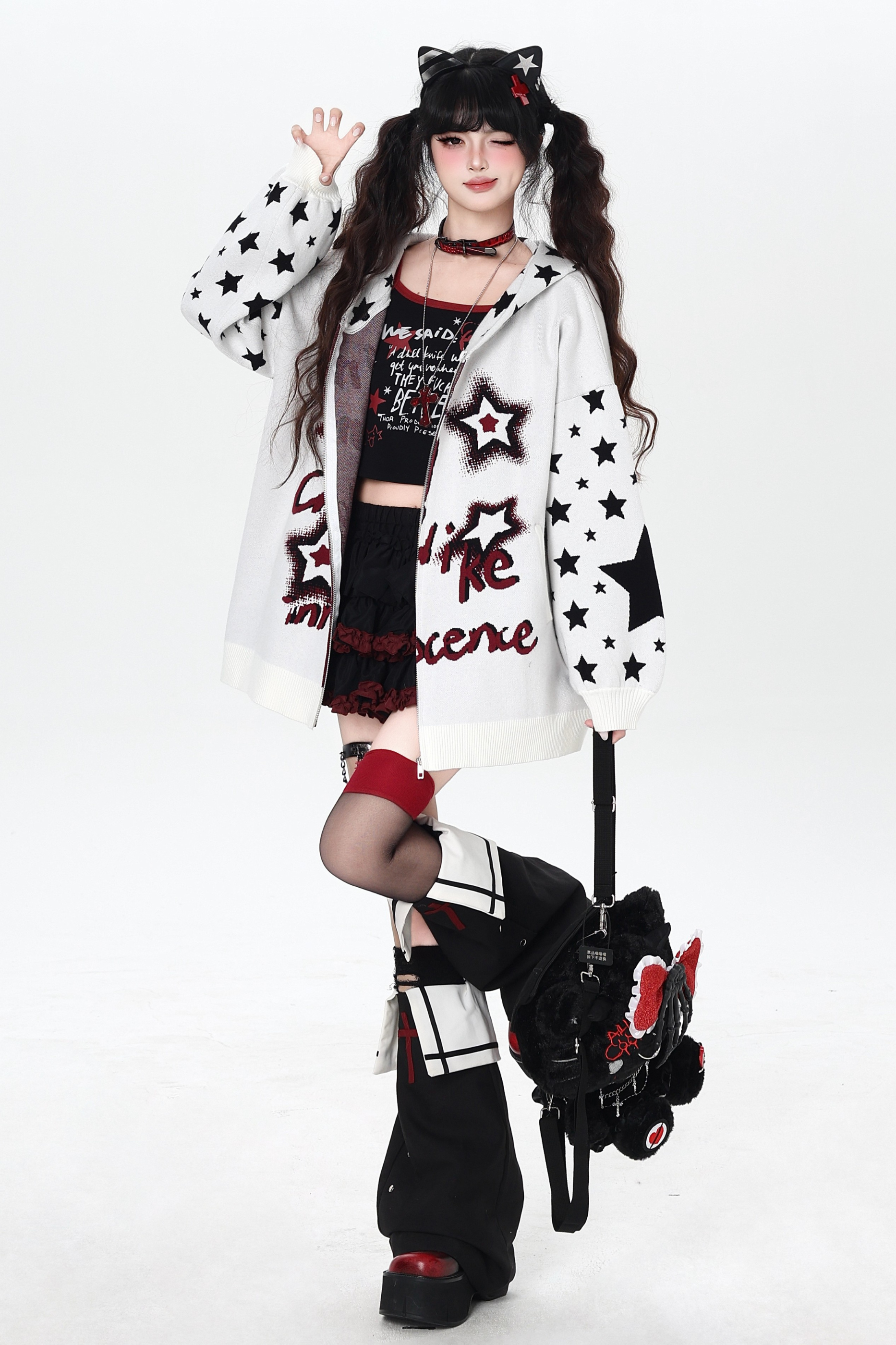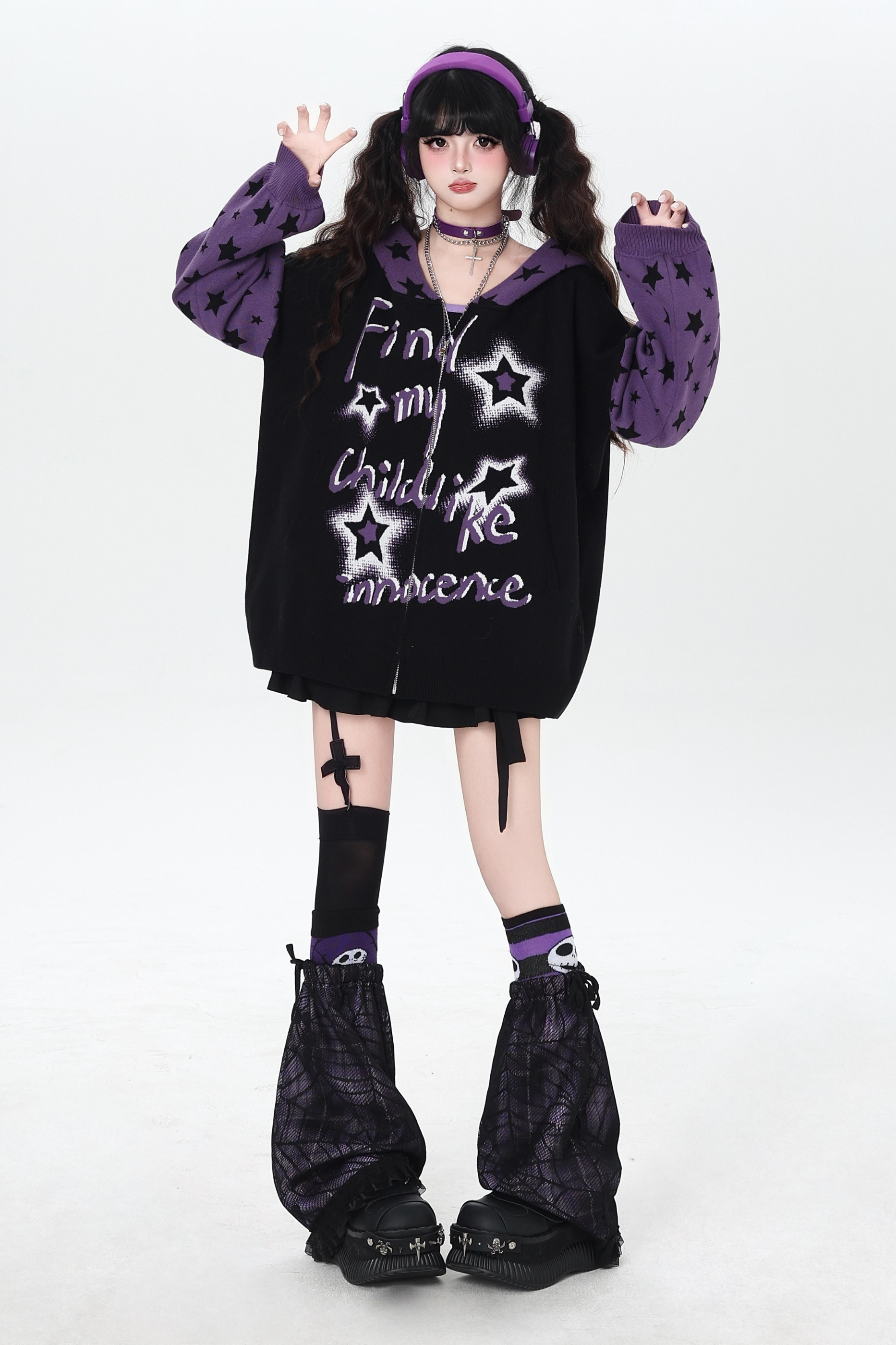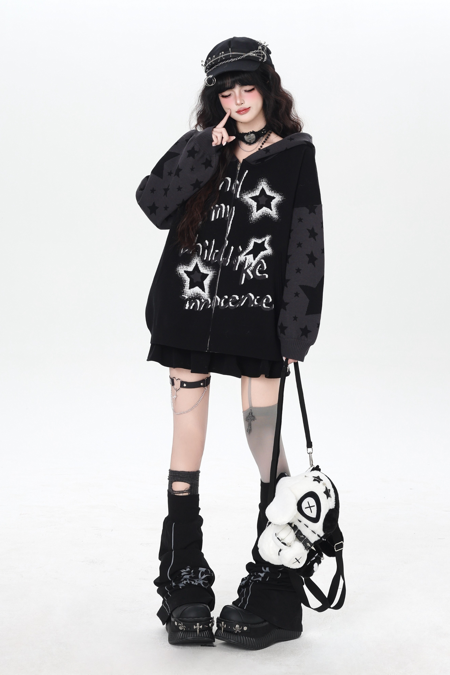 ❤Star Gothic Bicolor Hooded Knit Cardigan❤