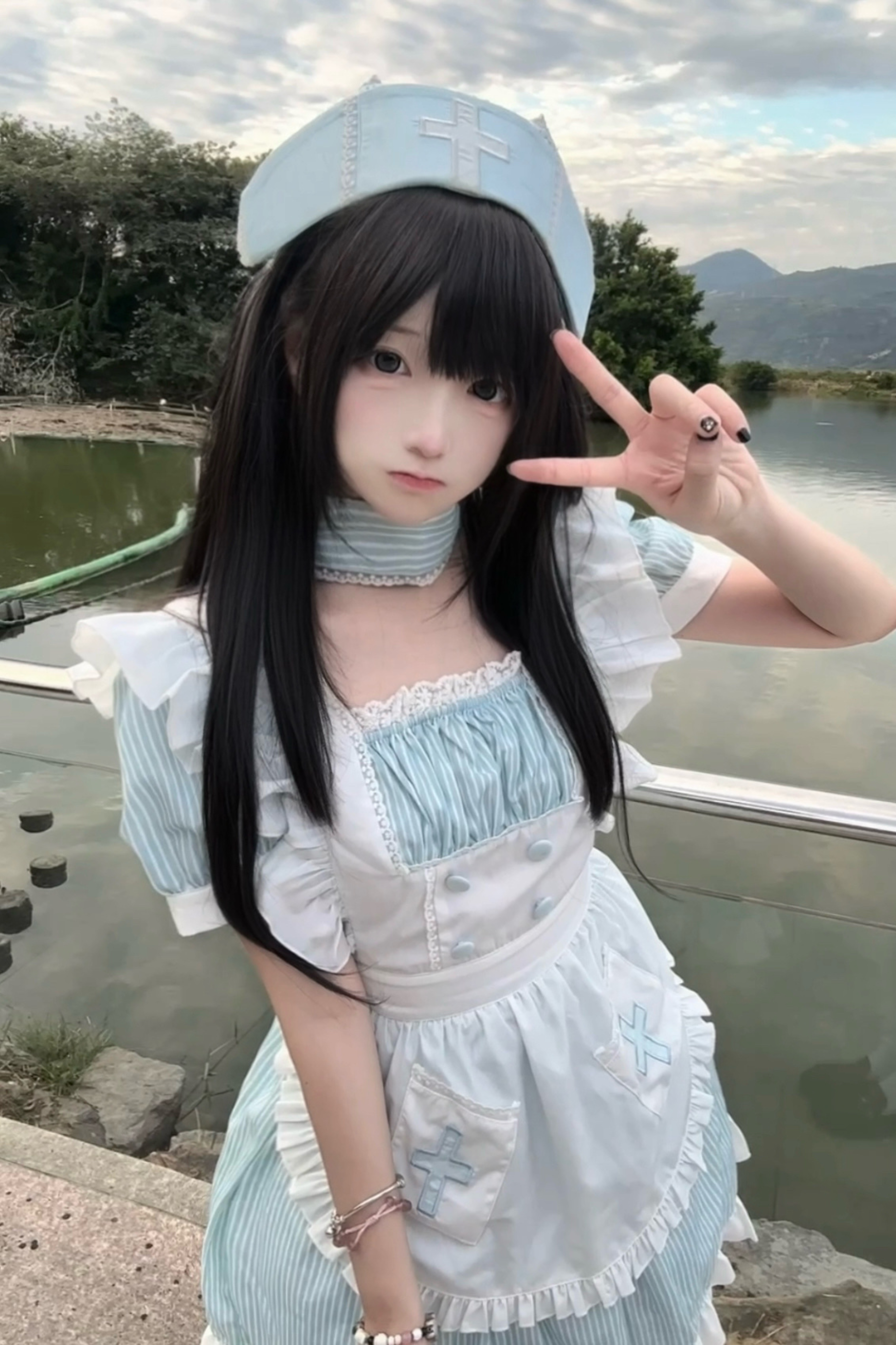 ❤Angel Aqua Maid Apron Dress + Nurse Hat❤