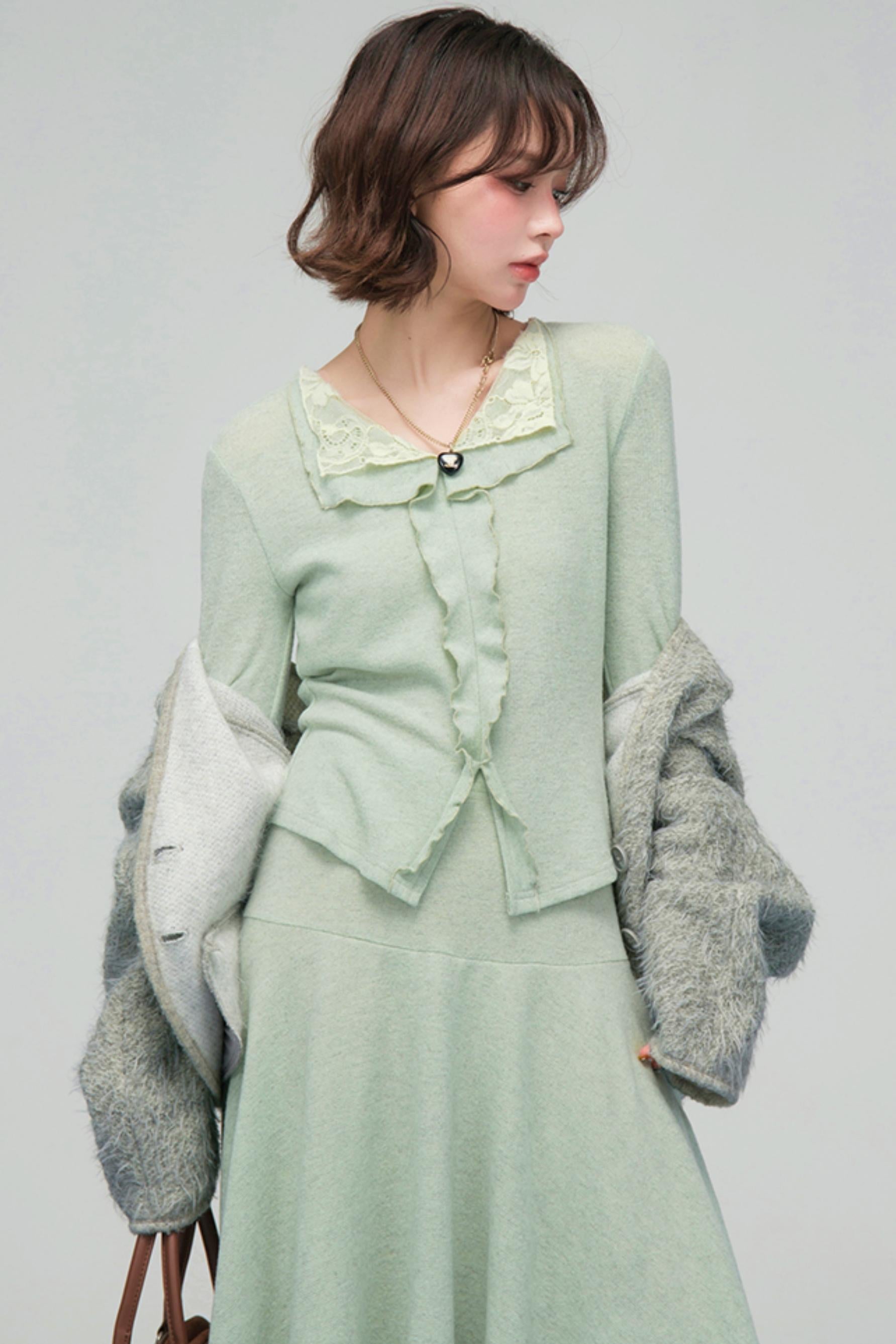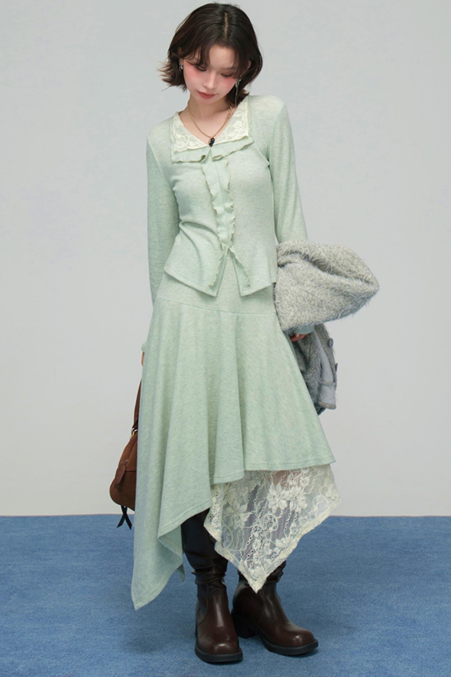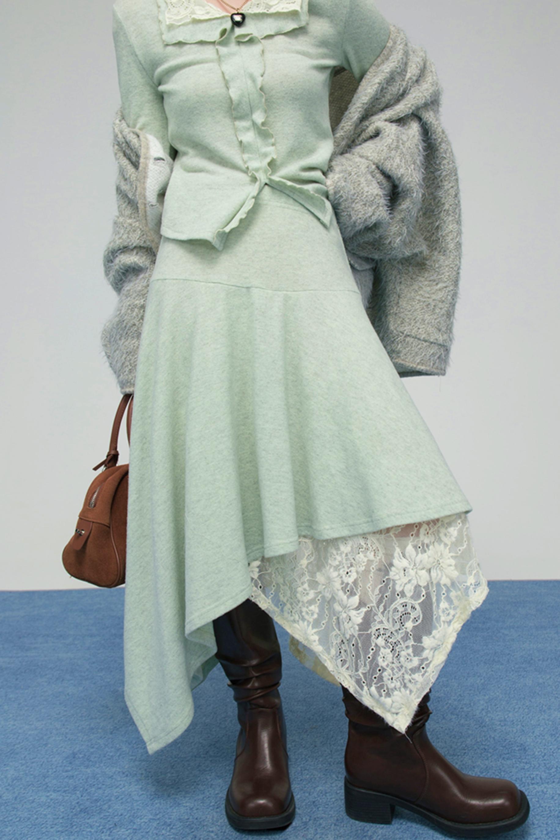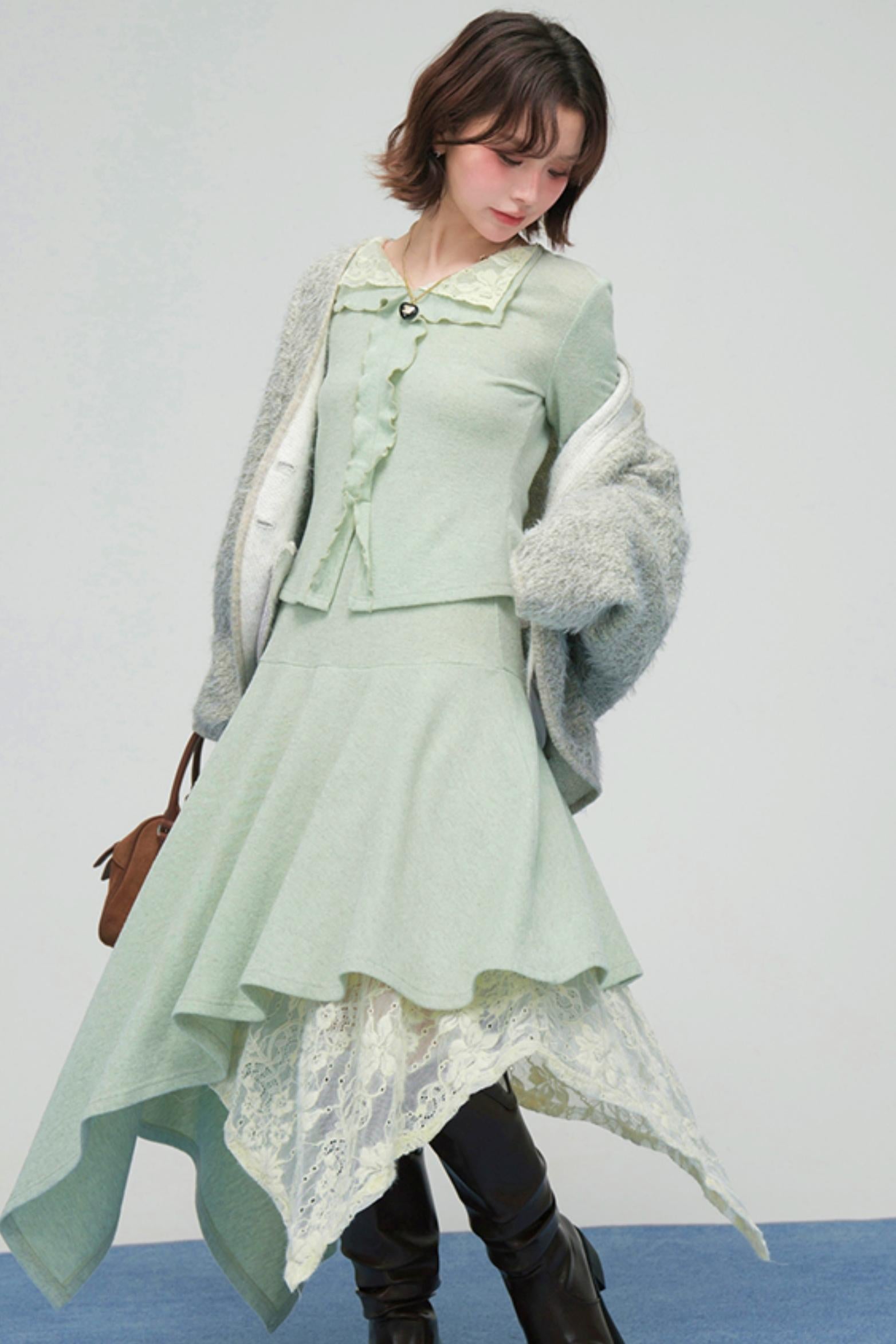 ❤レースカラーニットトップス+アシメスカート❤