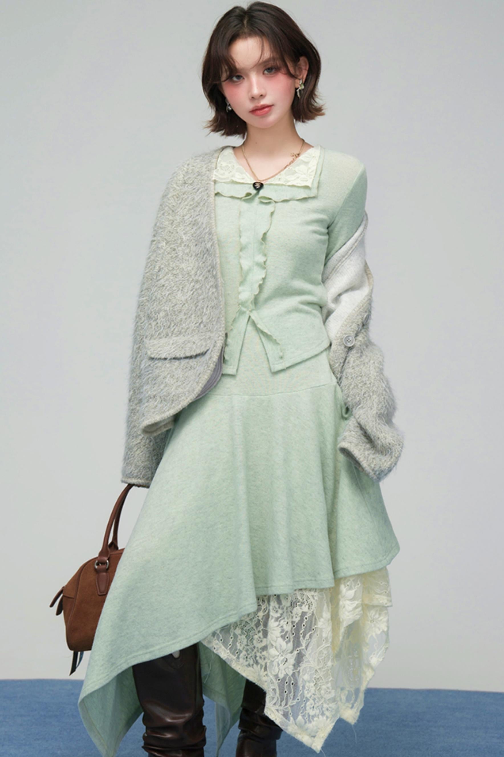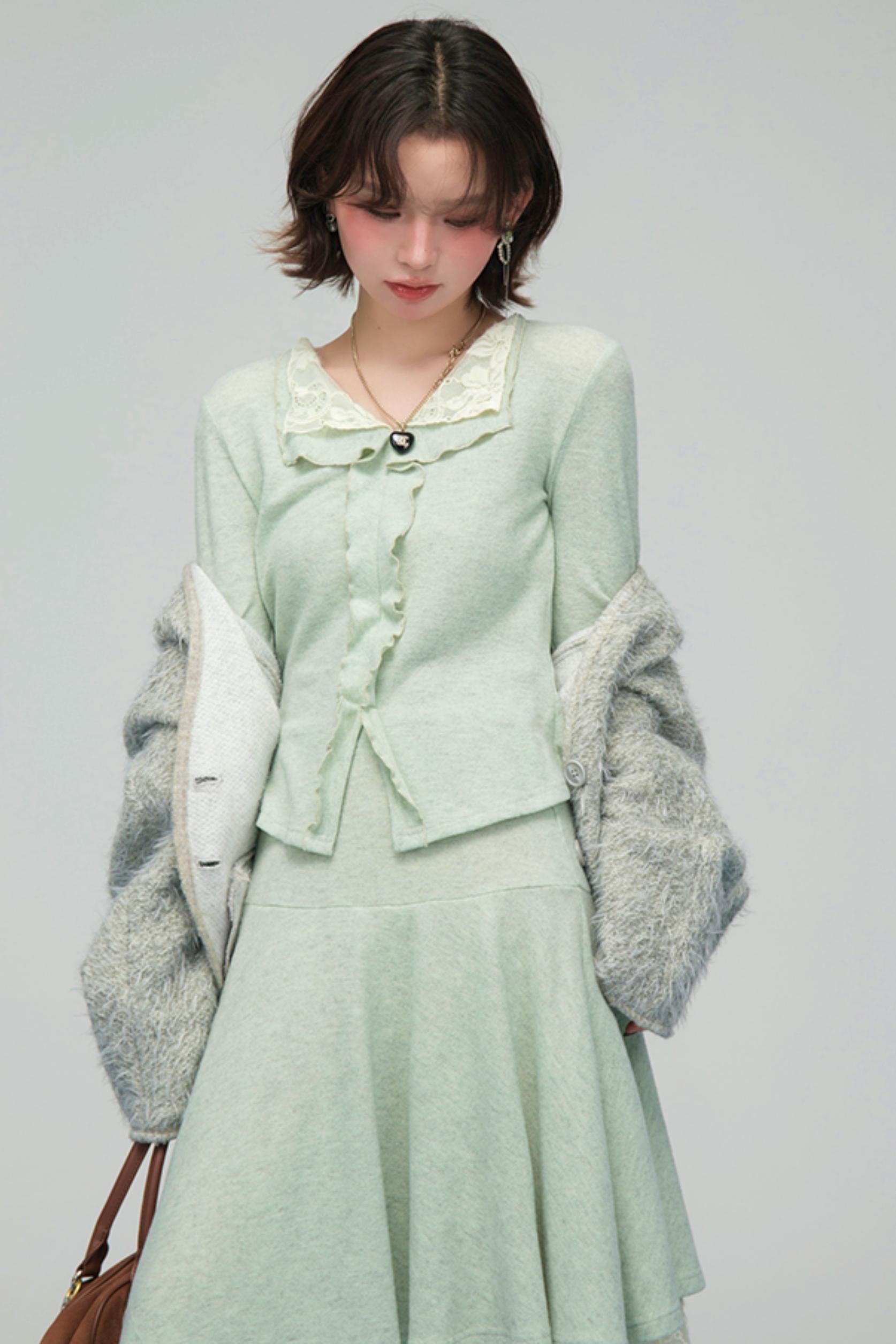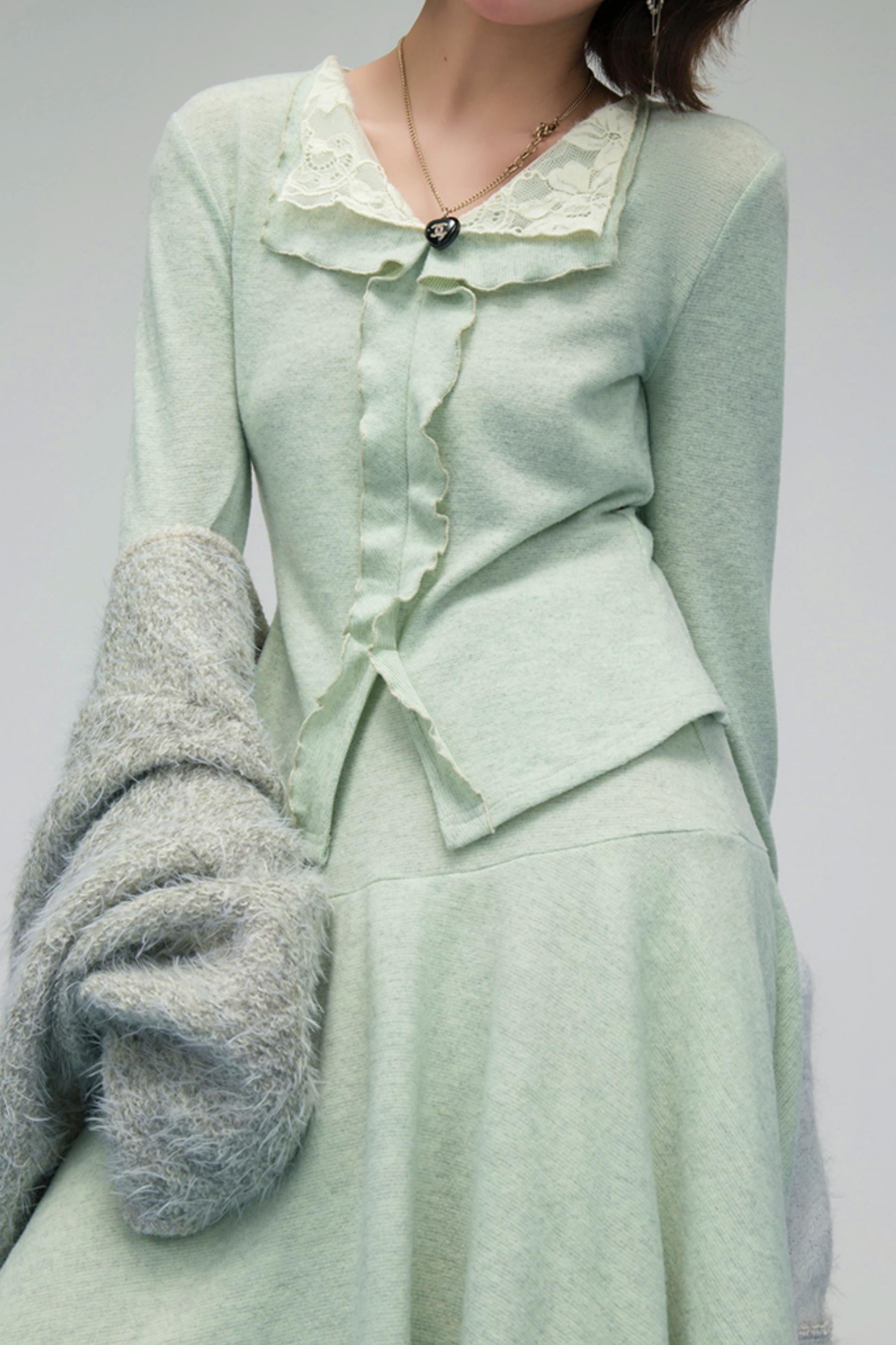 ❤レースカラーニットトップス+アシメスカート❤