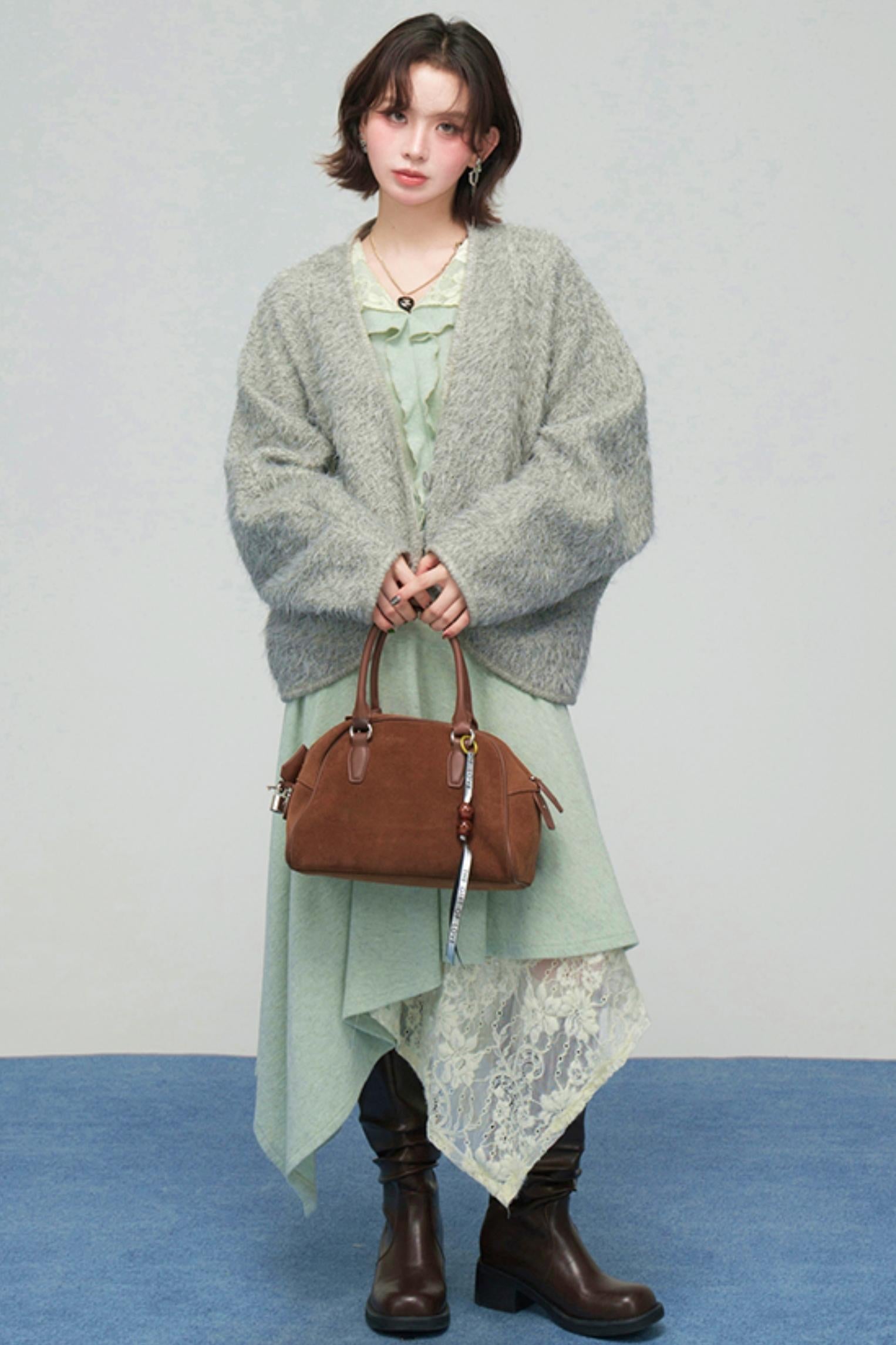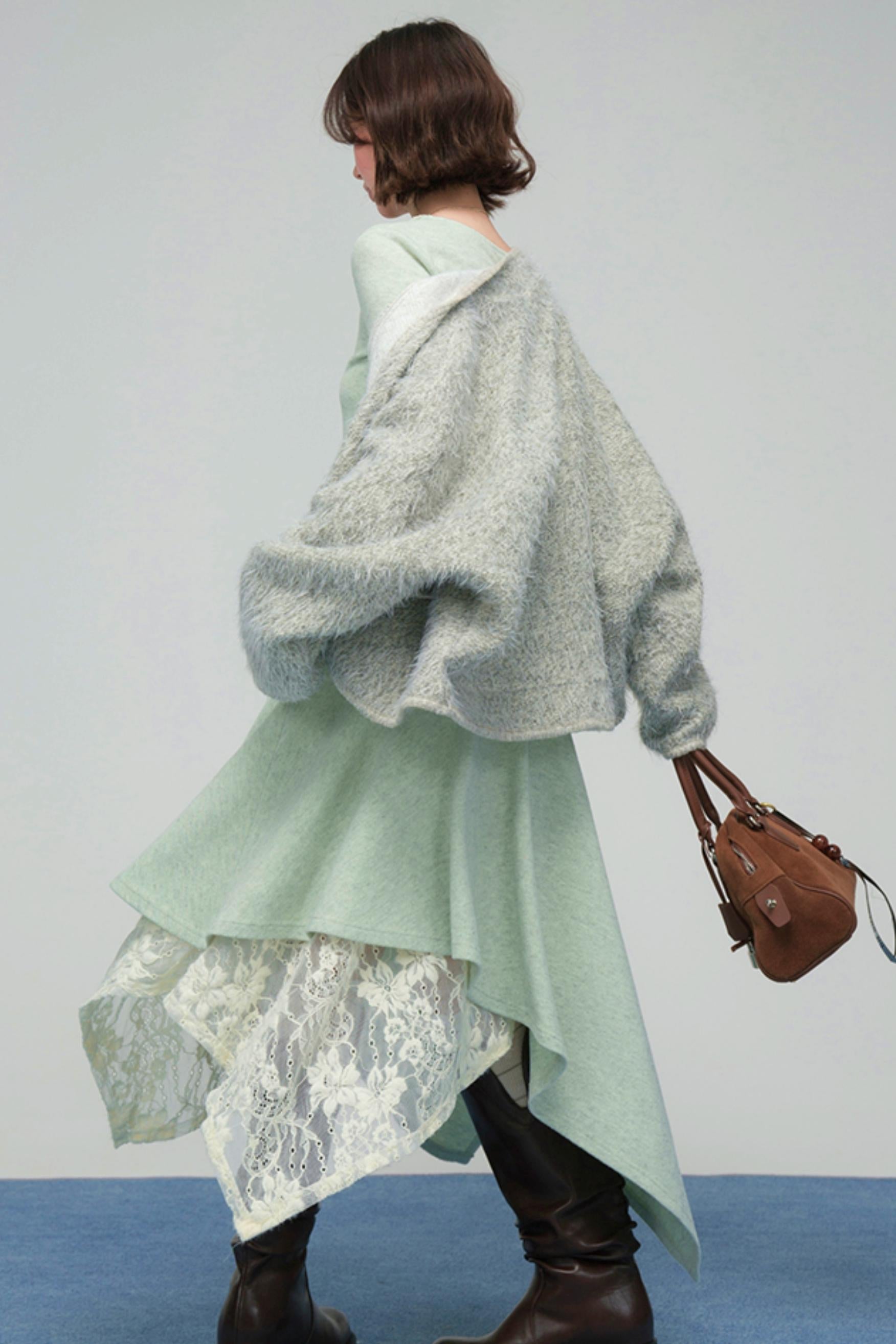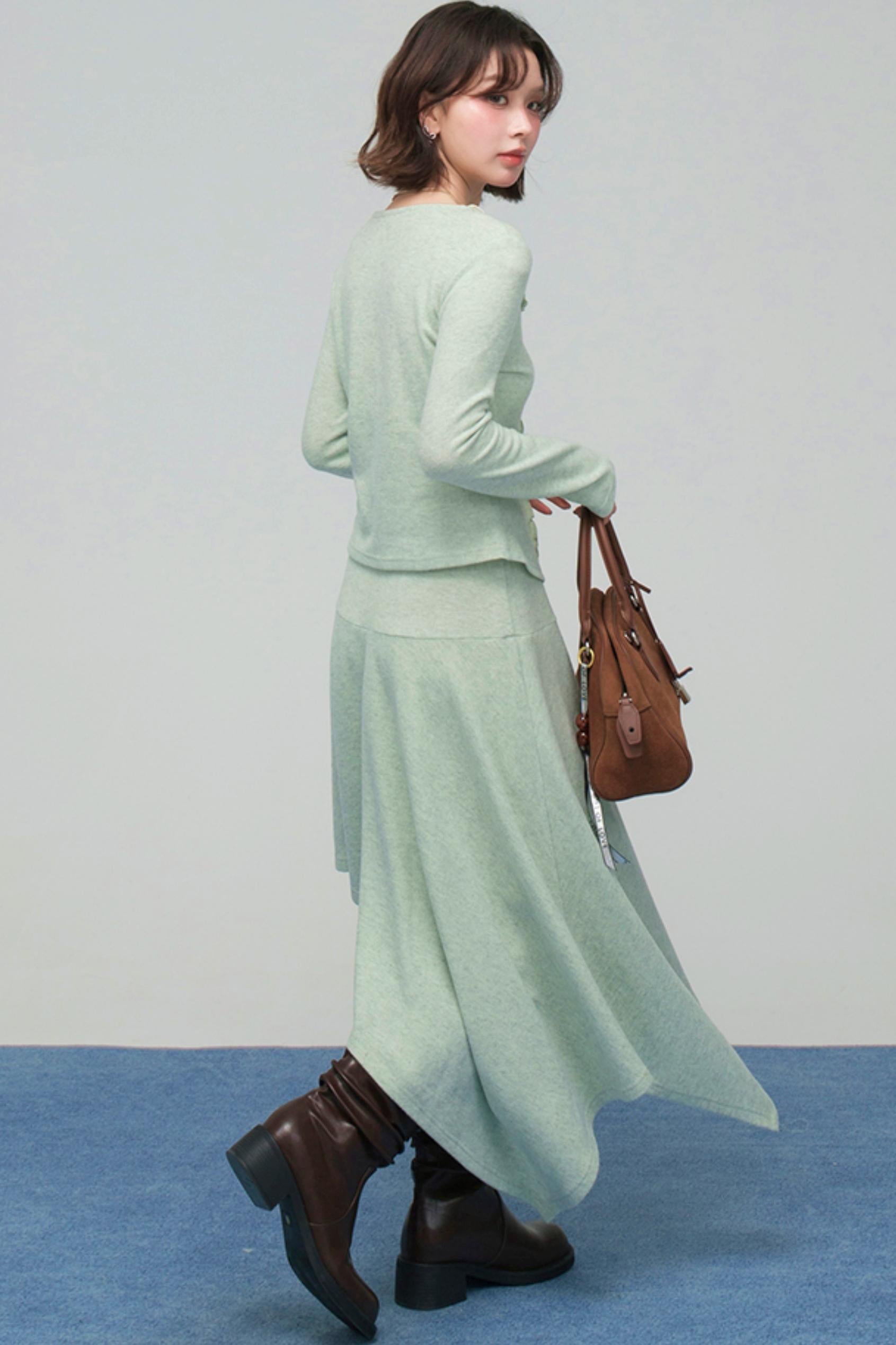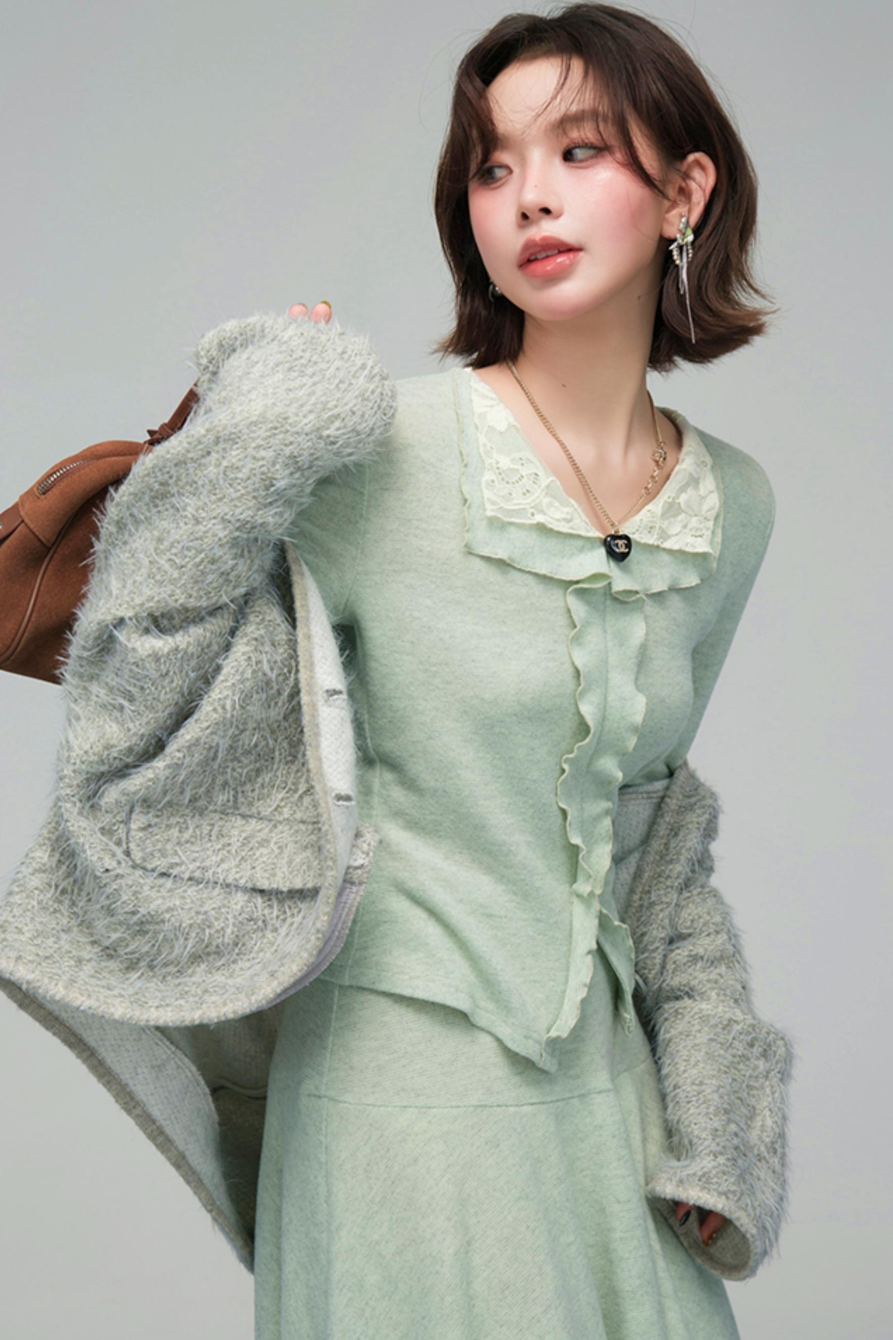 ❤レースカラーニットトップス+アシメスカート❤