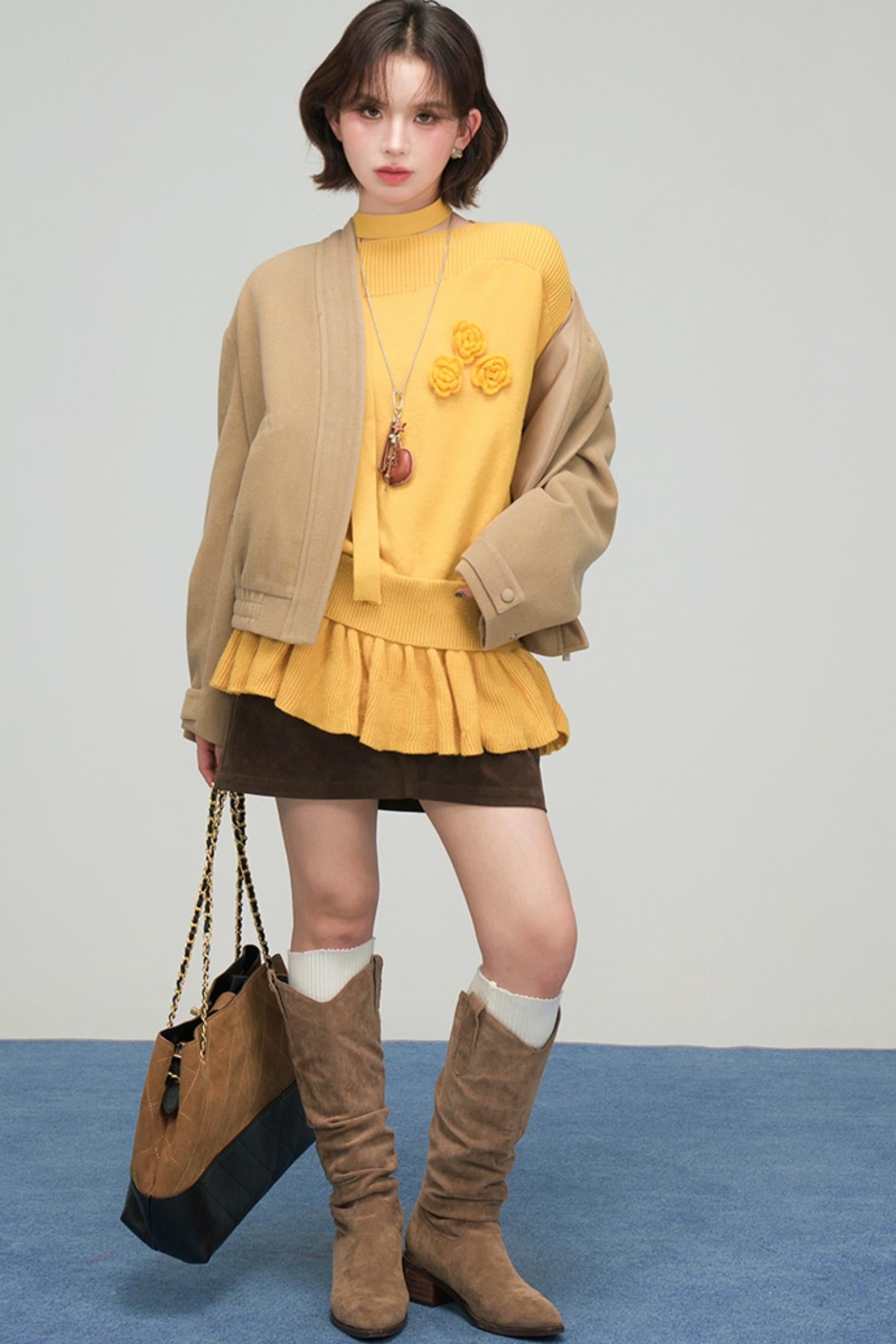 ラテクロワッサンブイネックジャケット