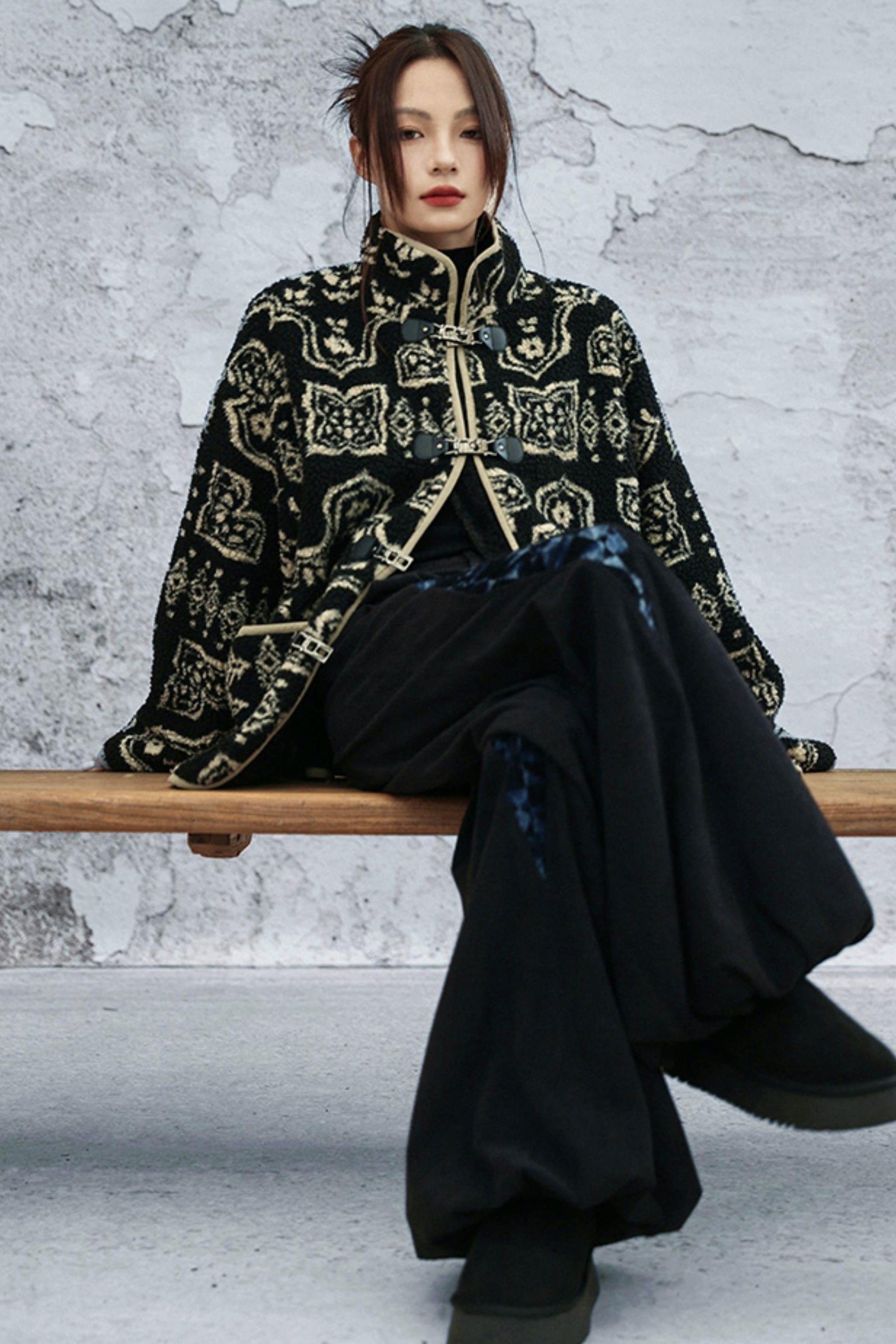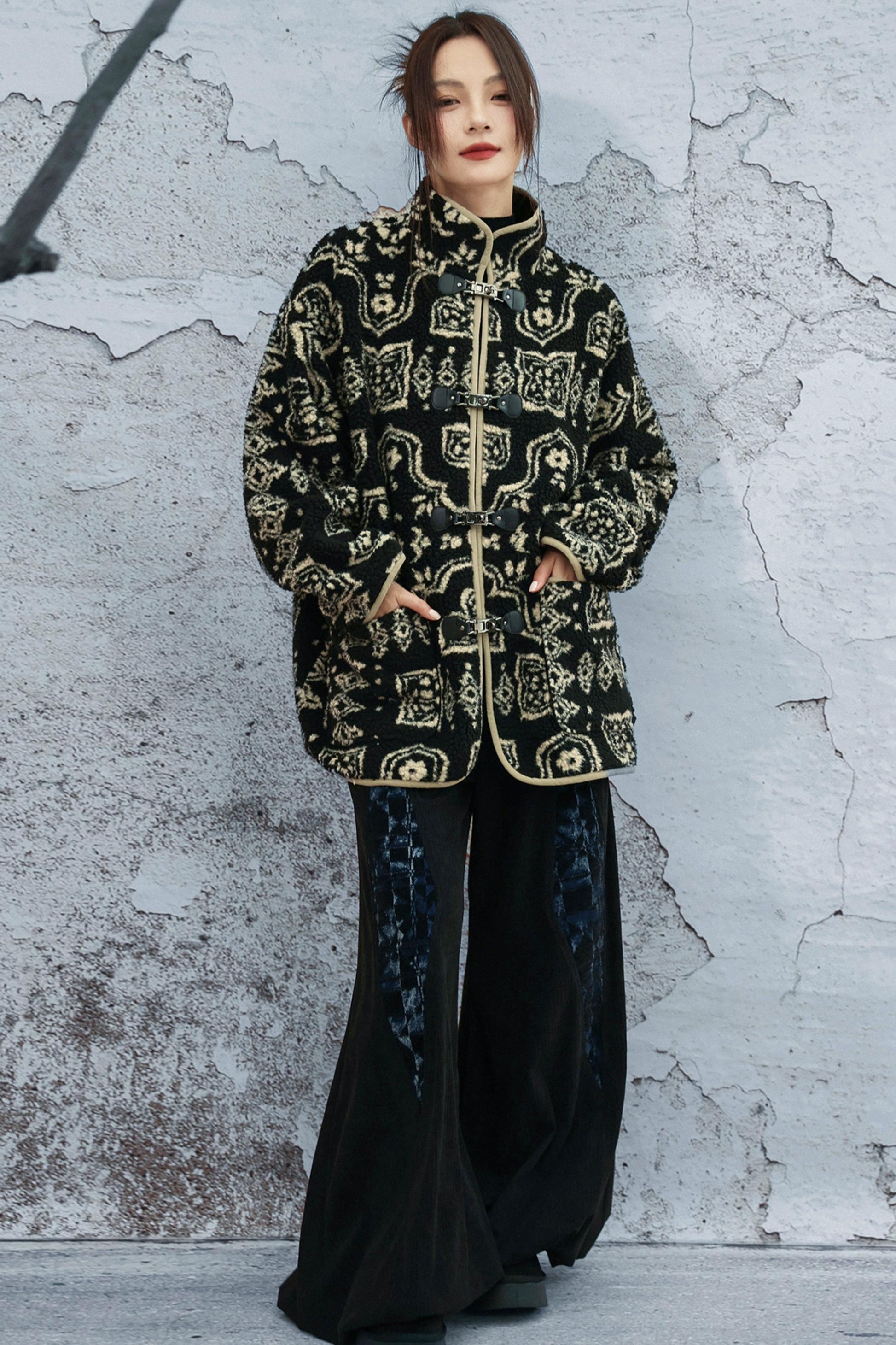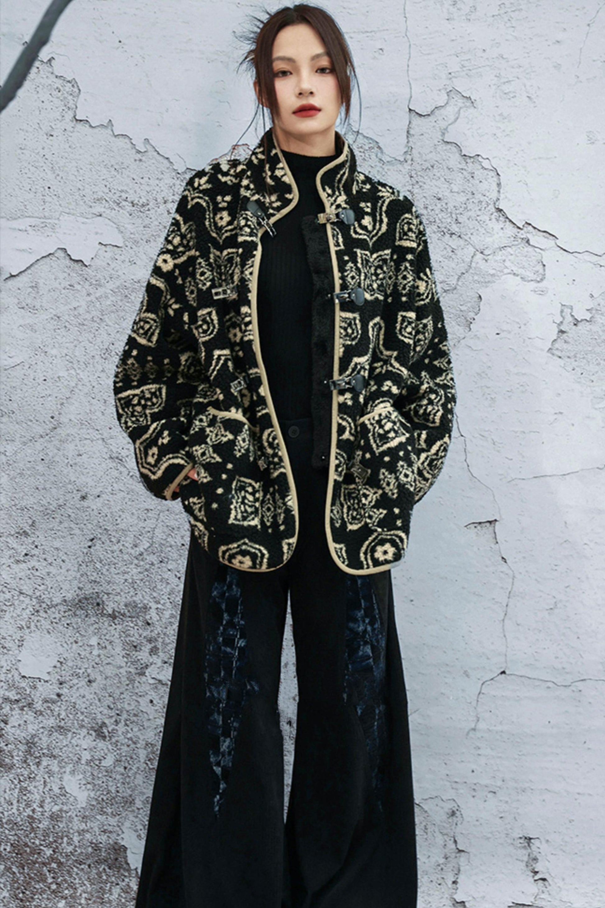 ❤メディーバルジャカードスタンドアップカラーコート❤