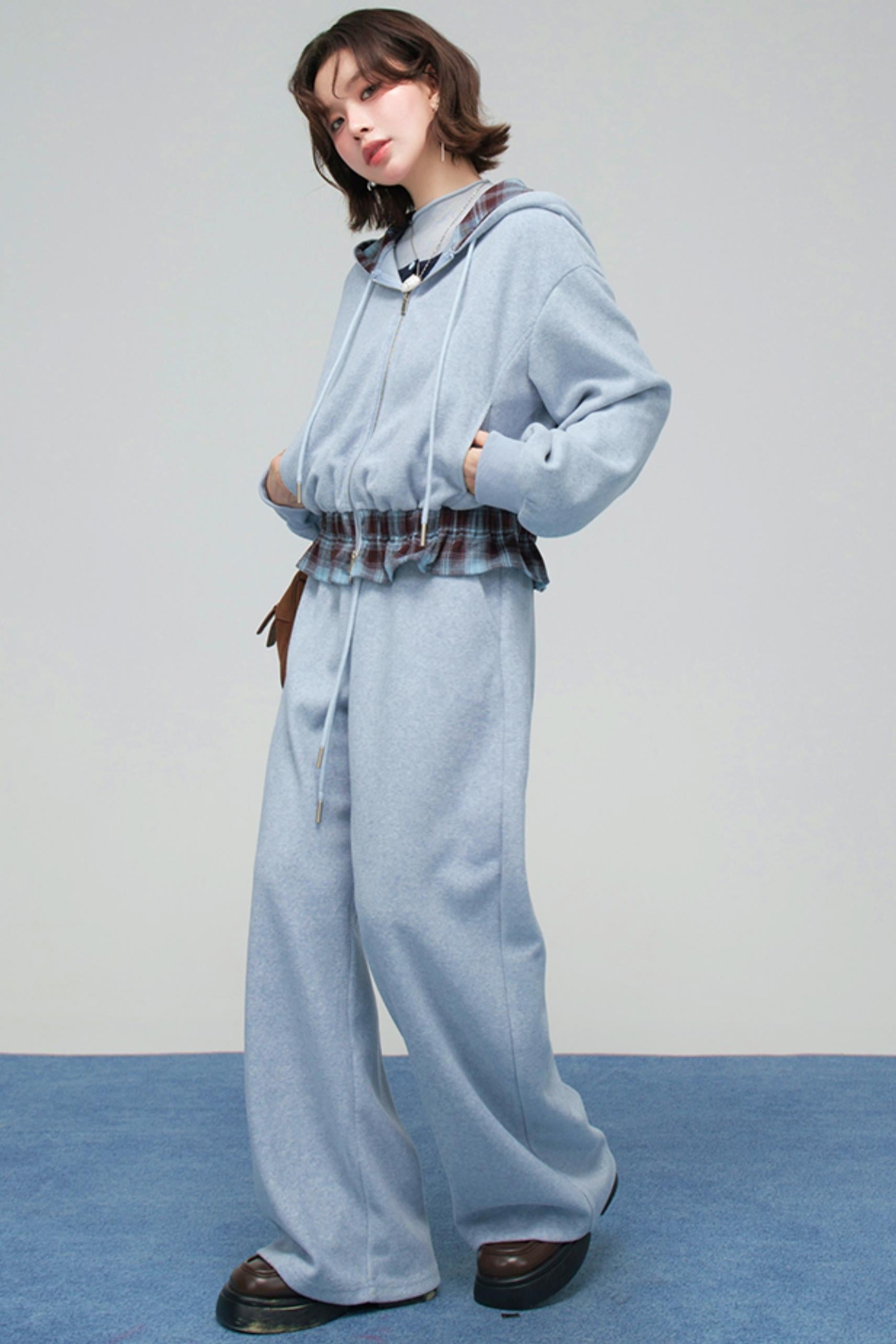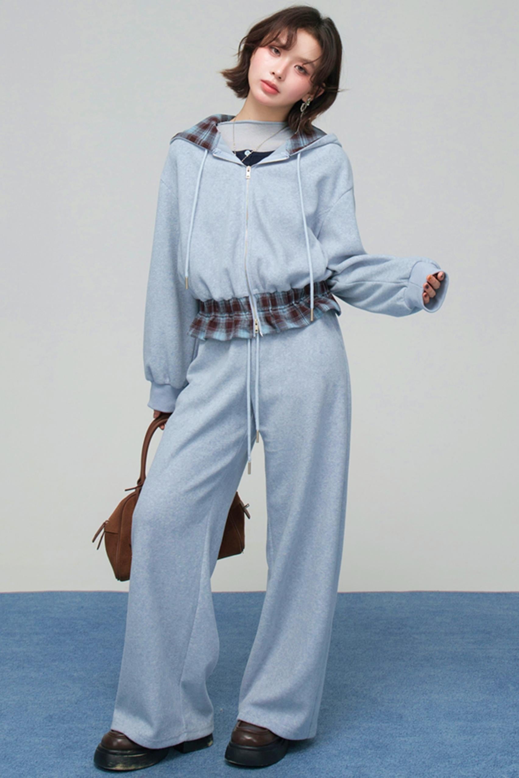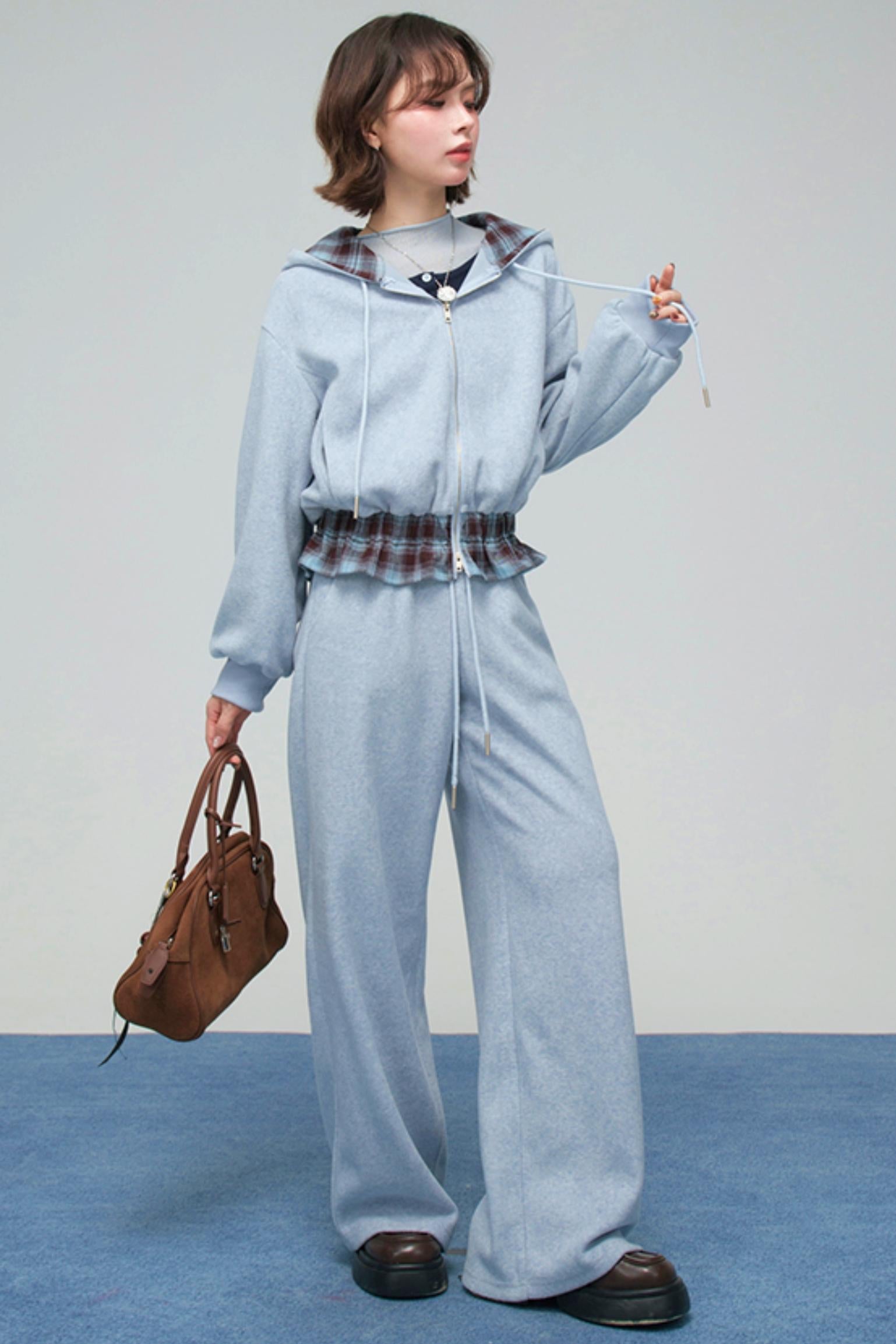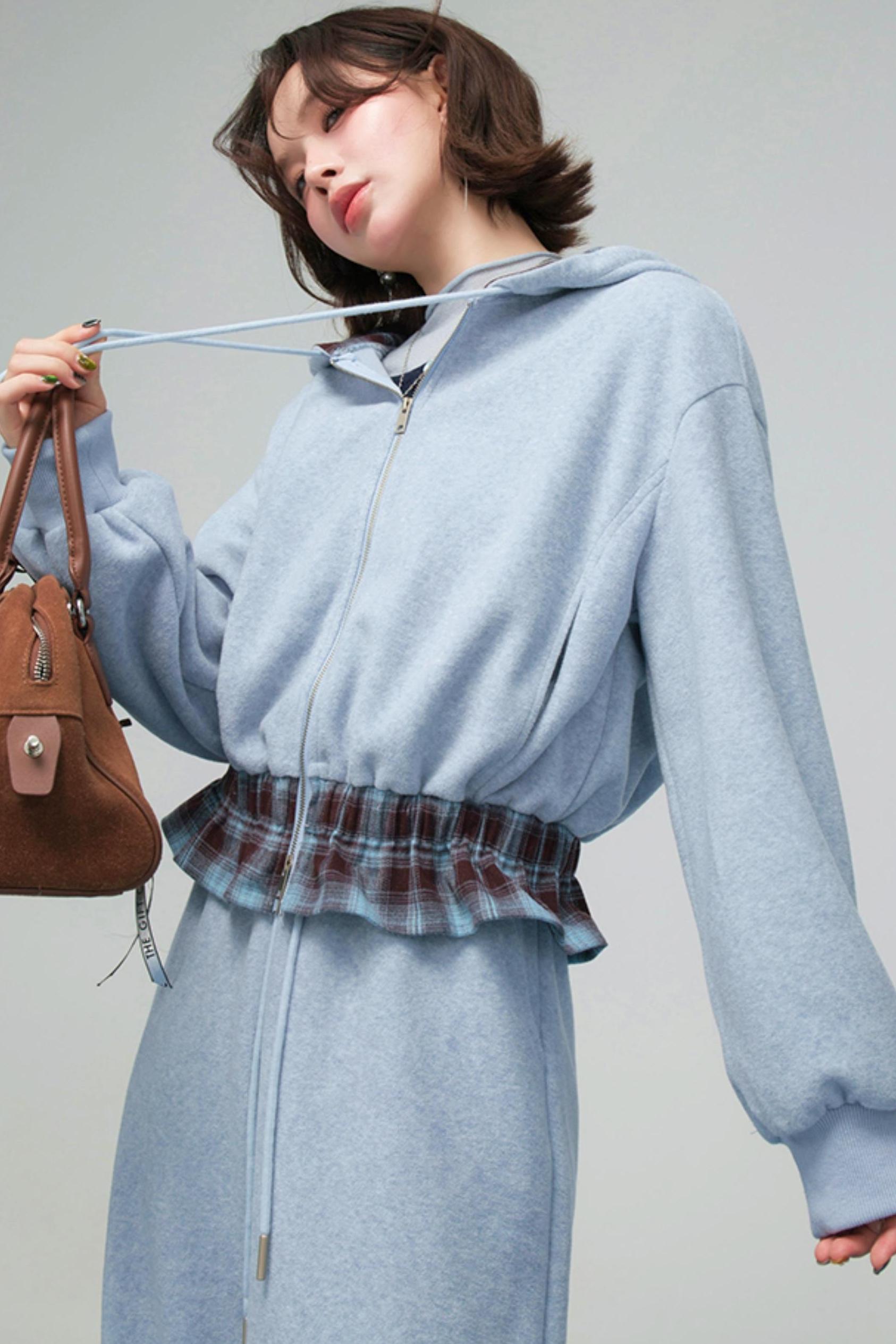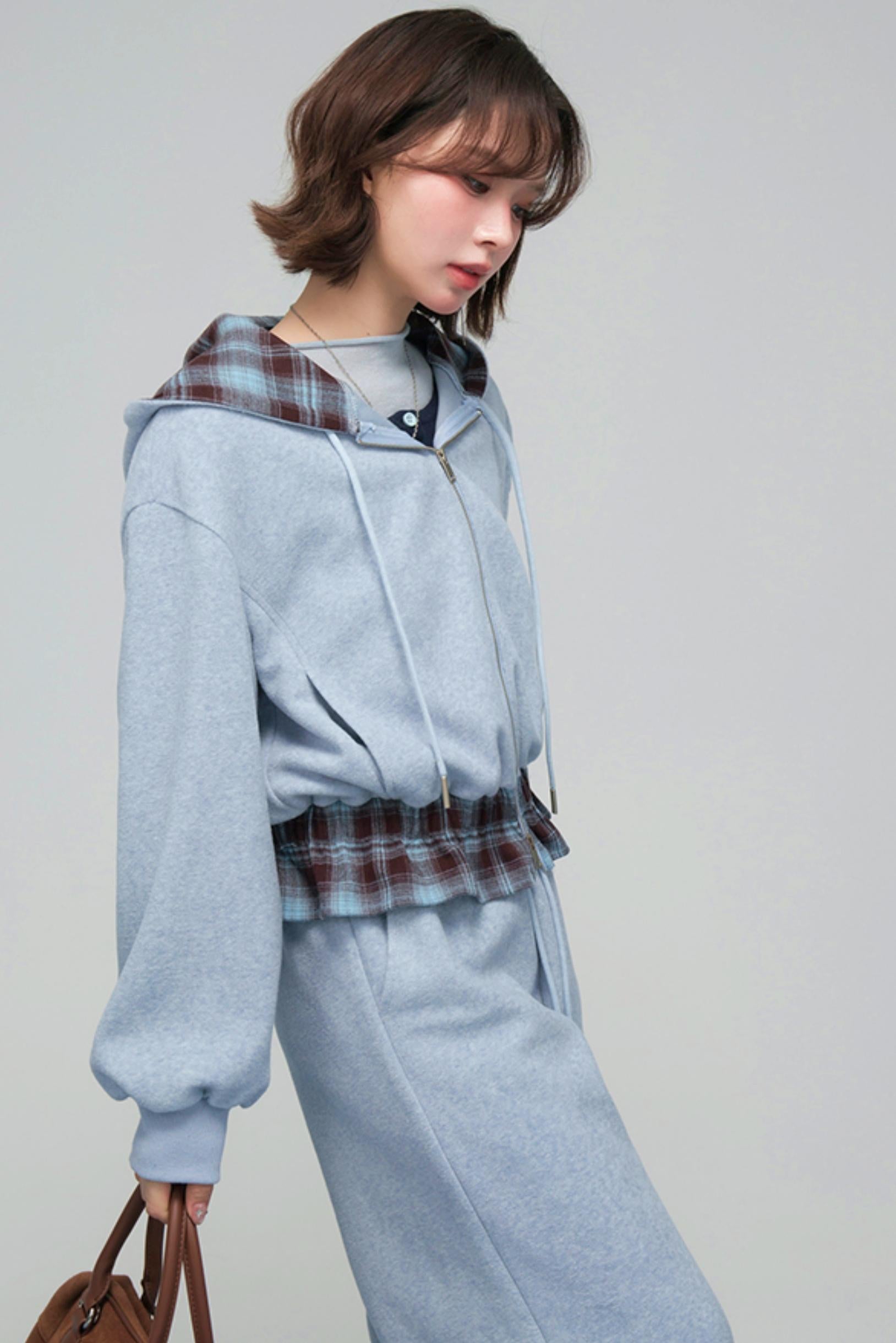 ❤パッチワークプラッドフーデッドジャケットセットアップ❤