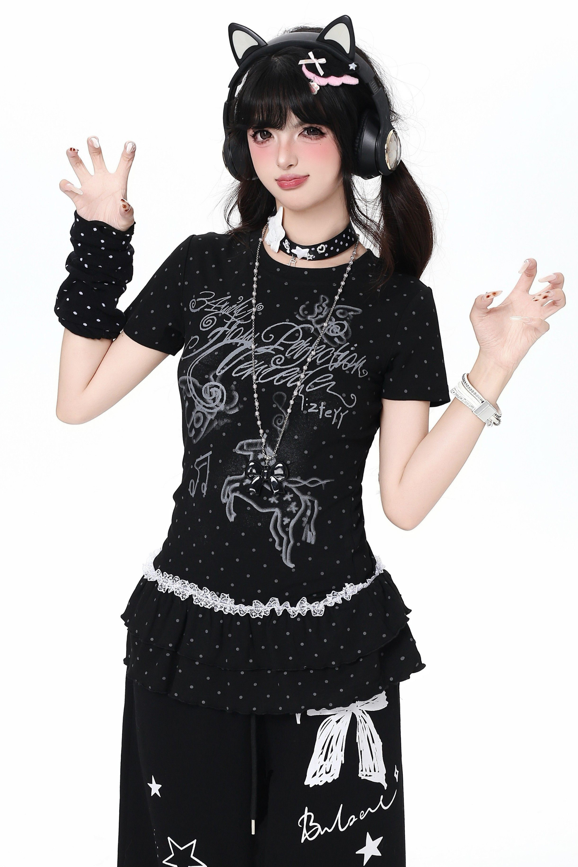 ❤ Polka Dot Ruffle Slim-Fit Top ❤