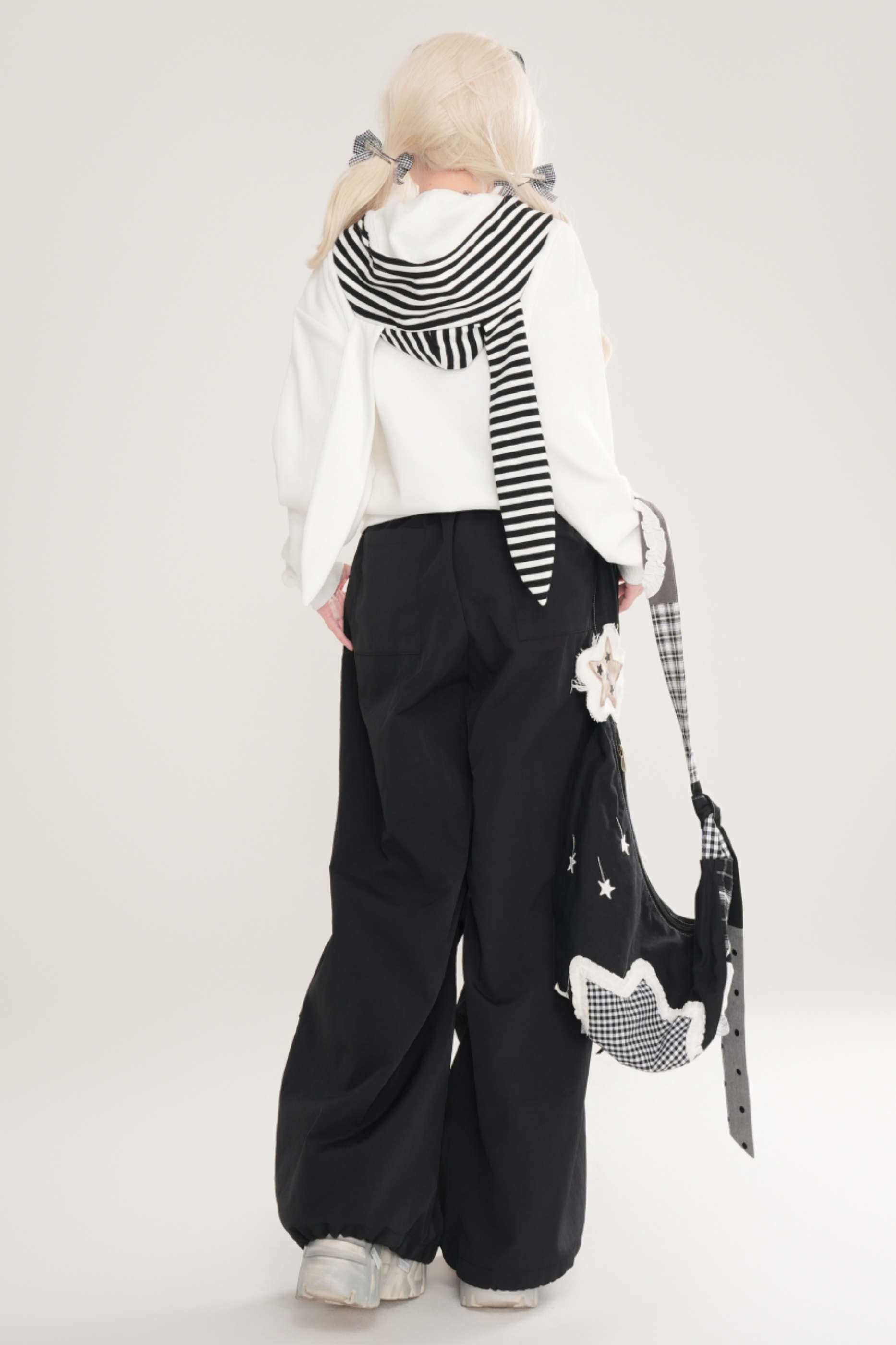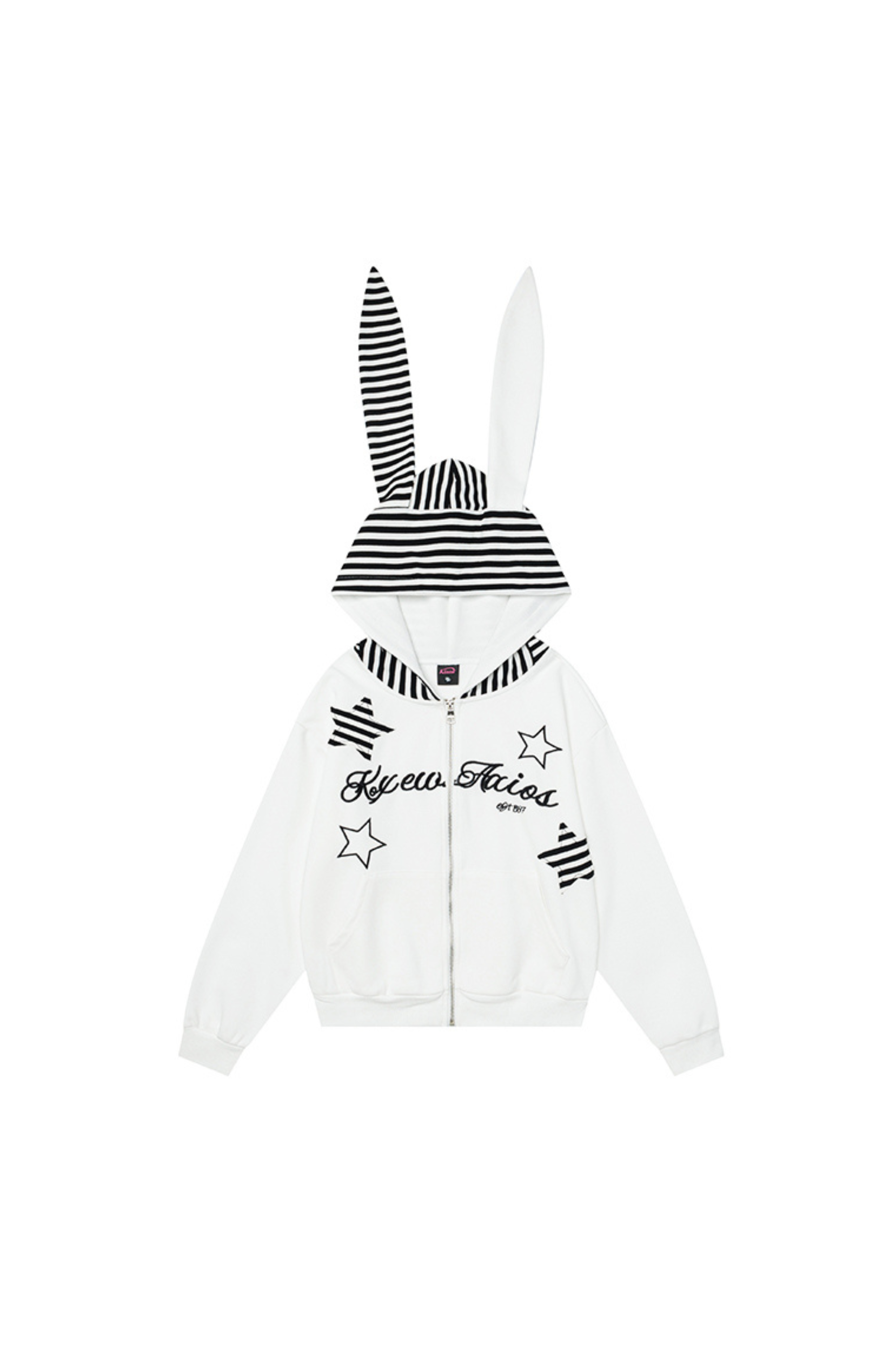 Y2K Rabbit Ear Striped Hooded Hoodie