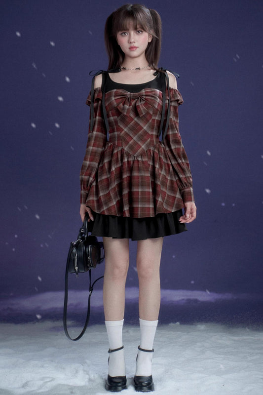 レッドアンドブラウンチェックドレス
