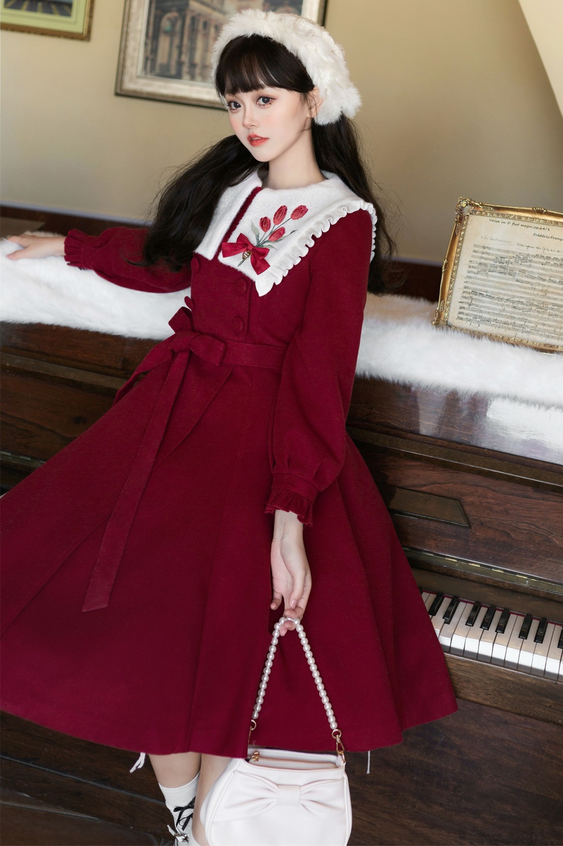 レッドチューリップロリータフレアコート