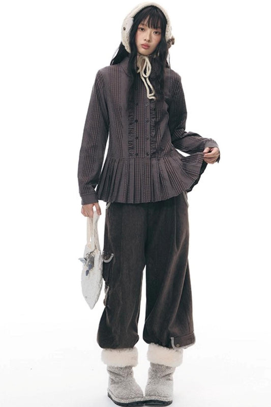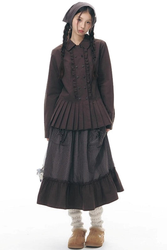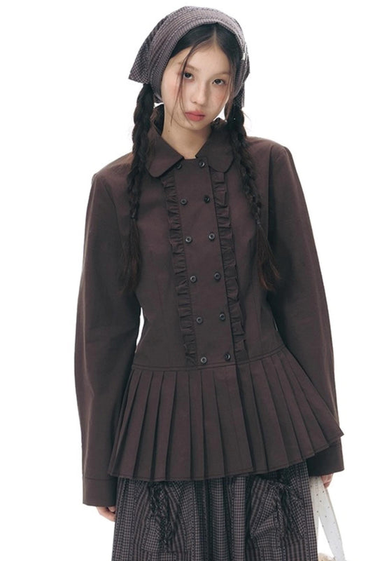 ラッフルダブルブレスタフリルトップス