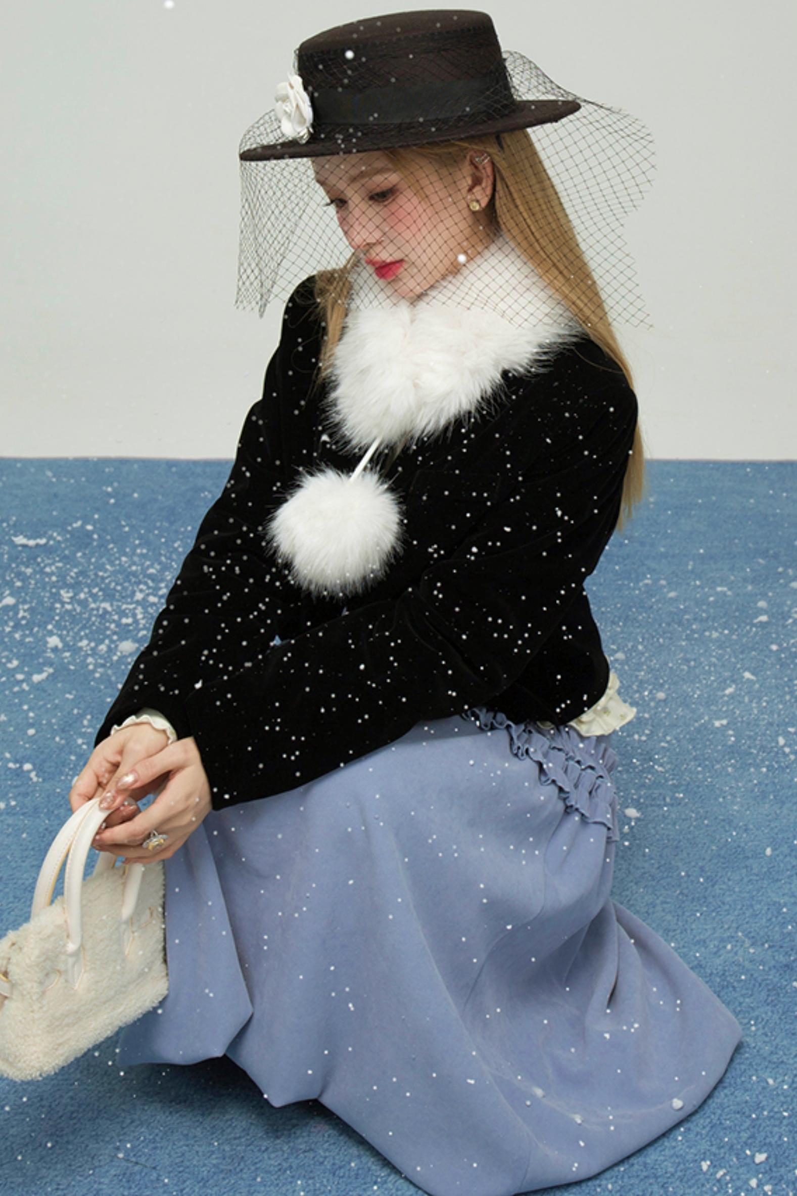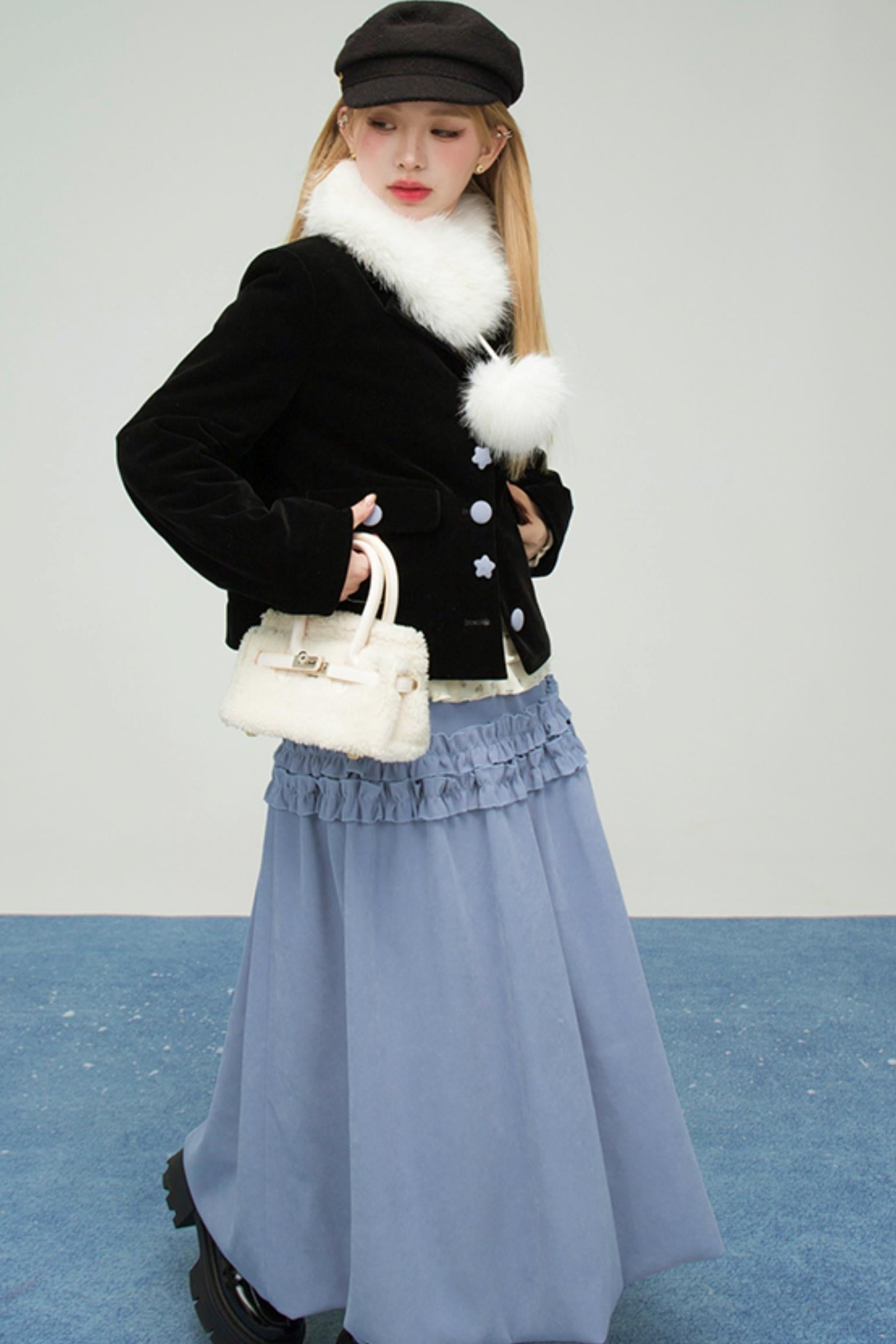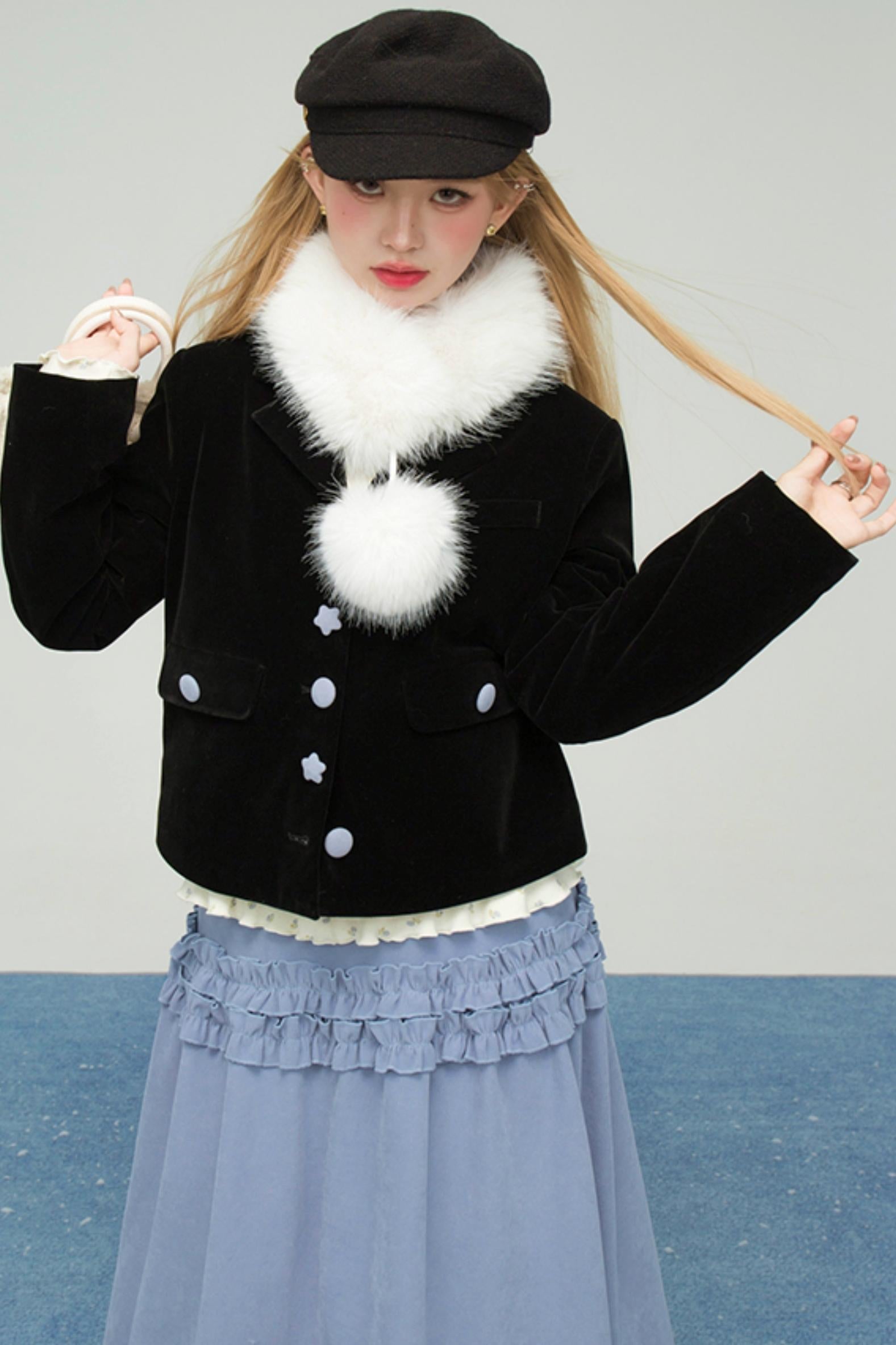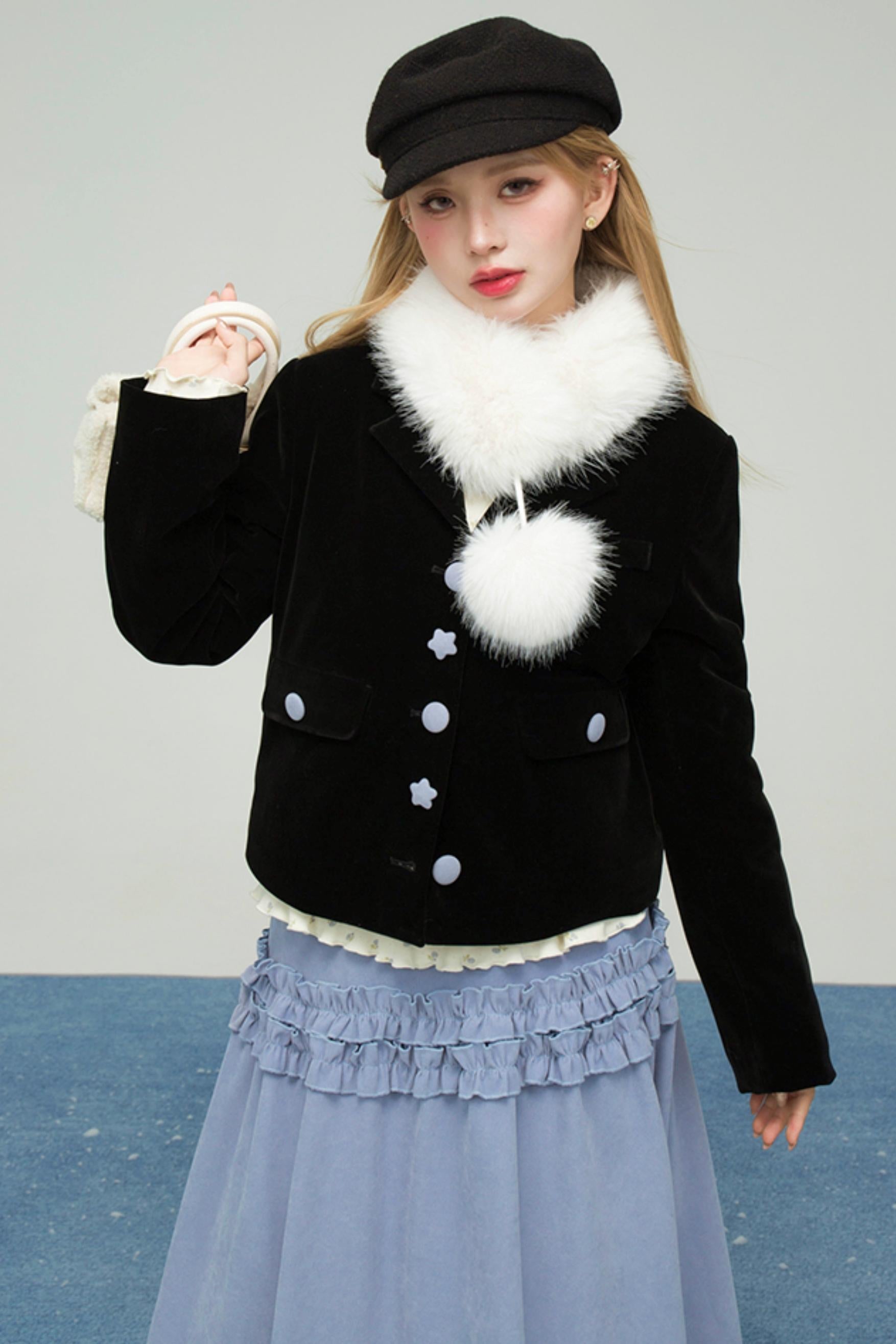 ❤ベルベットカラーブロックドファーコラージャケット❤